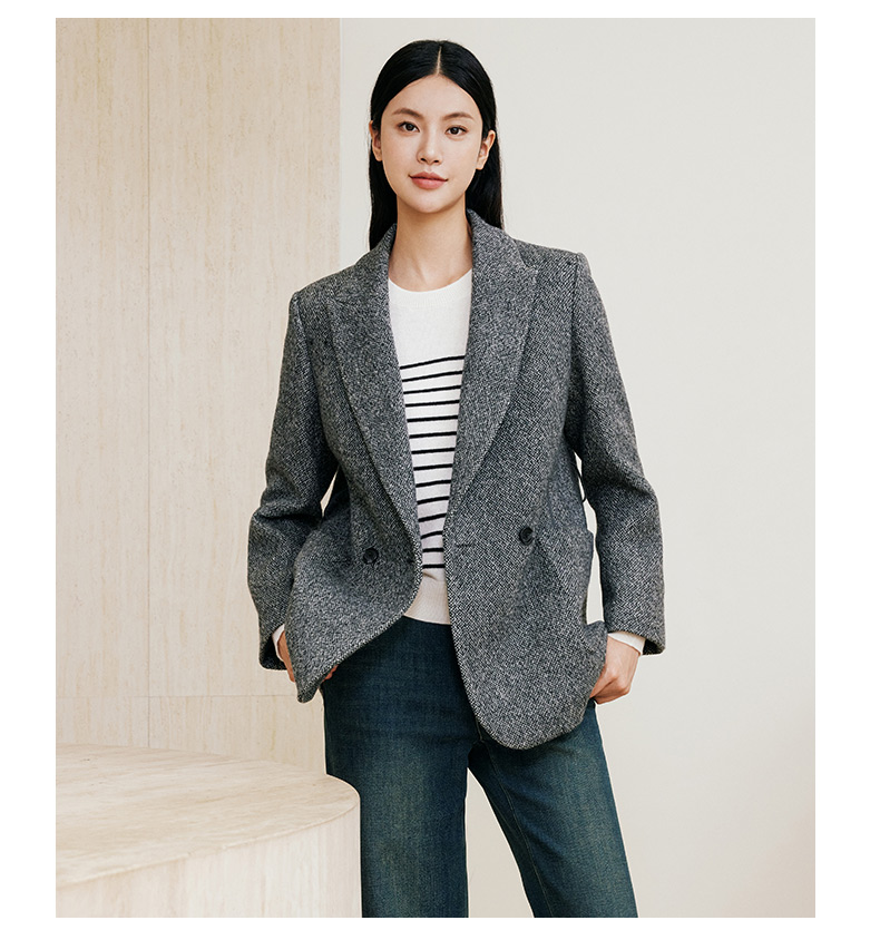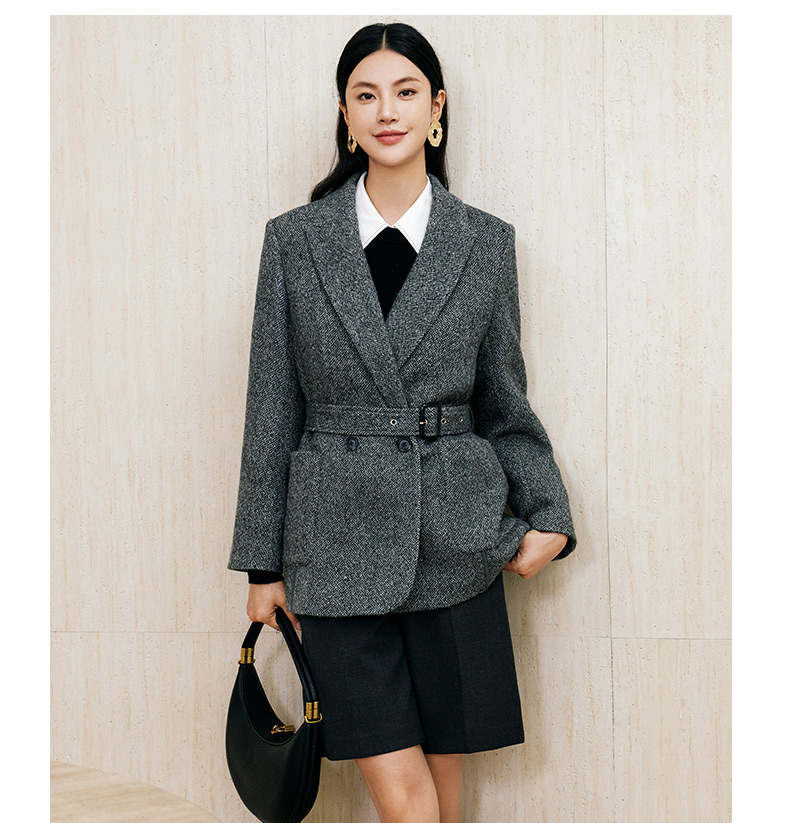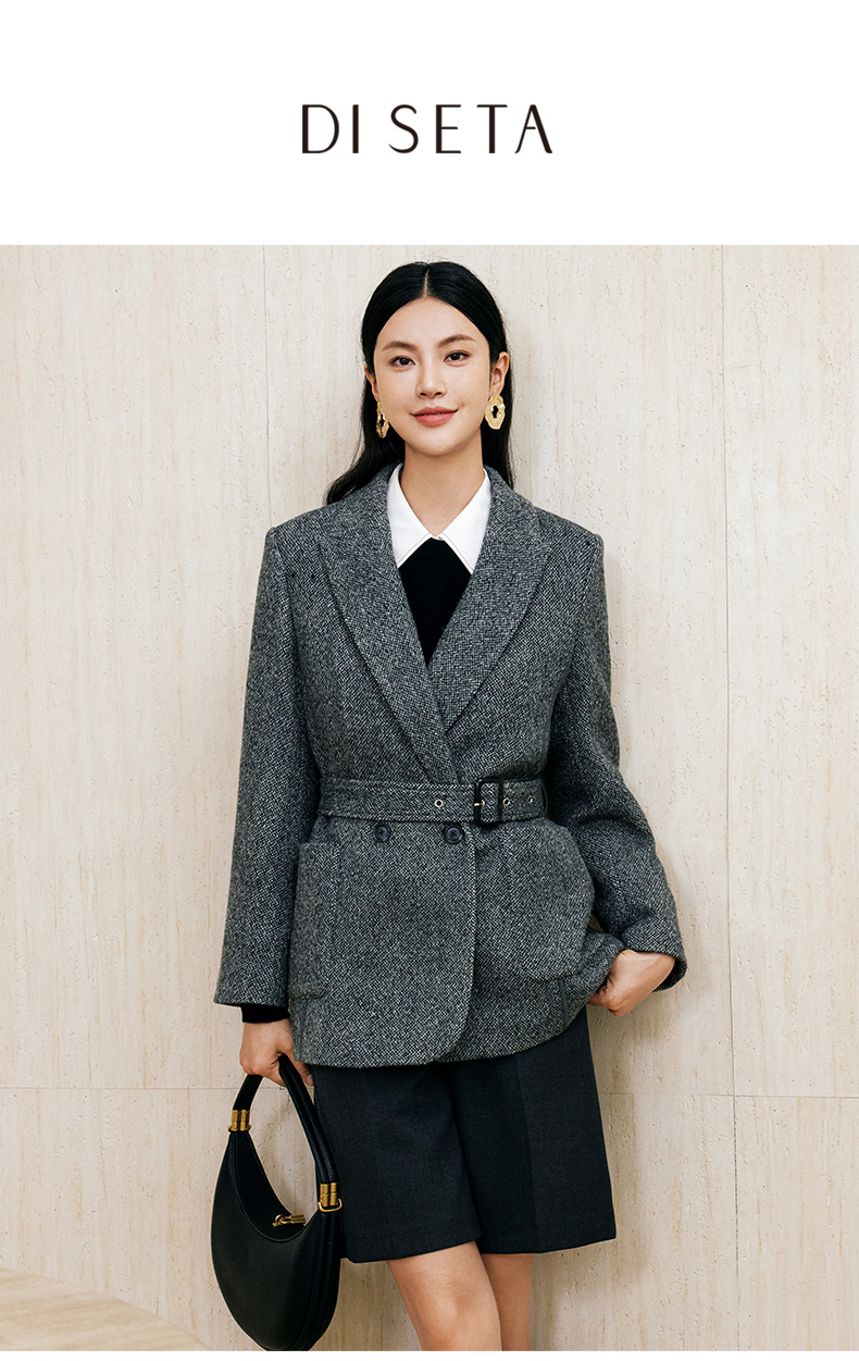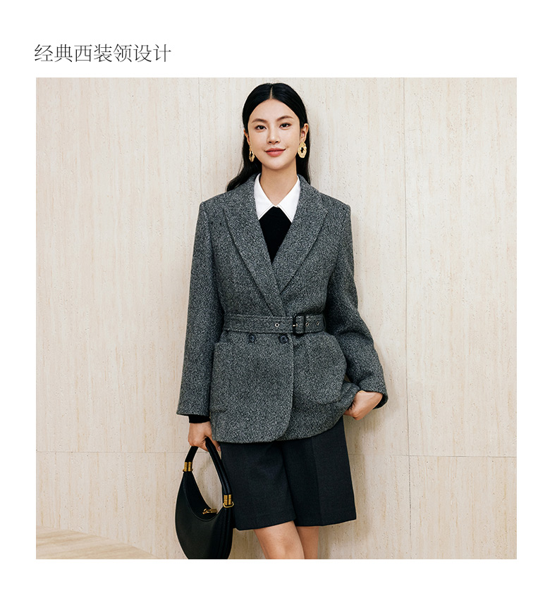 玳莎羊毛复古呢子西装高级感气质通勤职业外套24年冬季新款老钱风 ED37310