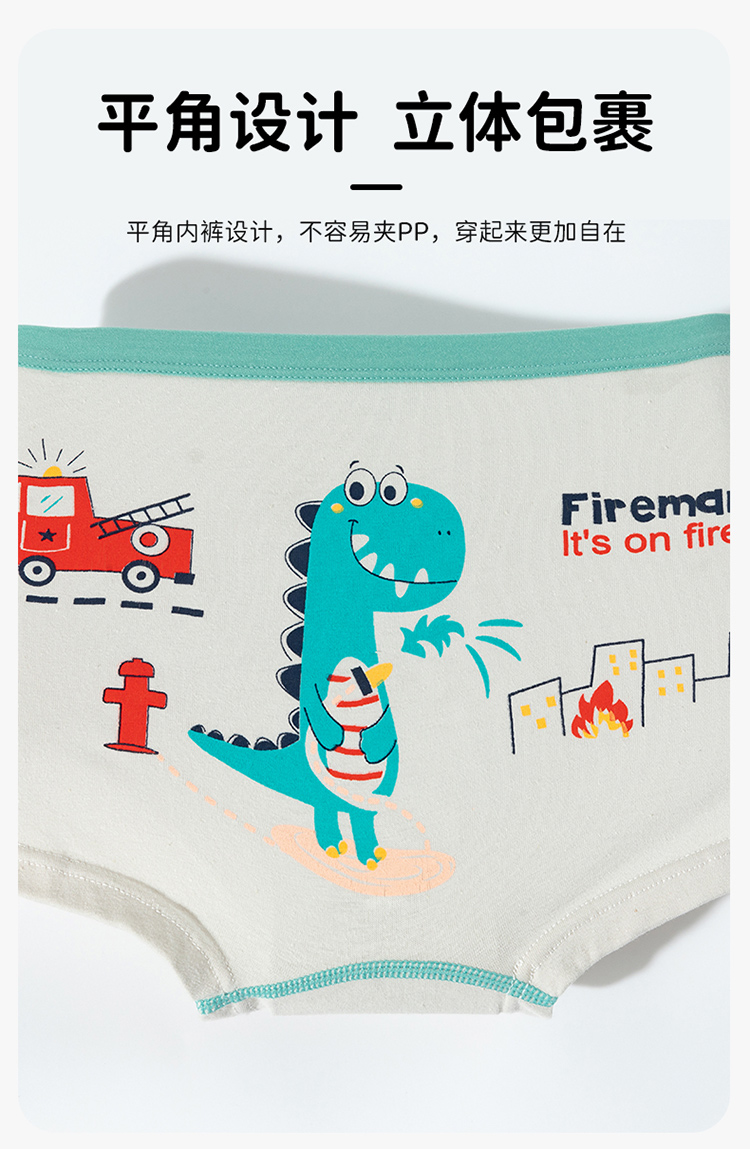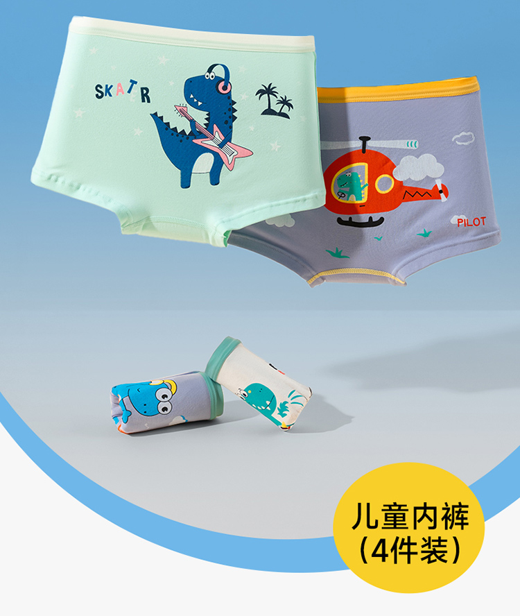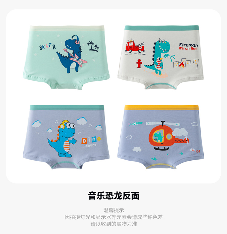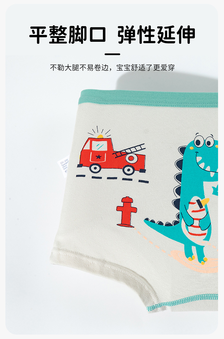 贝贝怡25春夏新款恐龙男宝平角内裤棉弹不夹PP(4件装)ZB5EP016