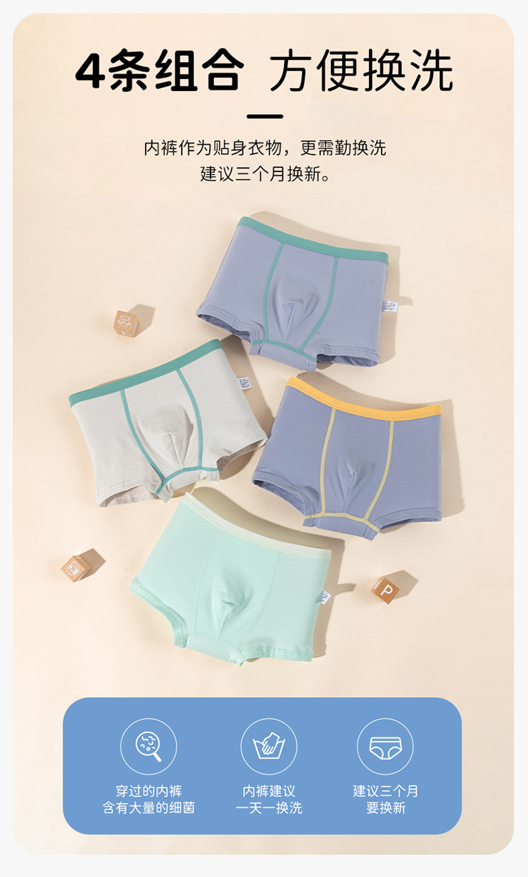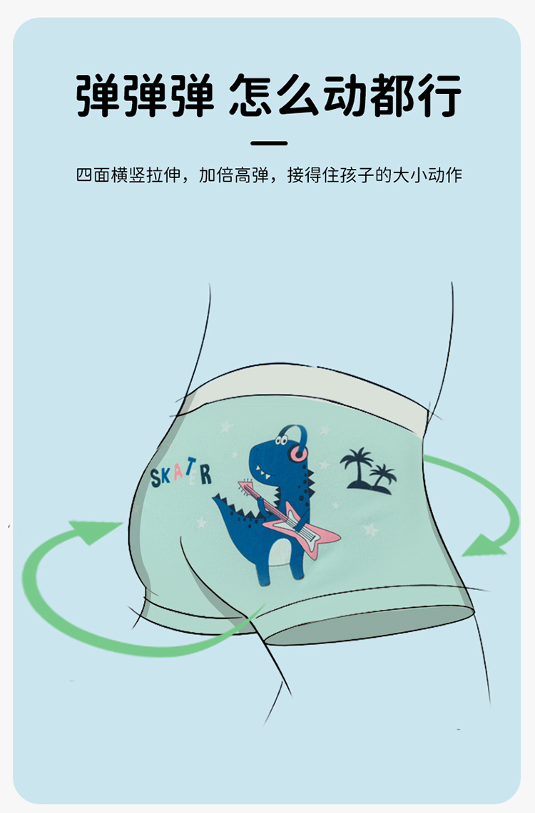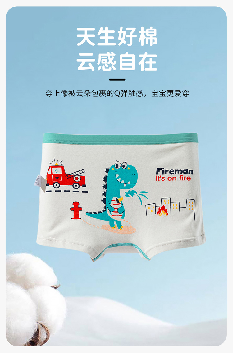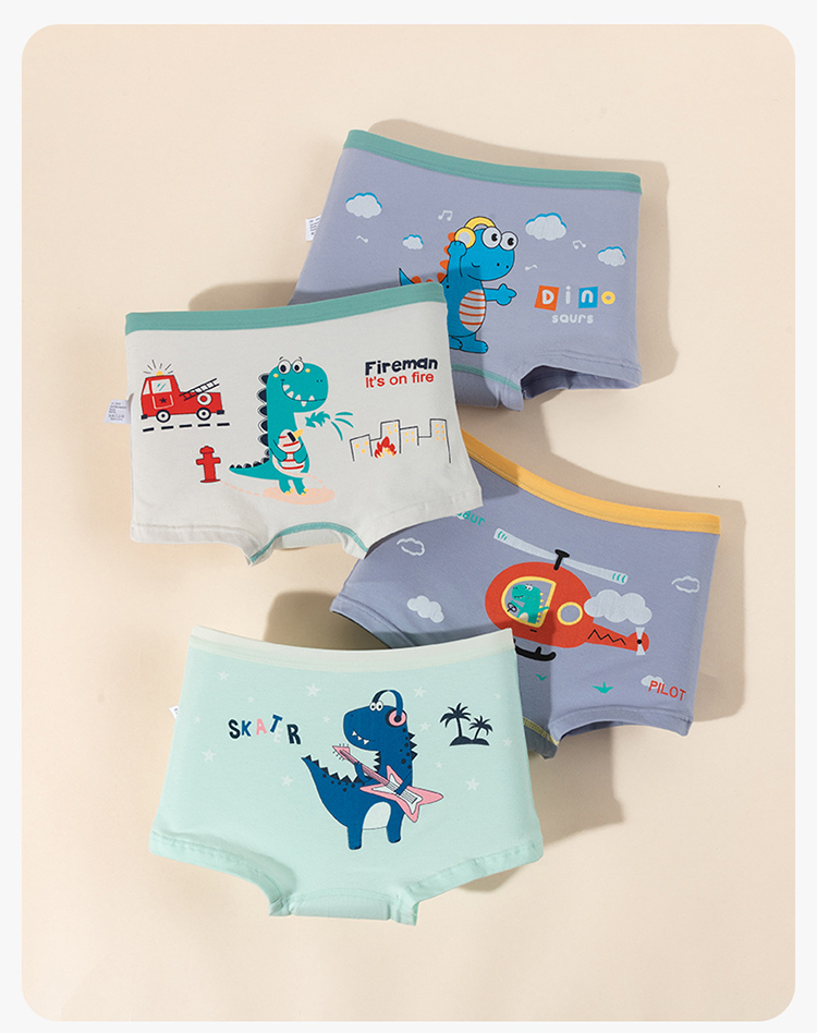 贝贝怡25春夏新款恐龙男宝平角内裤棉弹不夹PP(4件装)ZB5EP016