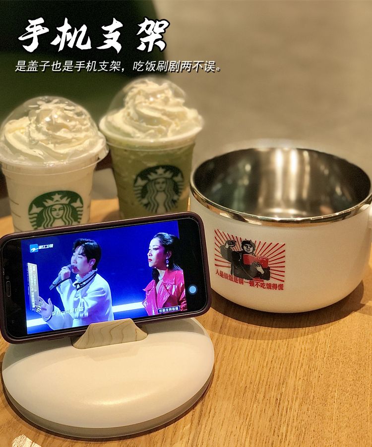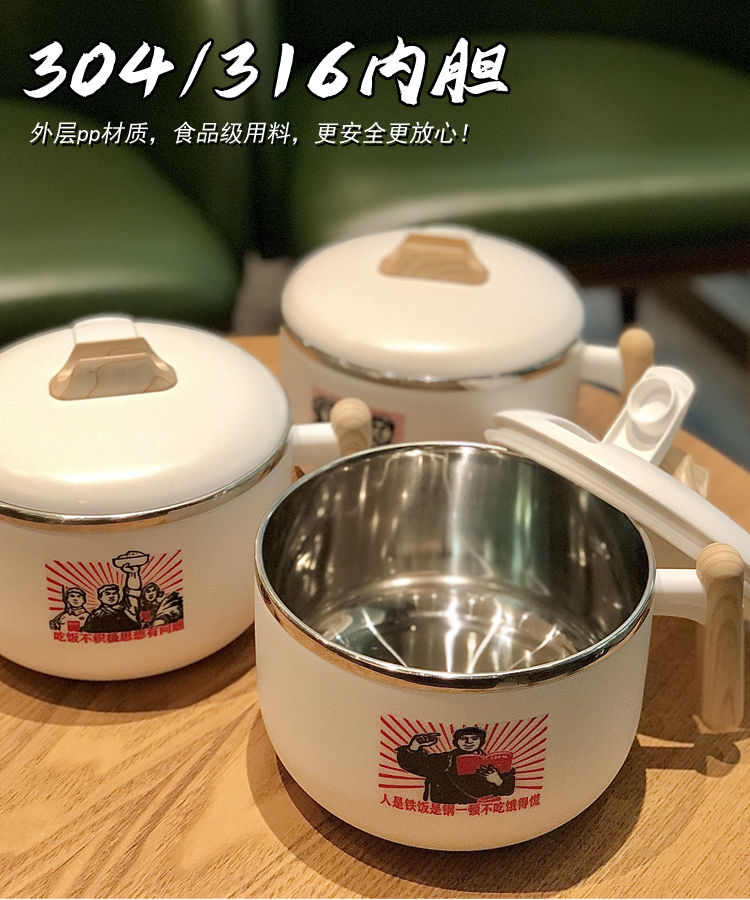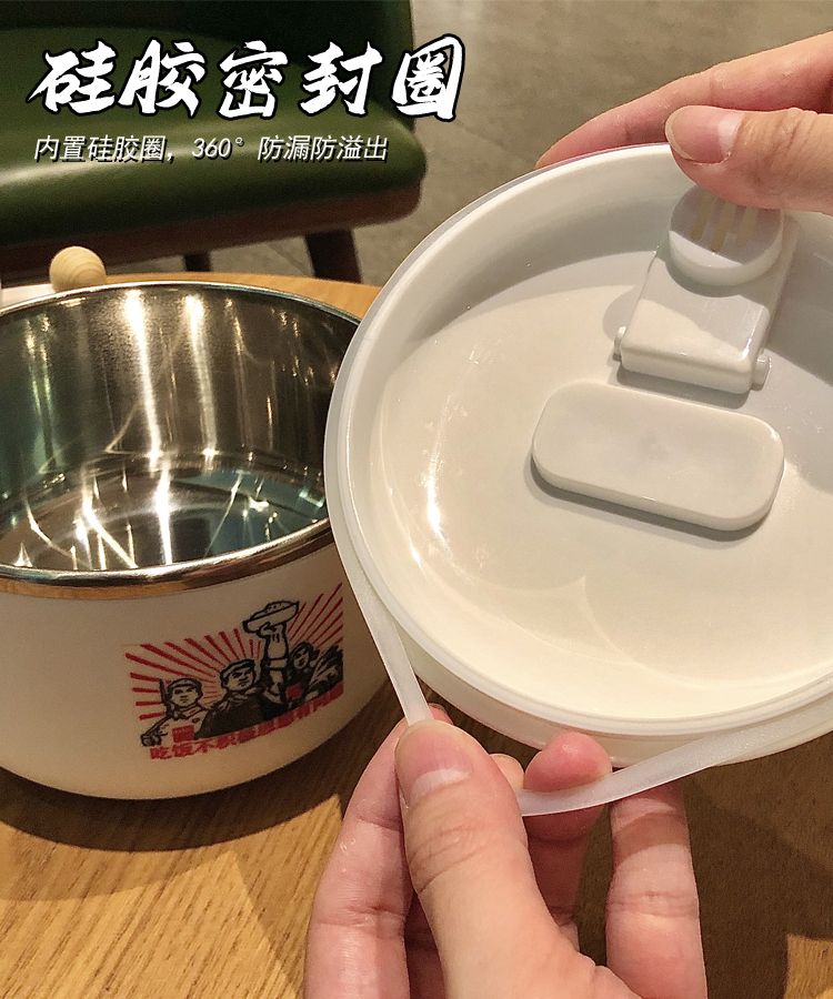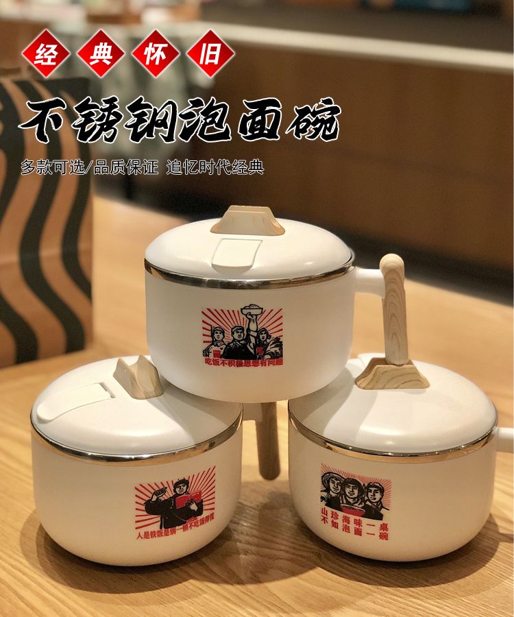 老式怀旧304不锈钢泡面碗带盖大容量可沥水方便面碗学生饭碗筷