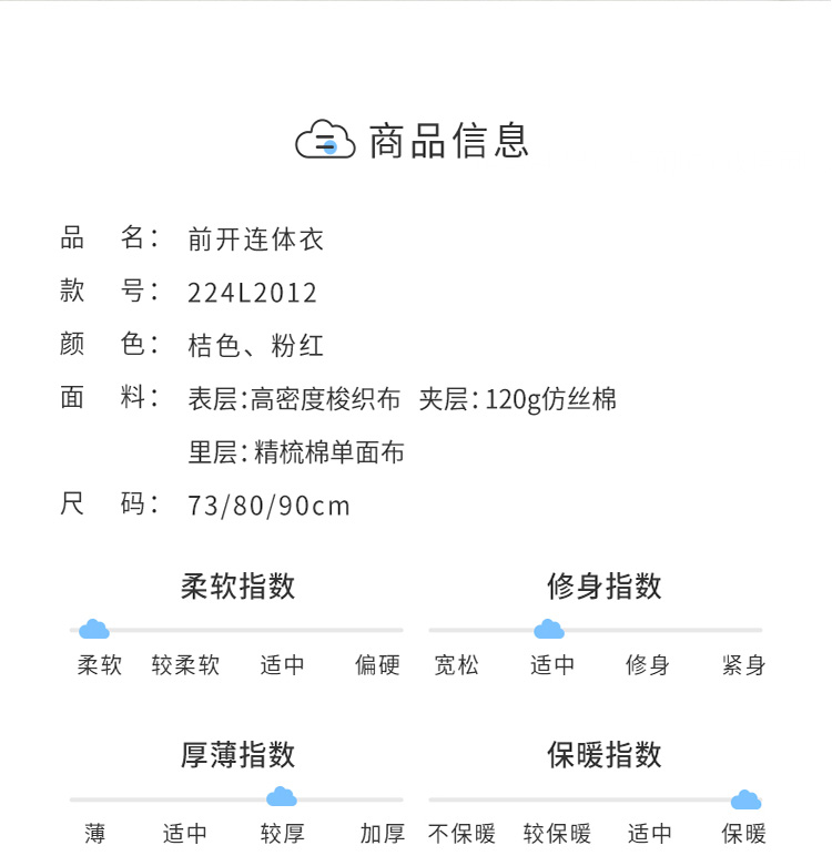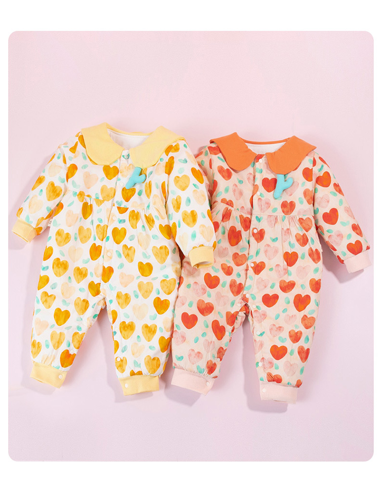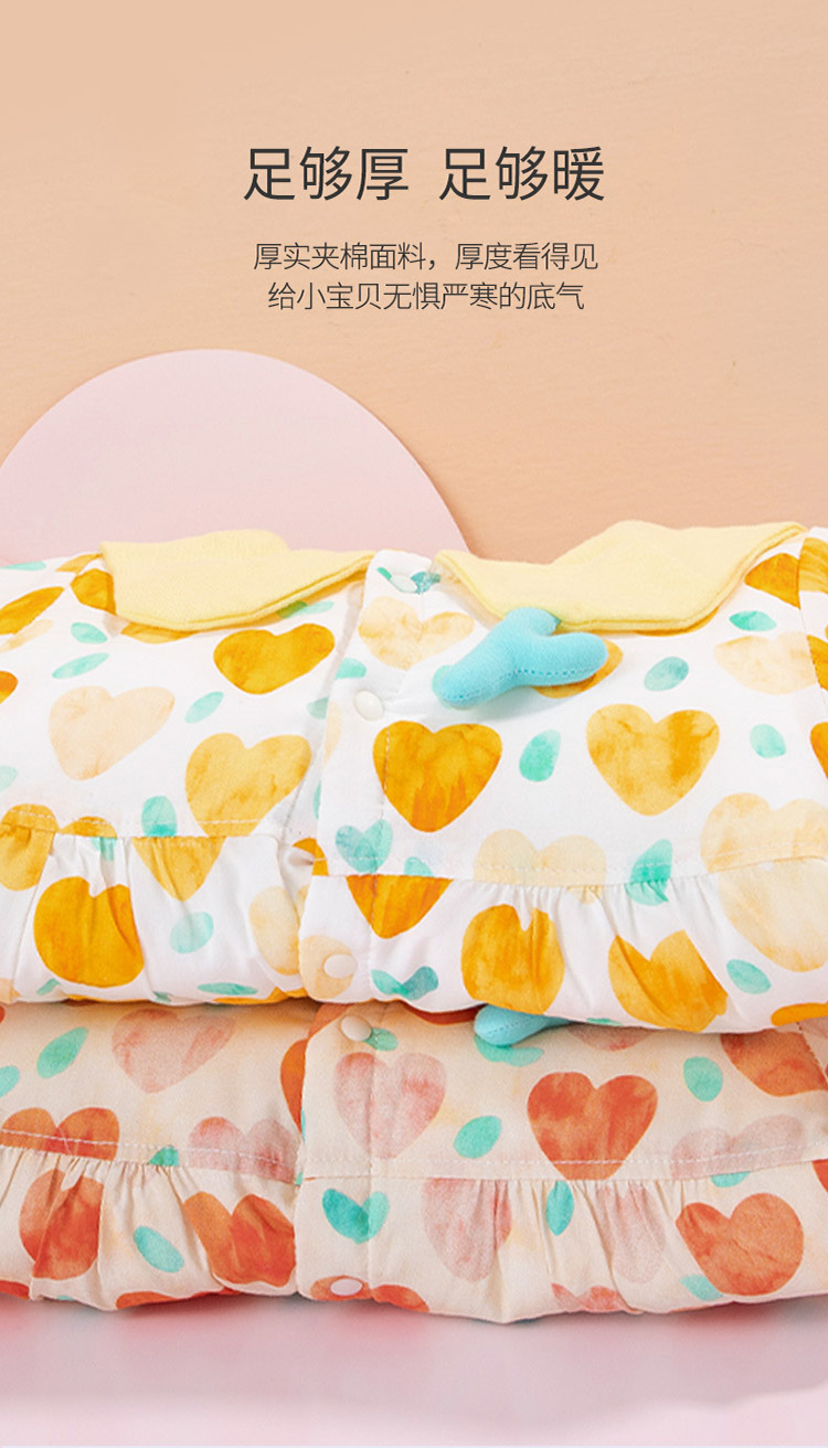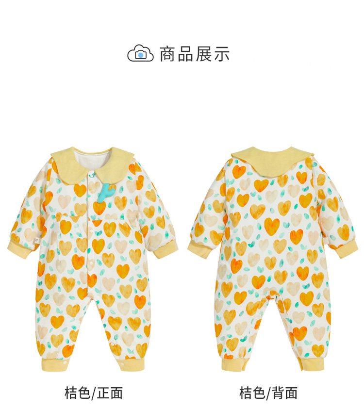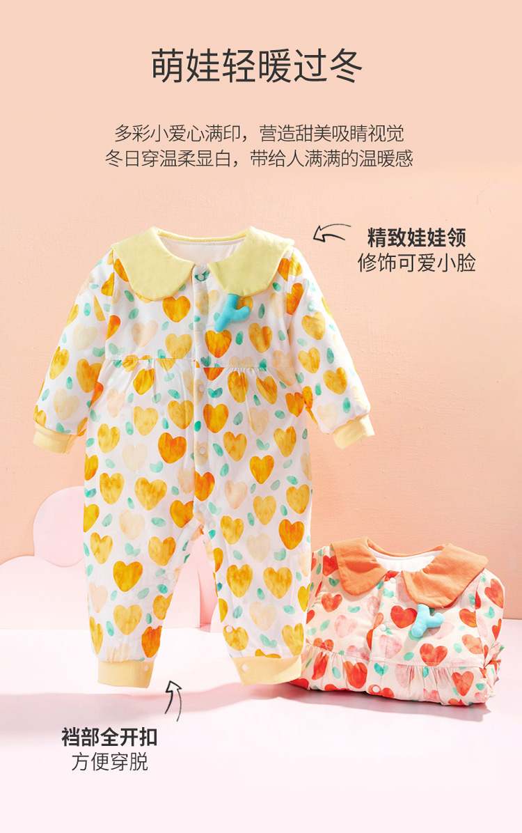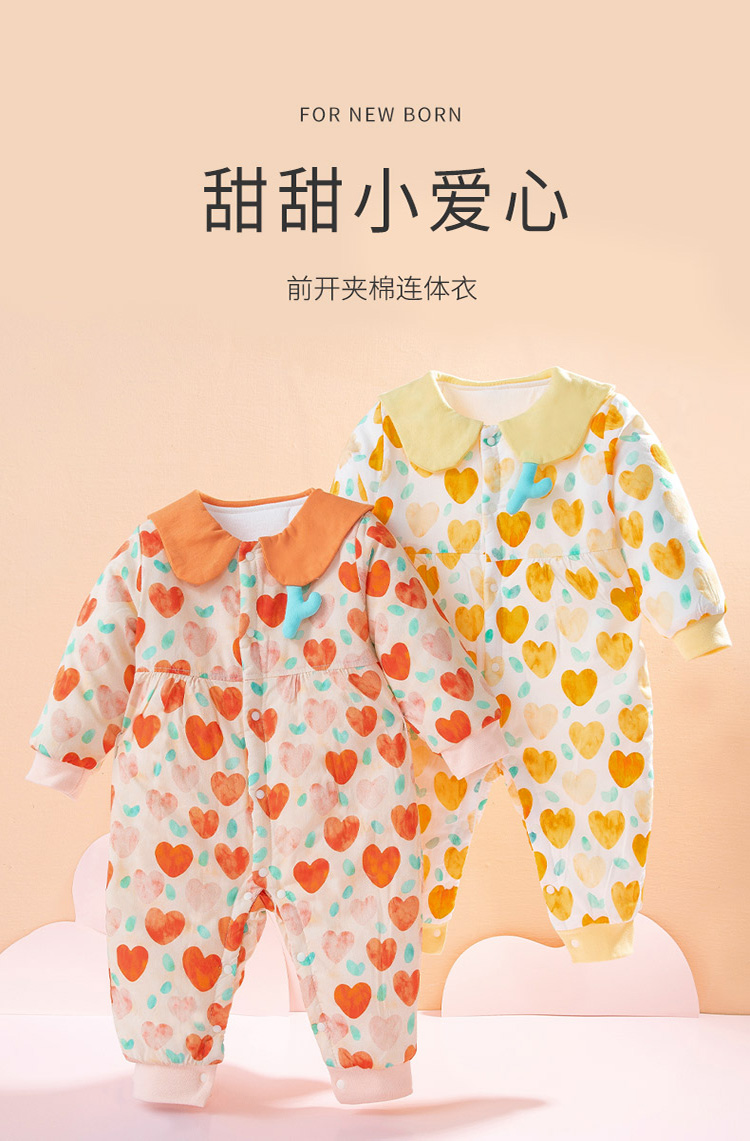 贝贝怡童装秋冬夹棉保暖女宝可爱前开连体衣新生儿外出服224L2012