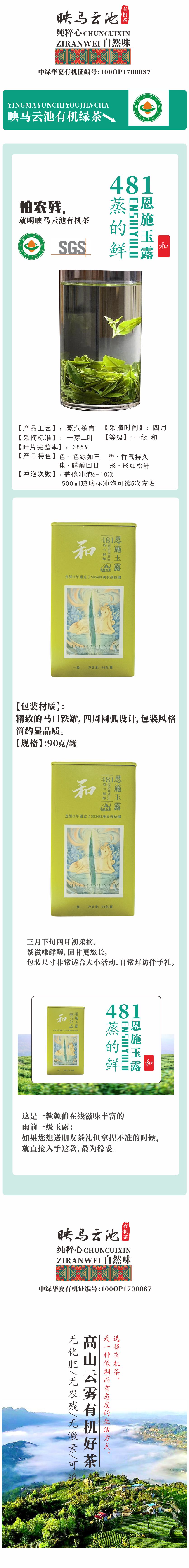 有机绿茶 映马云池 481恩施玉露和 90g【基地直发】