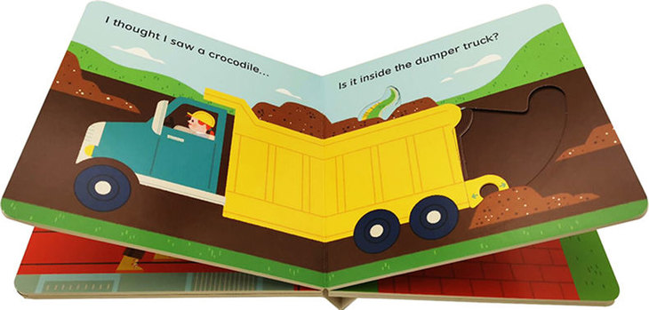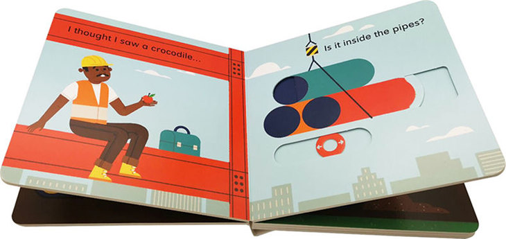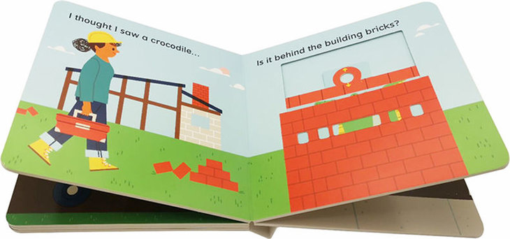 This silly but stylish slider book is sure to give little ones a giggle. They'll love joining in with a game of hide-and-seek as they move the sliders to reveal the crocodile hiding in every scene. Is it driving the digger? Or hiding behind the wheelbarrow? Just push the slider to find out!