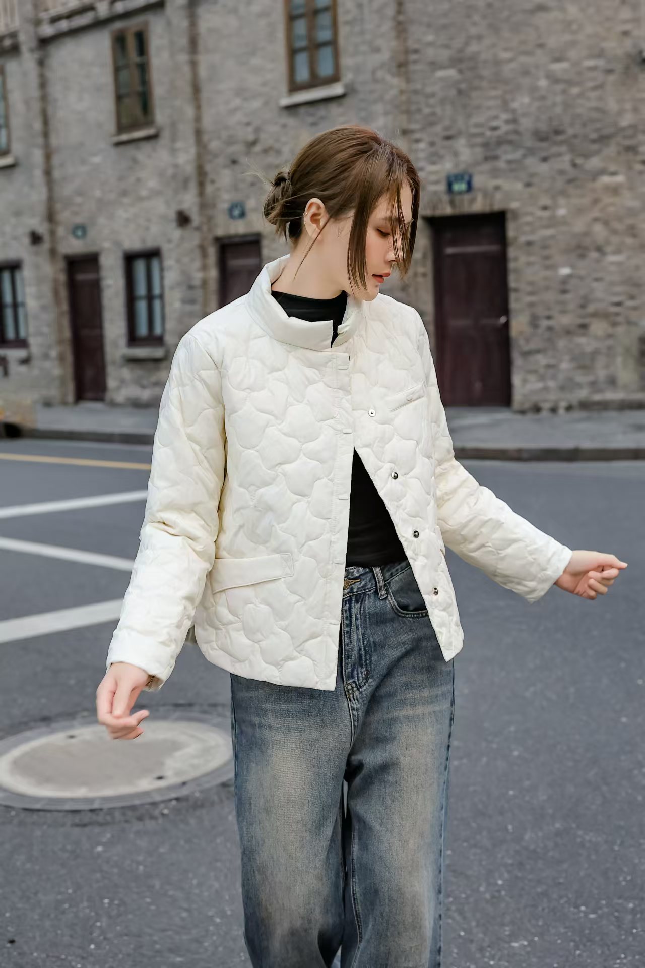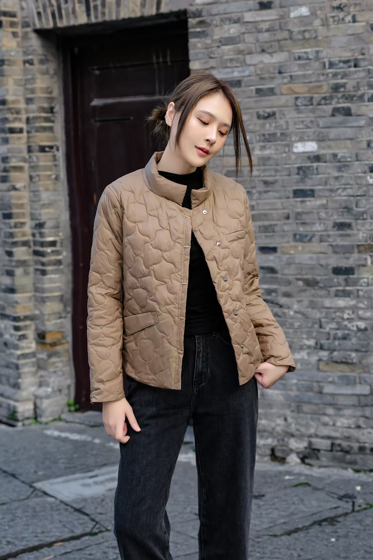 伯妮斯茵 | 温柔知性 短款立领轻薄羽绒服 多口袋设计 显瘦不臃肿 气质通勤款 SZ6R28 薄款鸭绒羽绒服