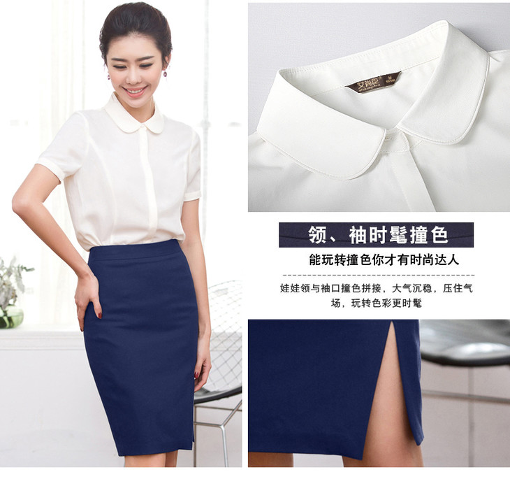 艾尚臣夏季OL时尚工作服面试正装短袖衬衫套装职业装女装套裙