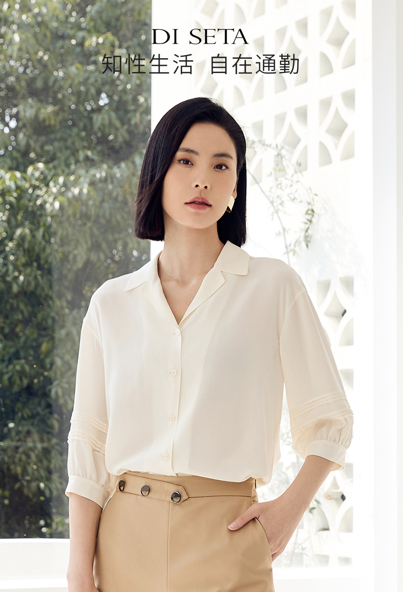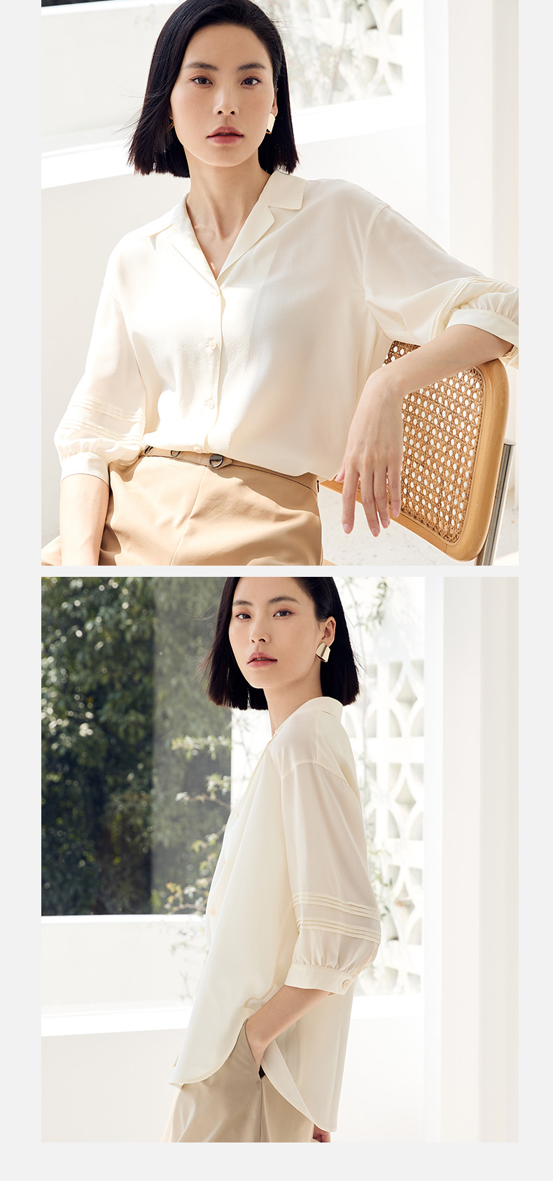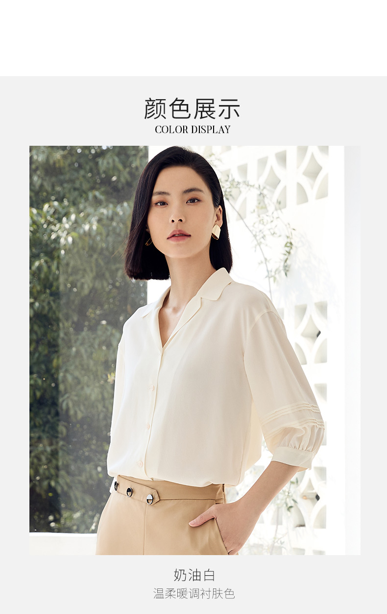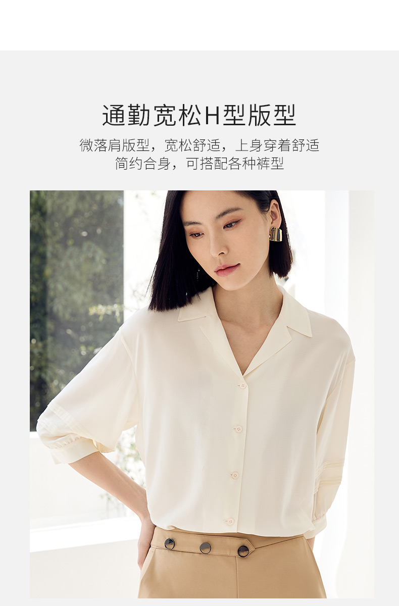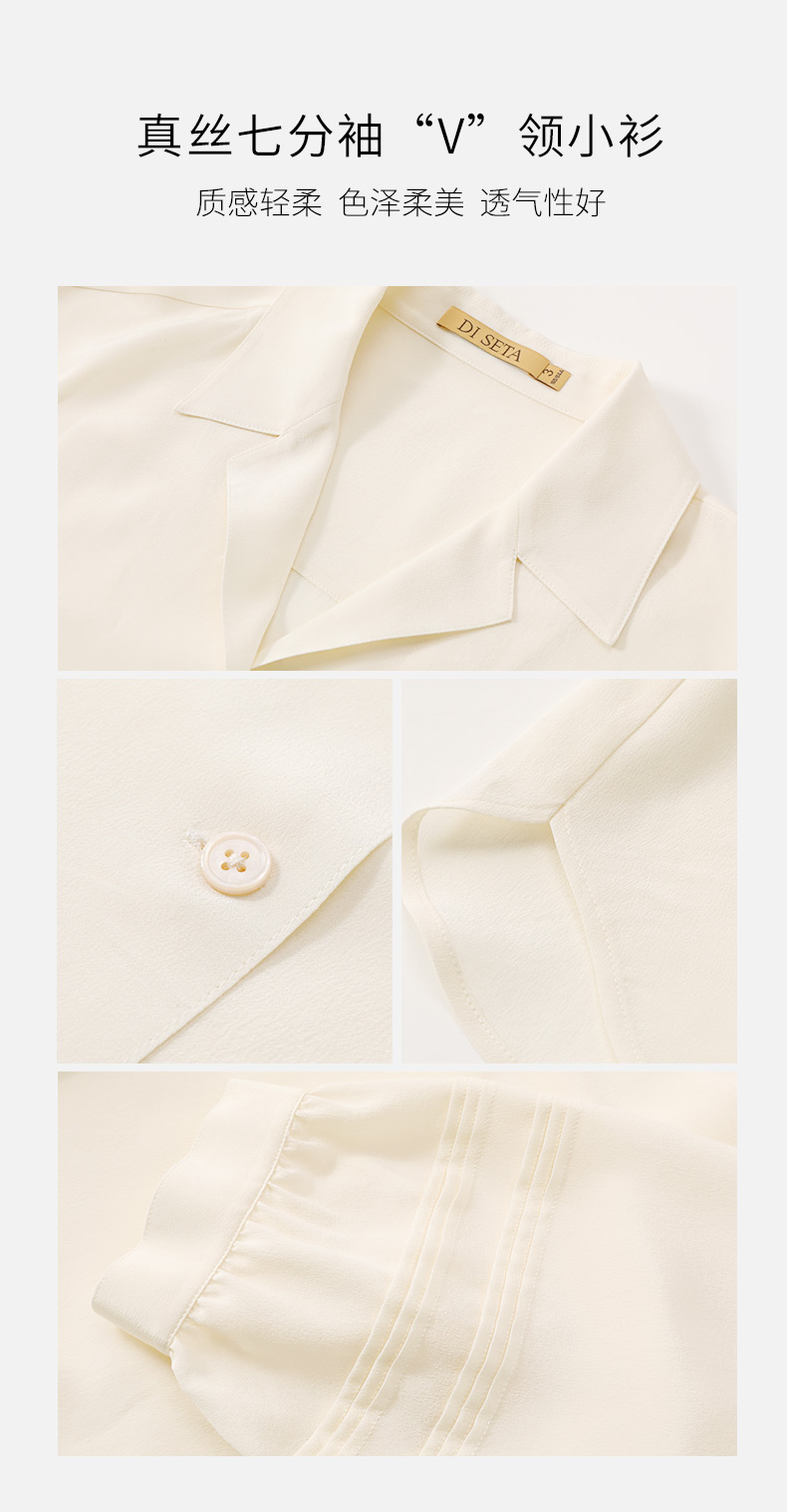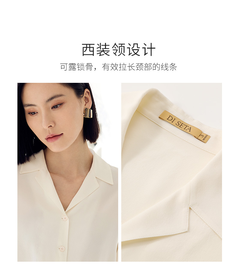 玳莎18mm水洗双绉西装领真丝衬衫女2023夏季新款简约宽松桑蚕丝七分落肩袖上衣 DB31205