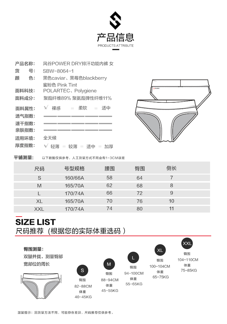 SANFOPLUS速干POLARTEC排汗透气功能内裤单条装(不支持退换)SBW-8064-1