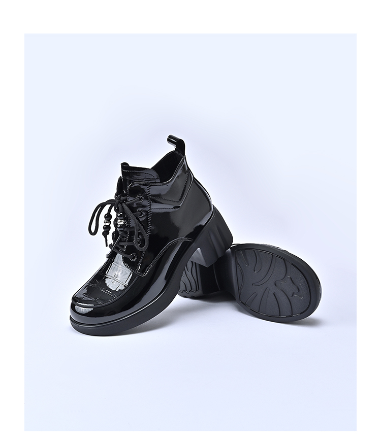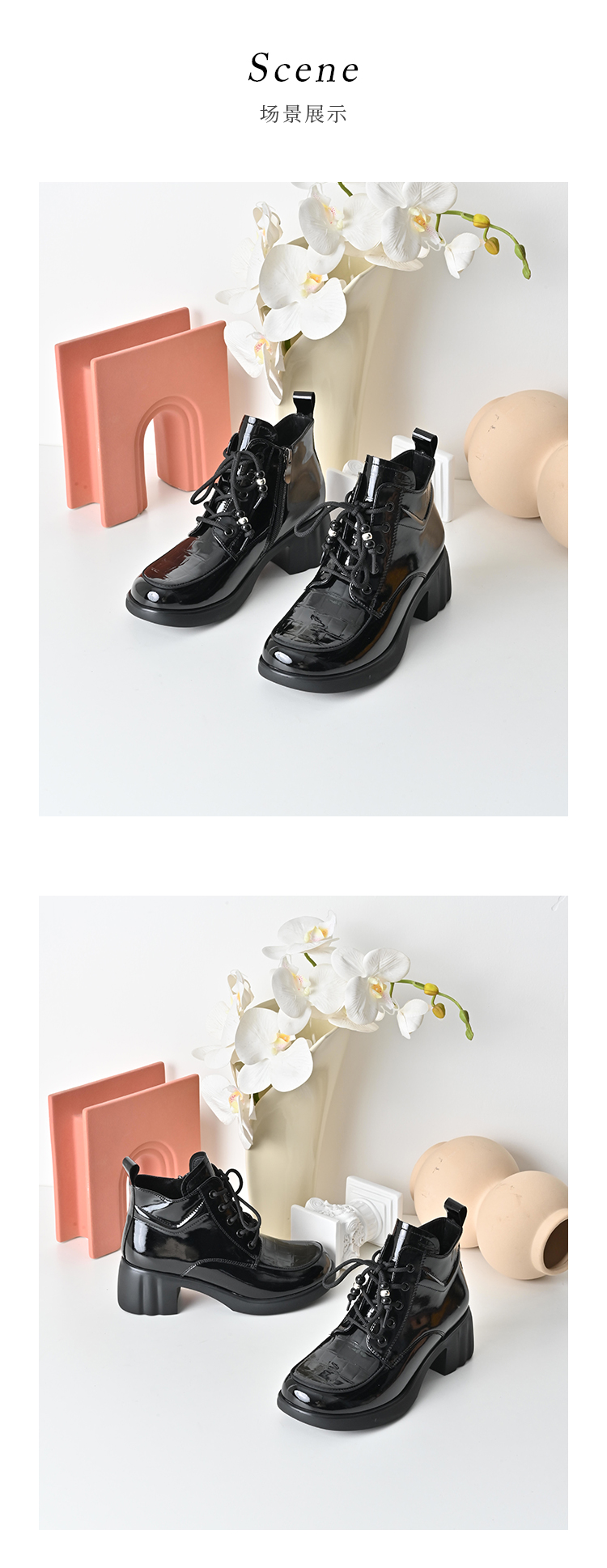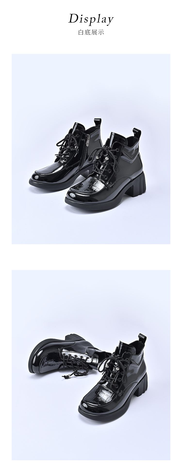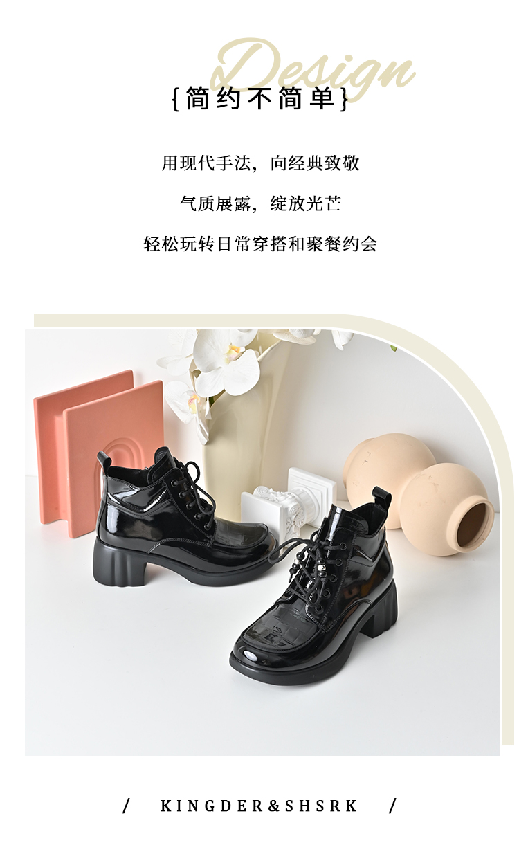 经典鲨2025冬专柜新品羊皮革圆头黑色加绒轻便中粗跟短靴女KW55-558051