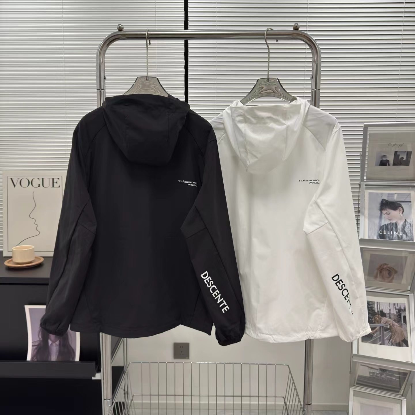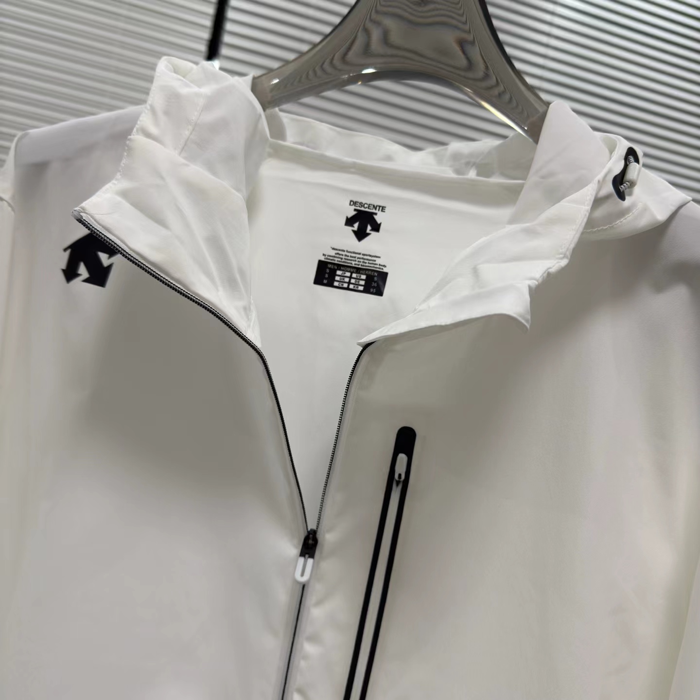 男女梭织透气薄款运动连帽外套 功能性梭织运动上衣采用优质拉伸性面料 搭配动态裁剪版型 贴合肩部、手臂等关节的动态轮廓 提升运动中的伸展自由度 弹力针织面料 舒适透气 腋下透气孔一体式立体拼接裁剪 赋予运动伸展性 兼具储物功能与设计整体性 立体裁剪连帽 适用更多穿着场景 可拉链拉起 搭配连帽设计 防风防晒 试用运动与日常穿着