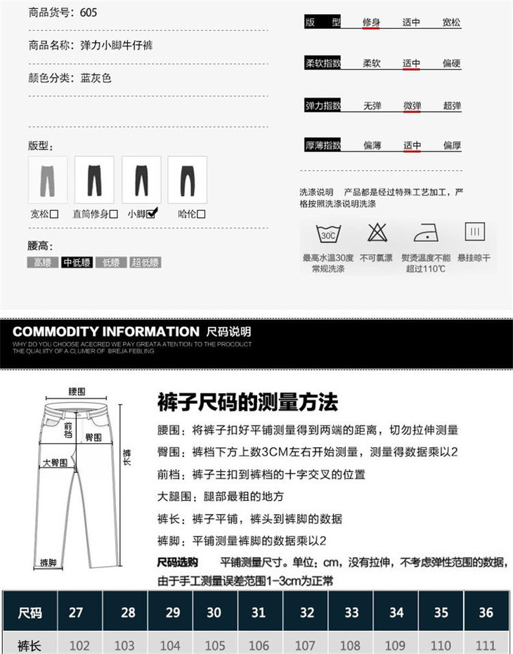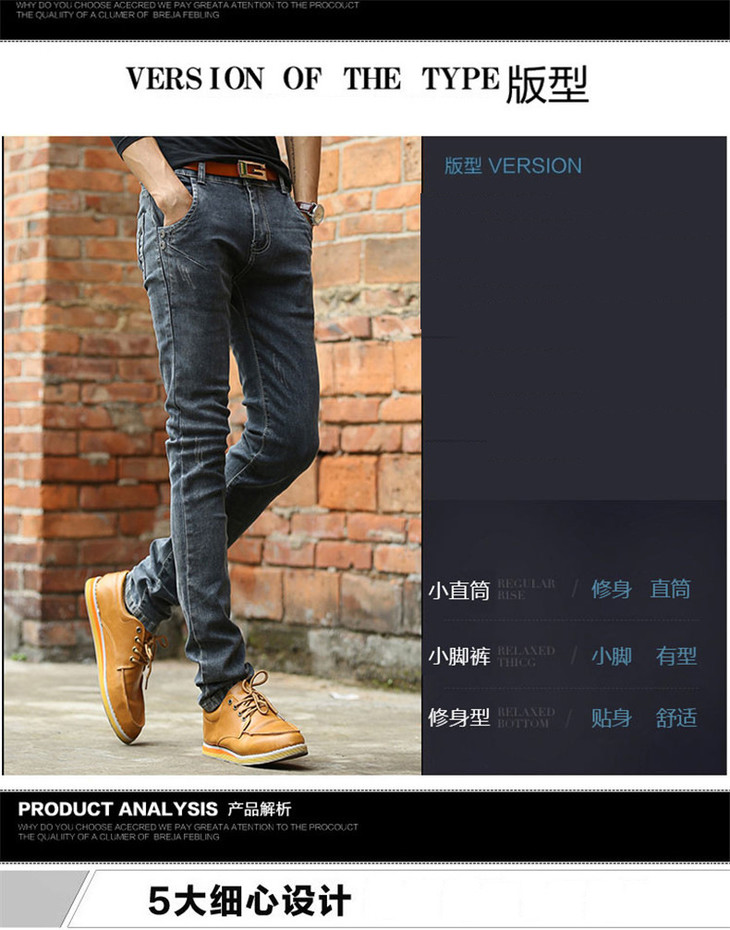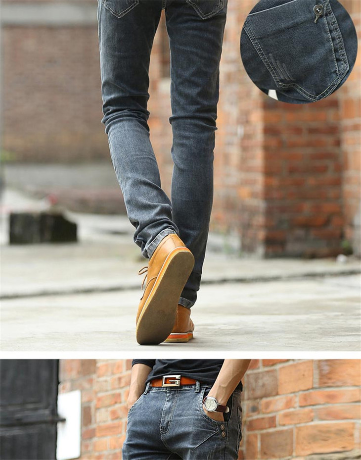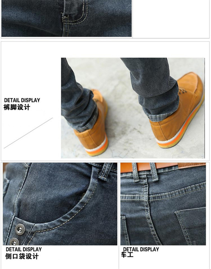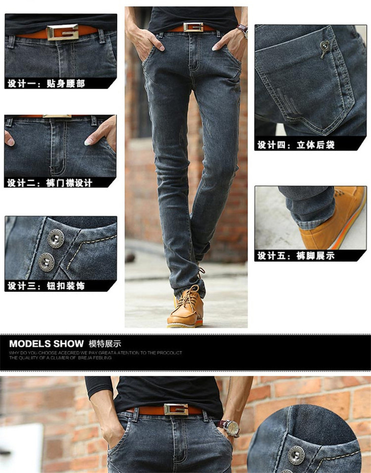 【牛仔裤】男士春季新款青年韩版修身中腰直筒男式长裤潮男弹力小脚裤