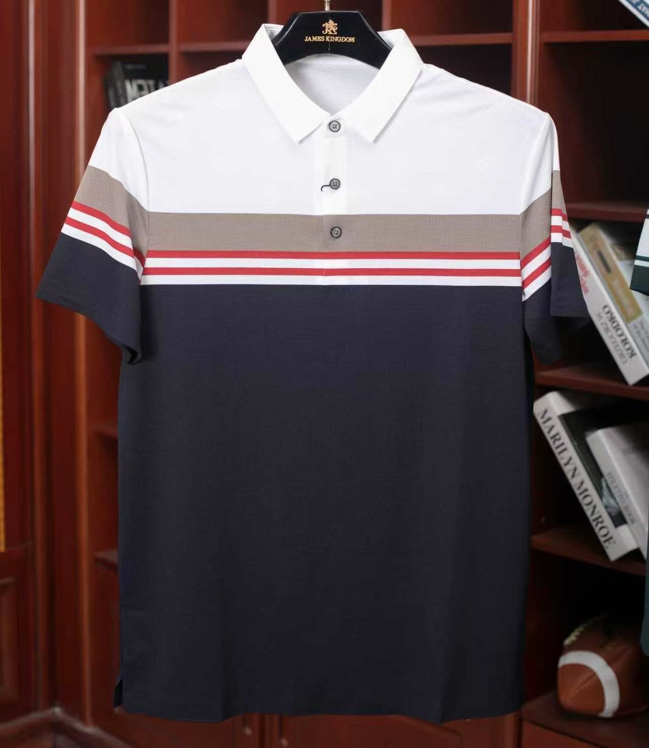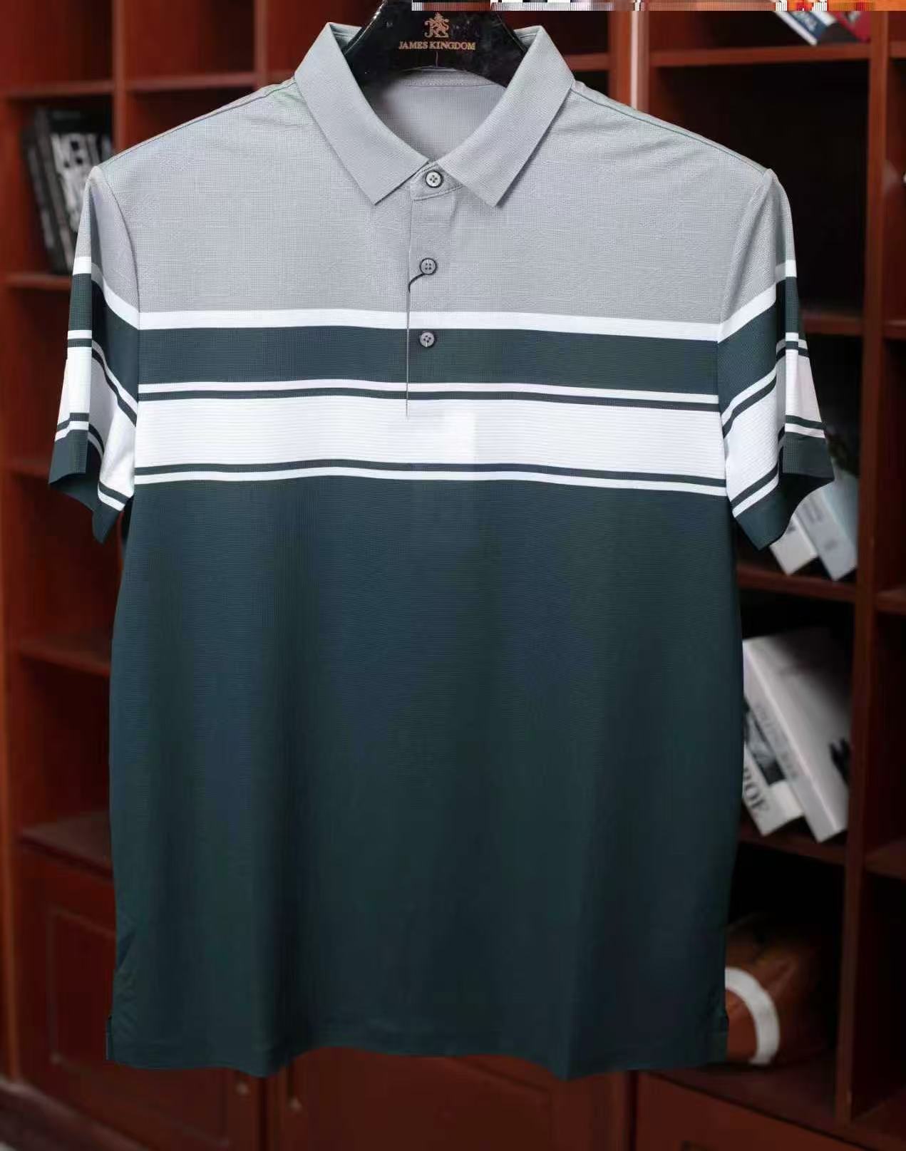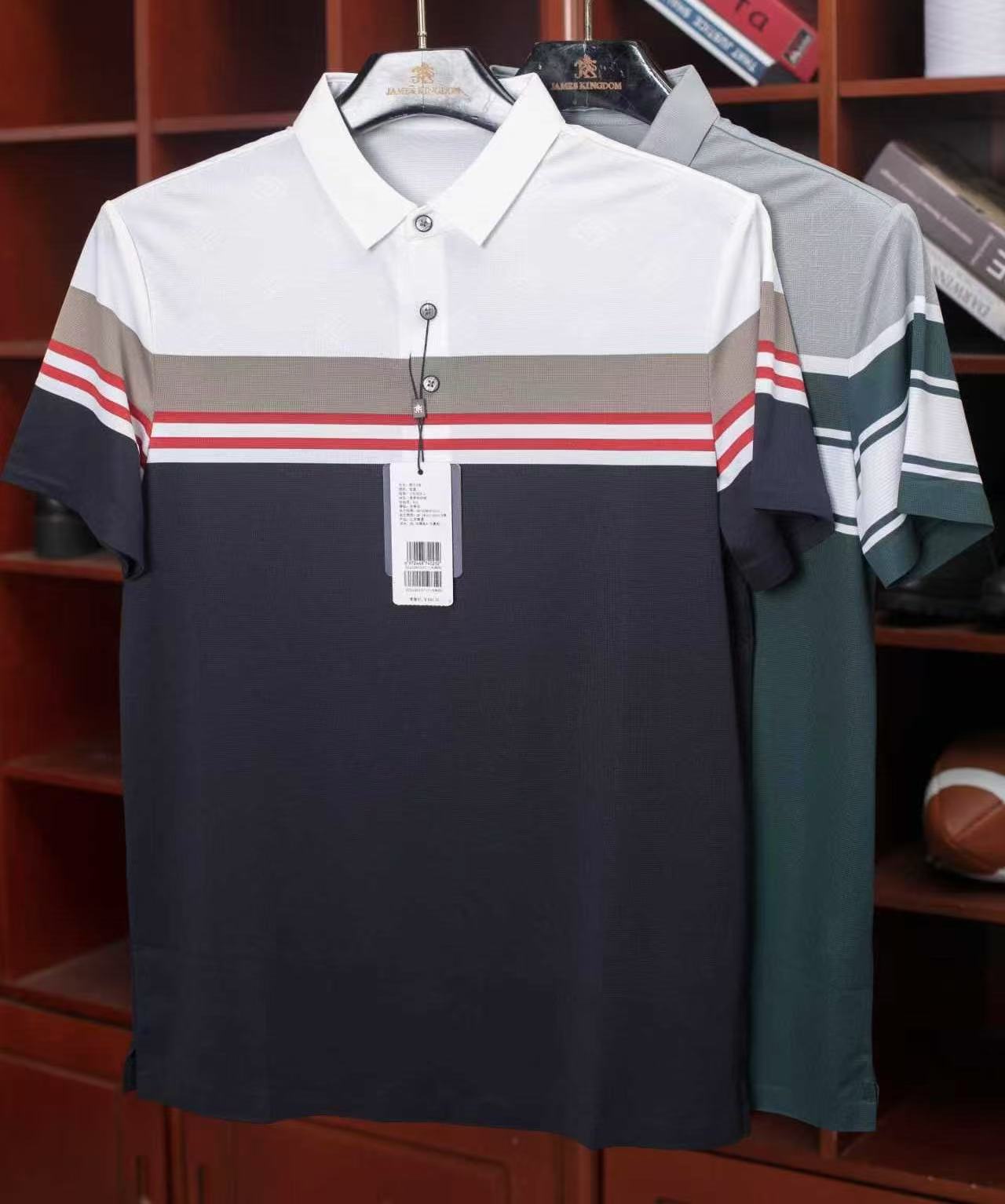 占姆士短袖POLO衫男士夏季新款翻领T恤休闲青年上衣条纹