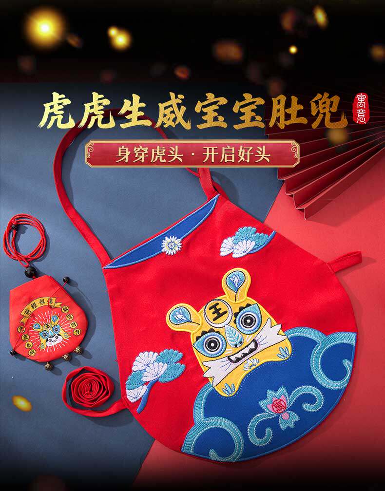【祈愿吉品】虎虎生威宝宝肚兜香囊亲肤棉材质新生儿童满月香囊