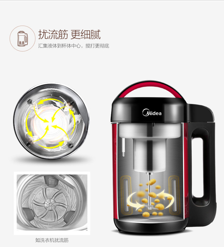 【家用电器】美的(Midea)豆浆机DE12G13家用无网研磨全自动多功能迷你打浆机