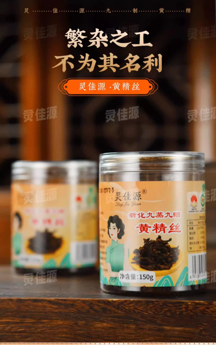 新化多花黄精九蒸九晒九制黄精瓶装150克药食同源黄精片