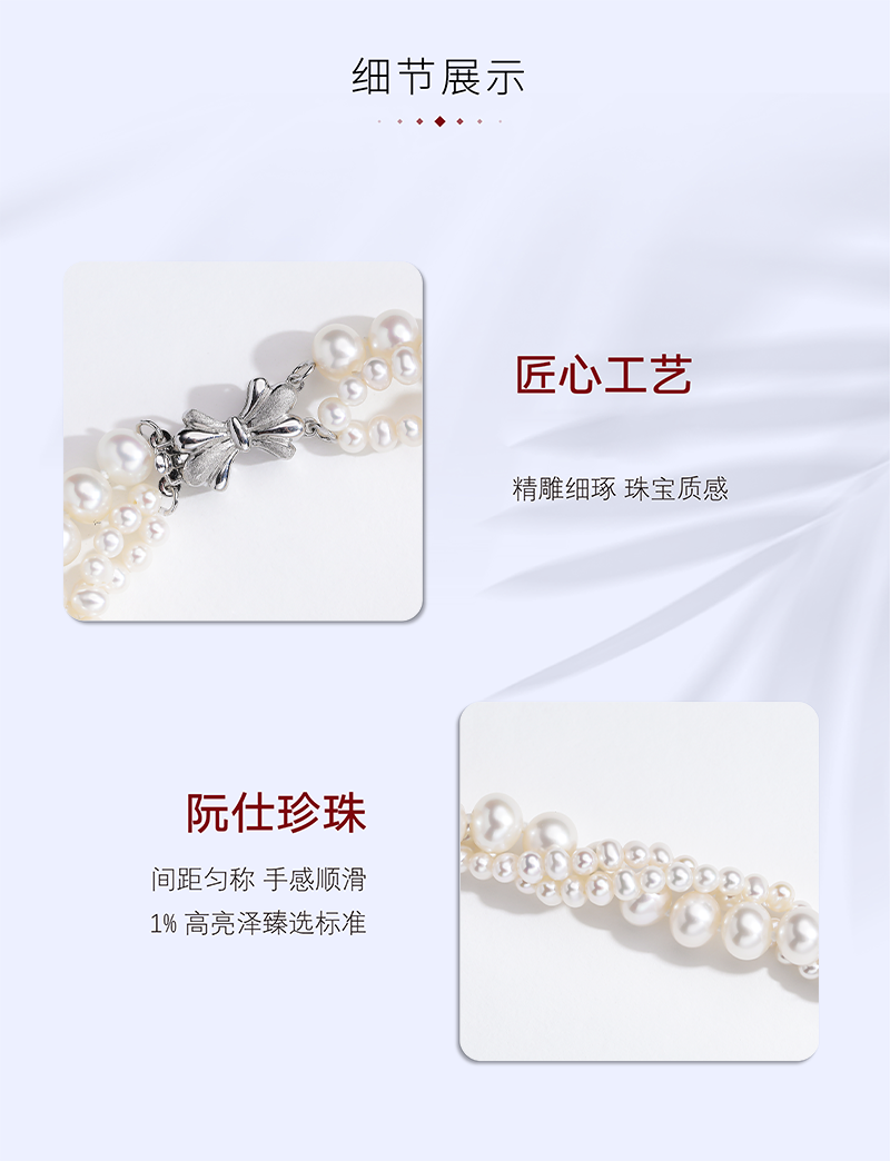 阮仕蕾丝系列 S925银淡水珍珠手链 3-3.5mm/6.3-7.3mm SH3-7.3LS-1D