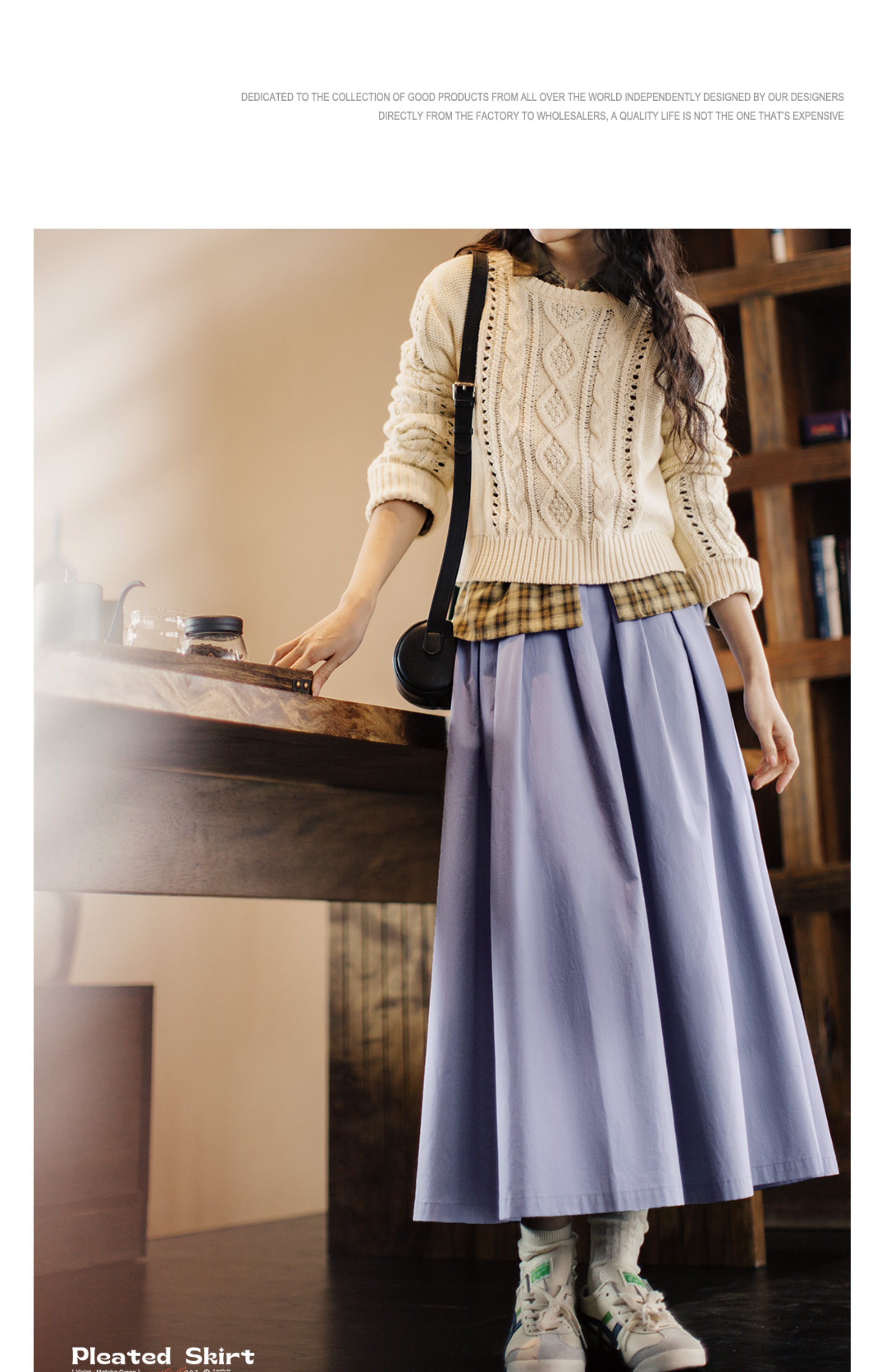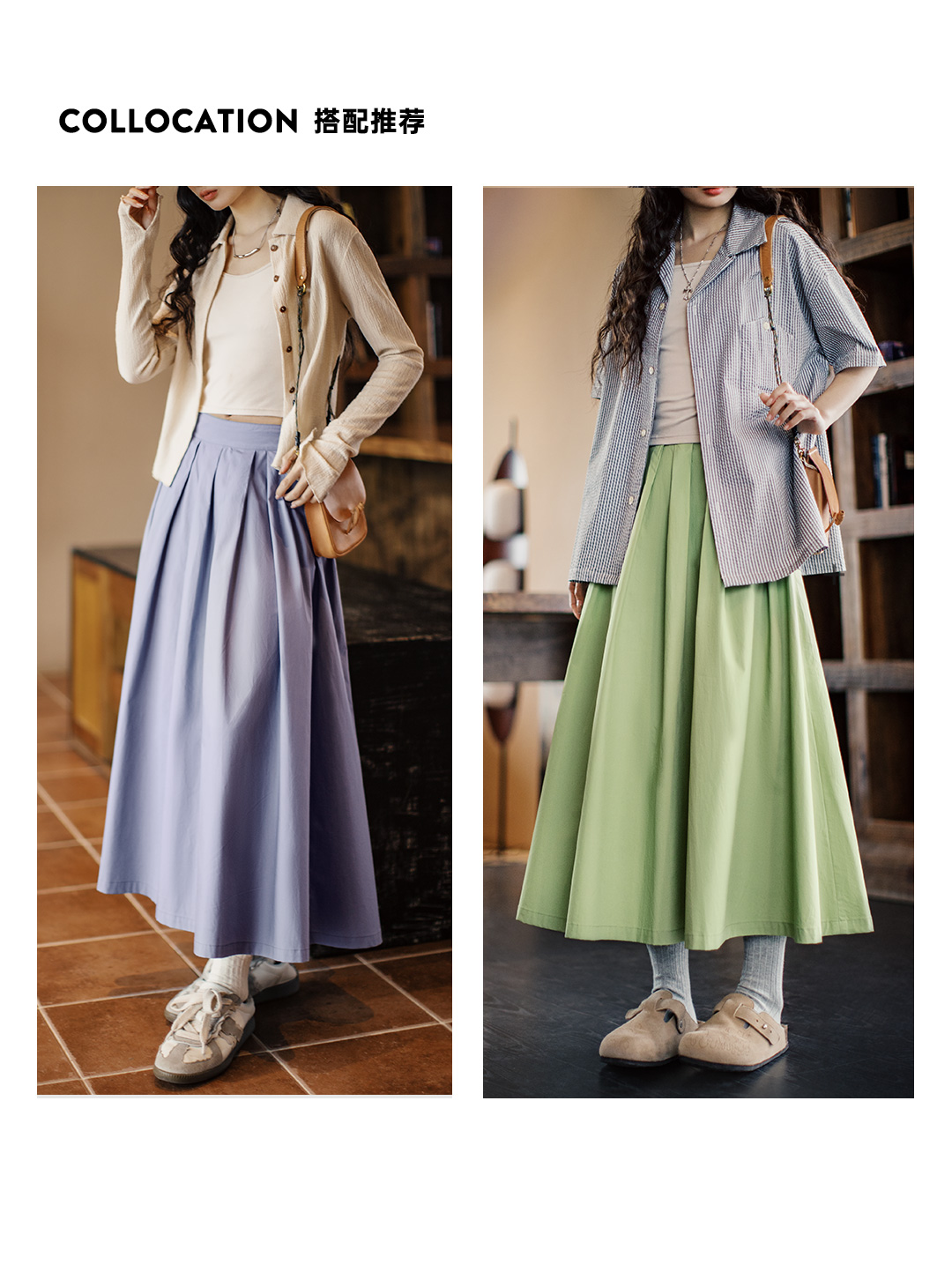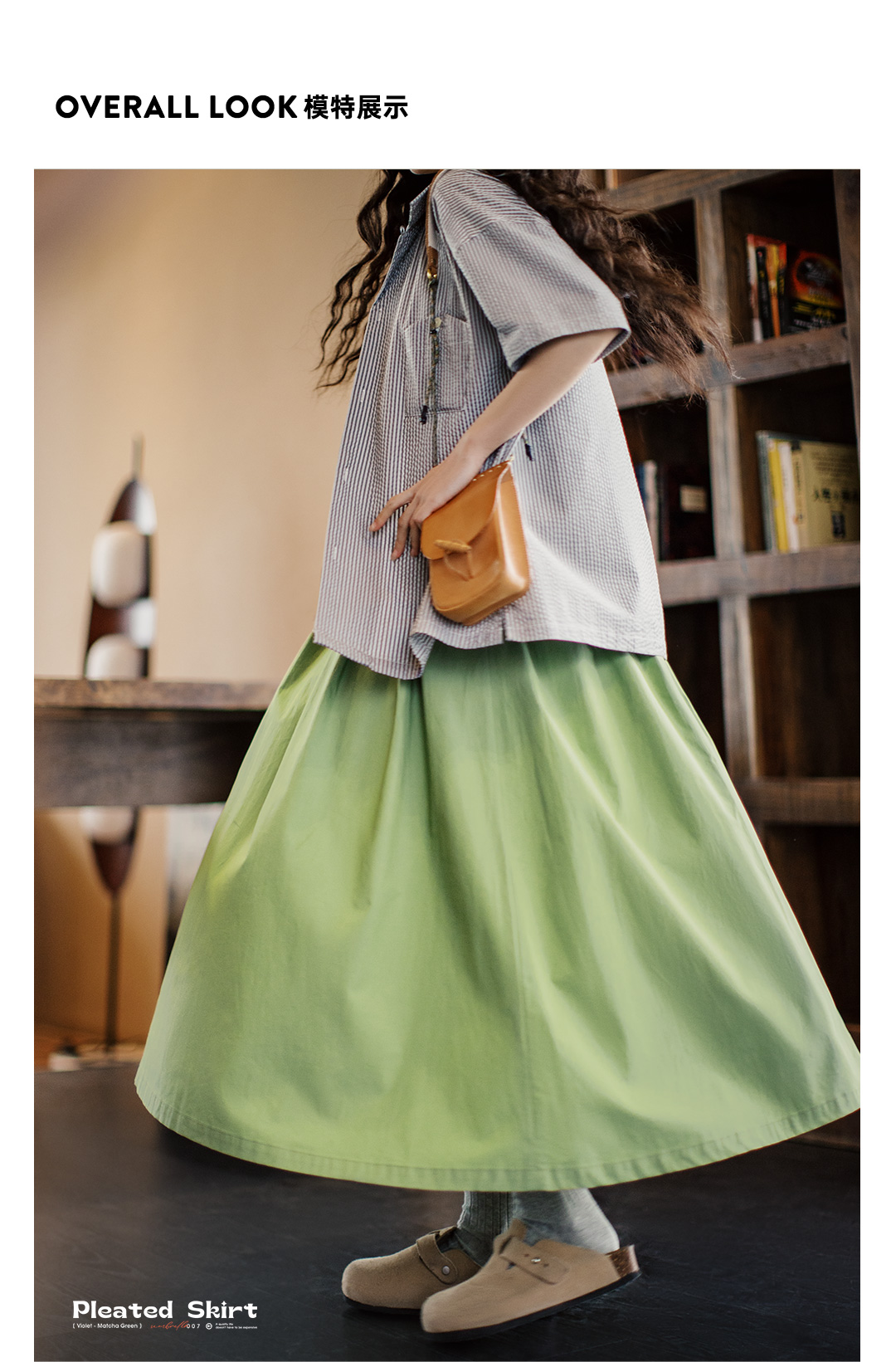 马登春日慢人风百褶伞裙日系A字工装裙温柔浅春系多巴胺半身裙女