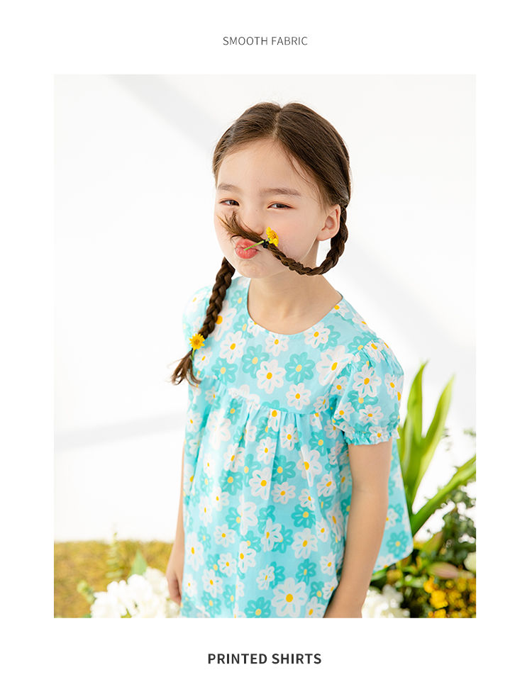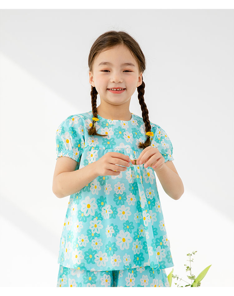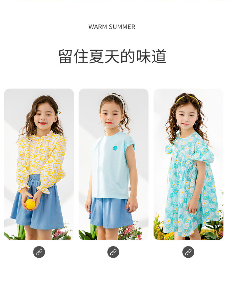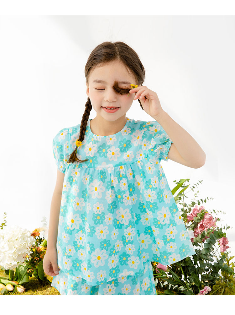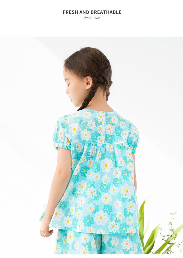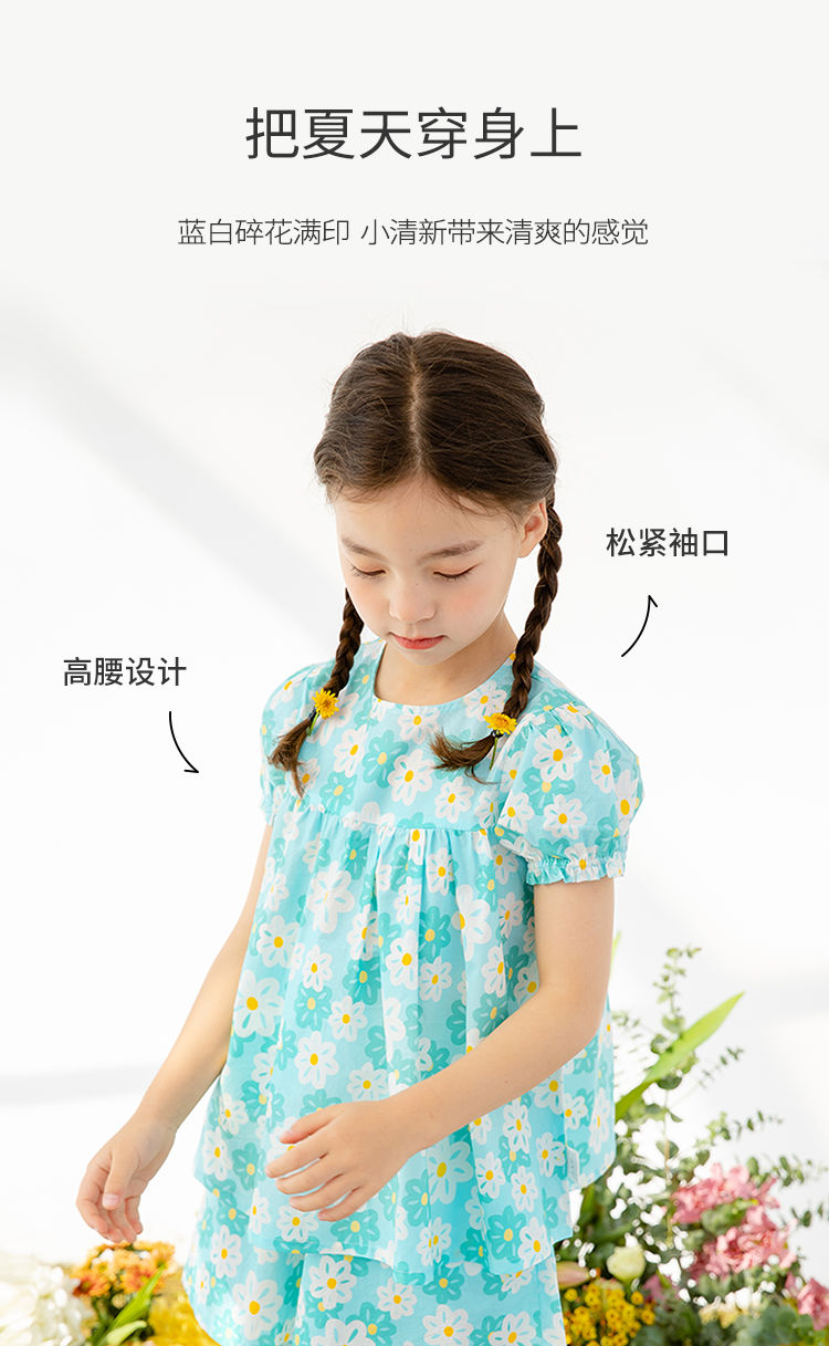 贝贝怡童装女童短袖衬衫2022夏季碎花可爱儿童上衣中大童洋气