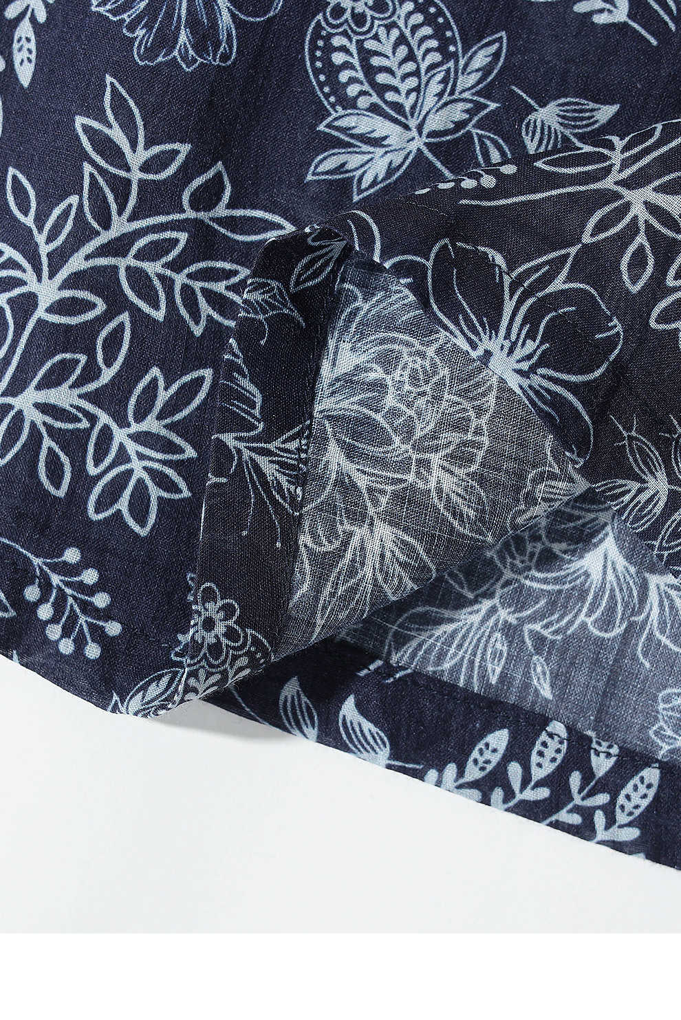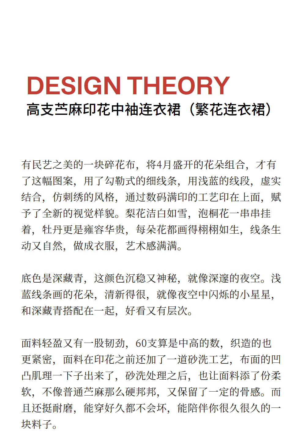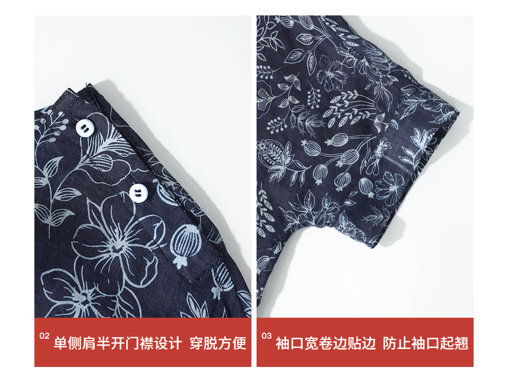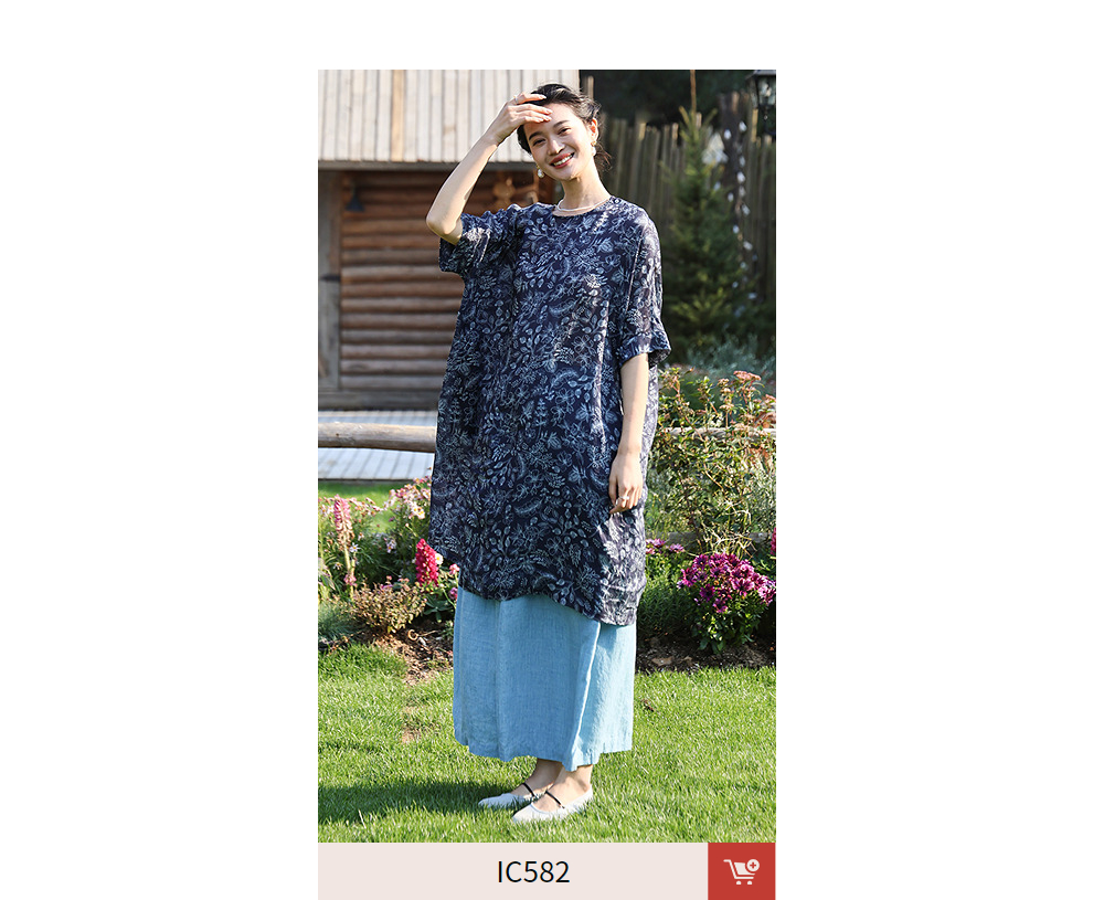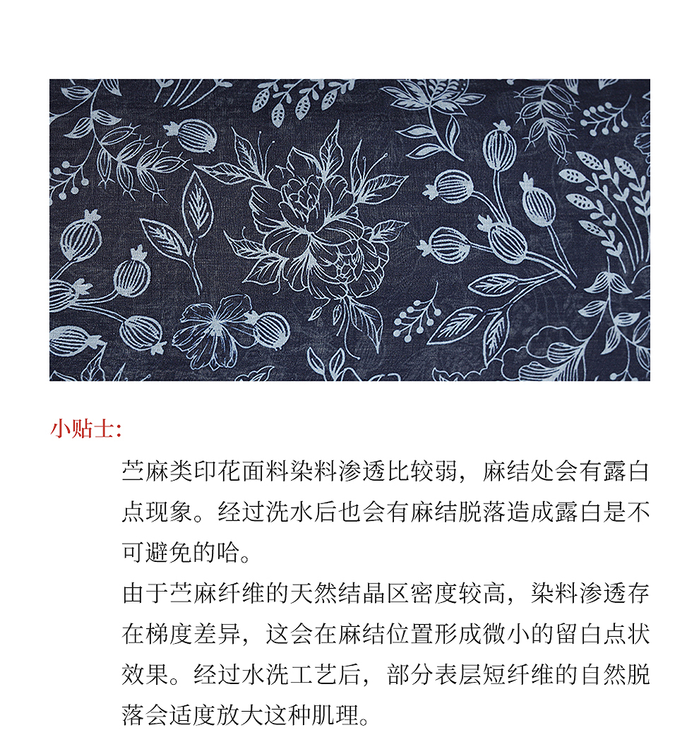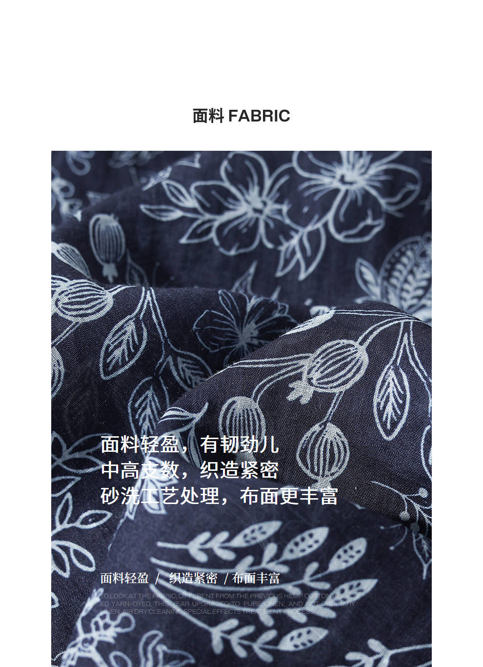 绽放243朵/繁花连衣裙砂洗苎麻蓝花连身蝙蝠袖一字领印花中袖裙子