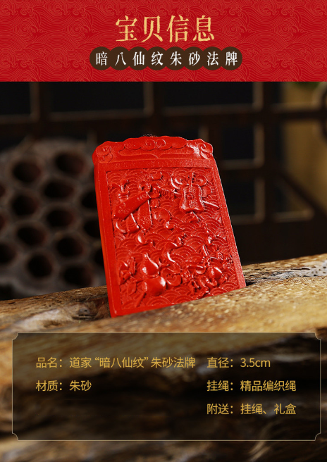 暗八仙朱砂牌,太极牌,纯正朱砂