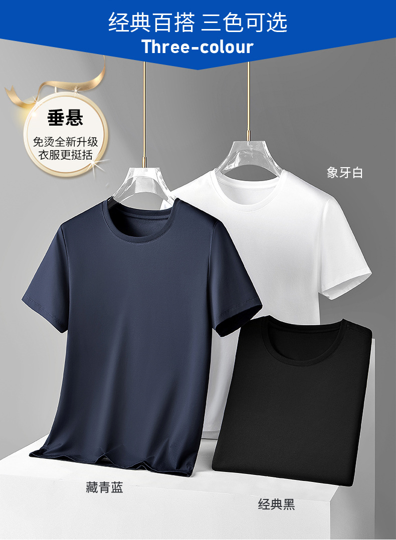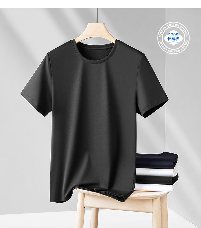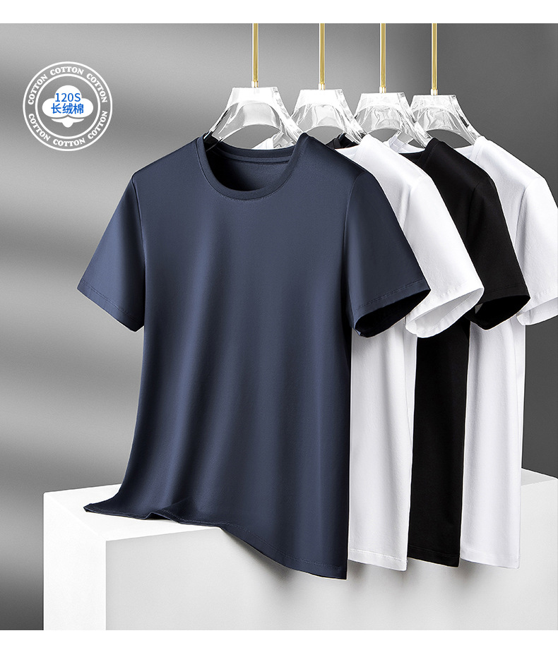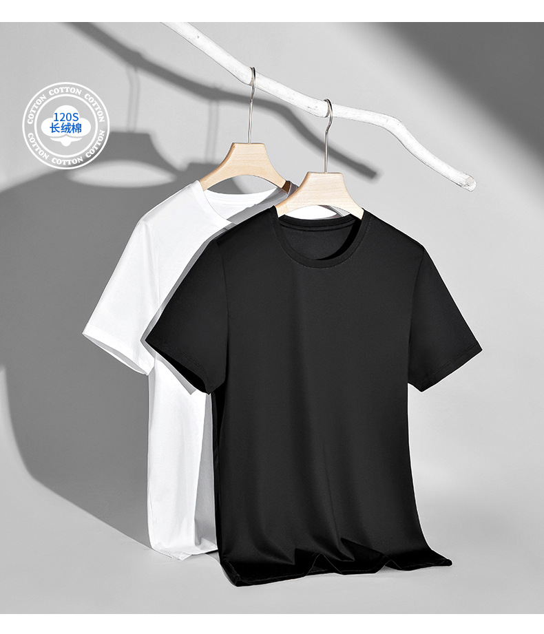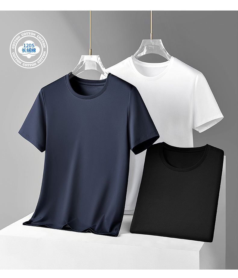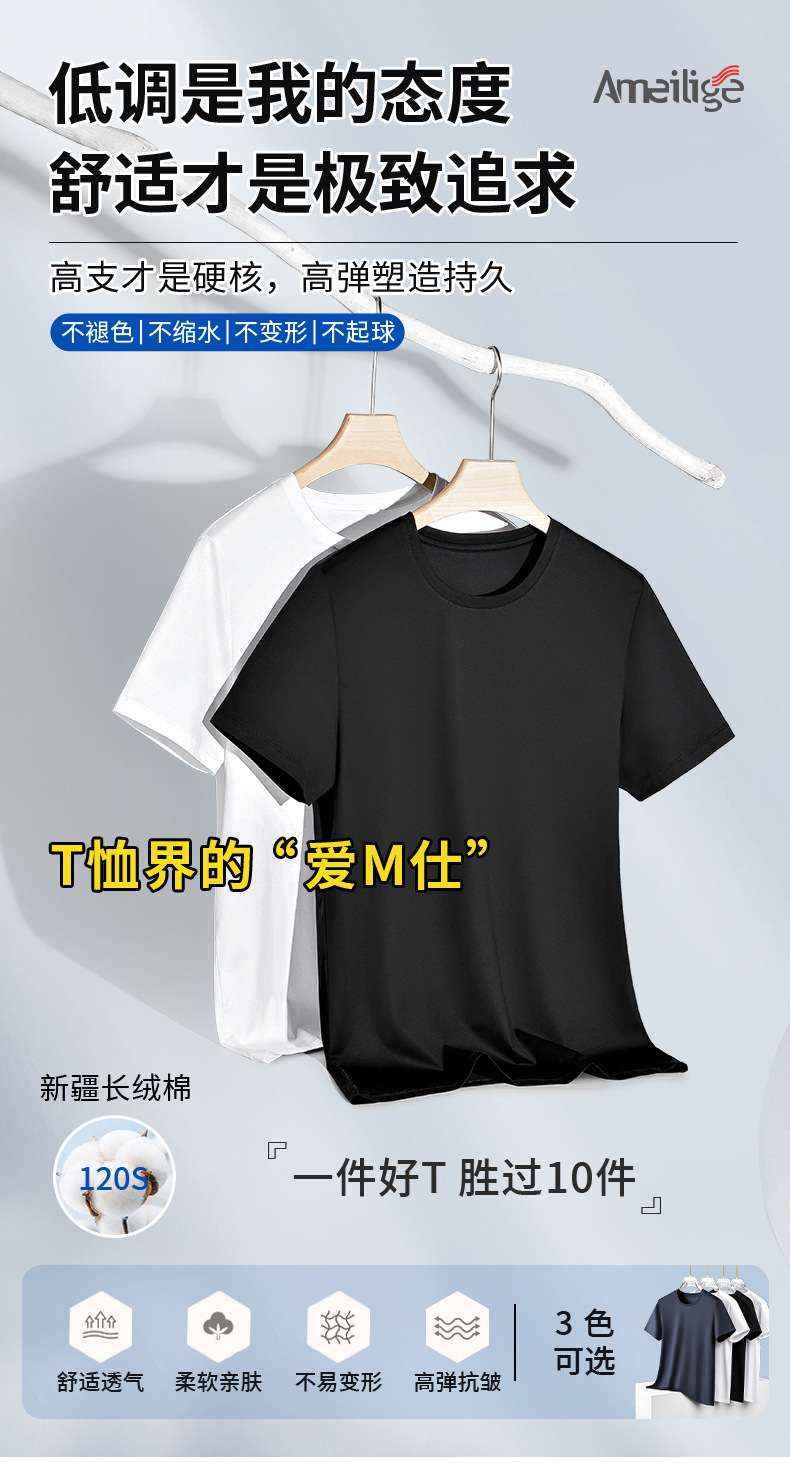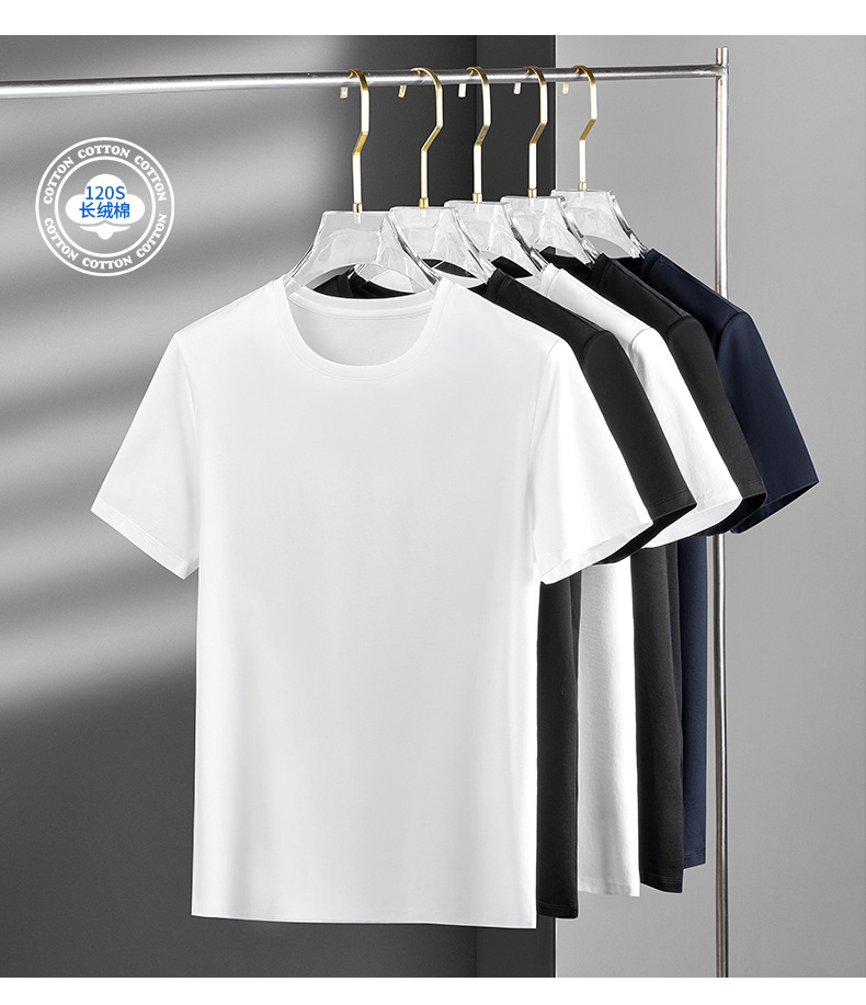 120支高级感正肩中年男士短袖t恤白色圆领新疆长绒棉纯色半袖体恤