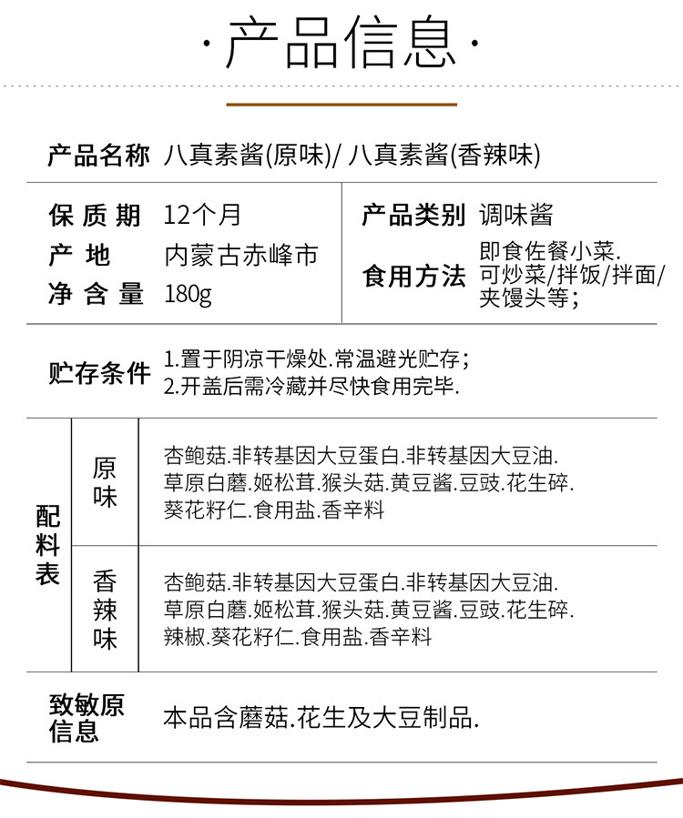 八真素酱 净素配料 佐餐酱 原味香辣下饭酱 拌面酱