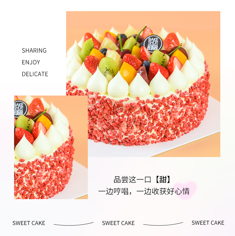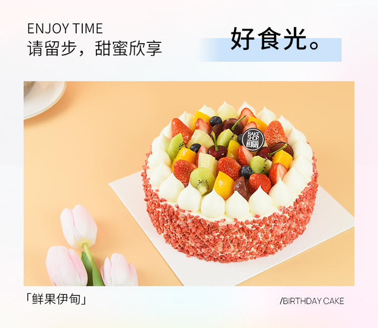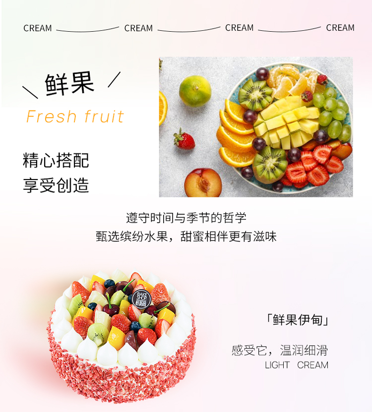 【鲜果伊甸】 时令鲜果生日蛋糕—纯乳脂与牛奶奶油混合,夹层口味升级,细腻香甜