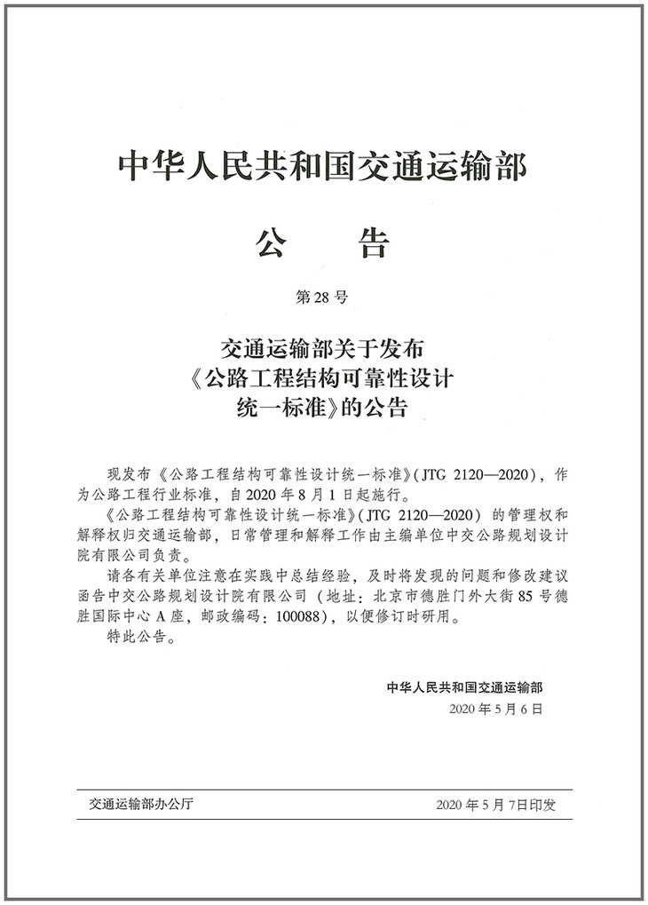 JTG 2120-2020公路工程结构可靠性设计统一标准
