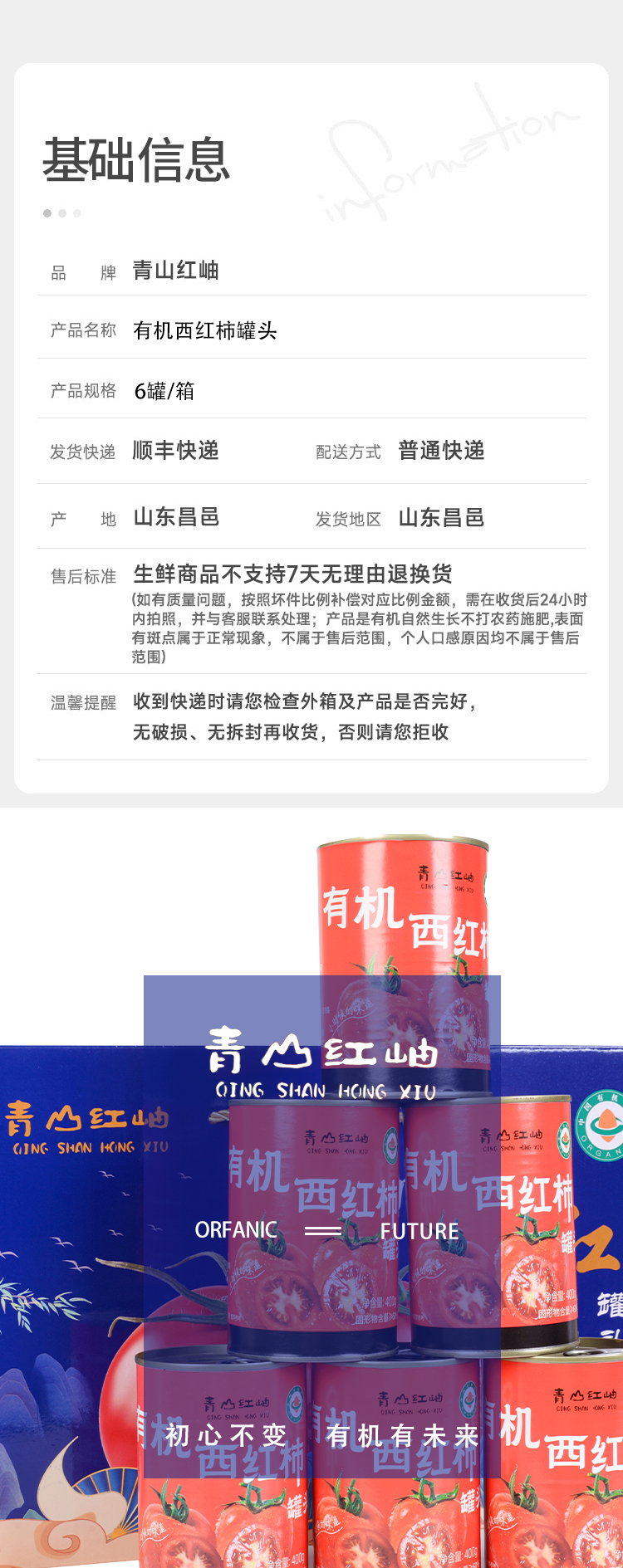 有机西红柿罐头 6罐/箱 全国配送(偏远地区除外)