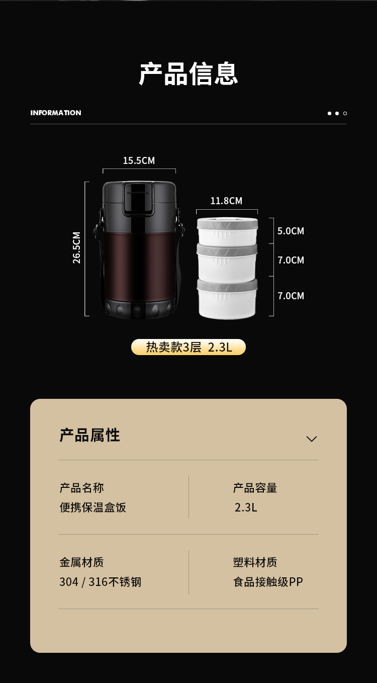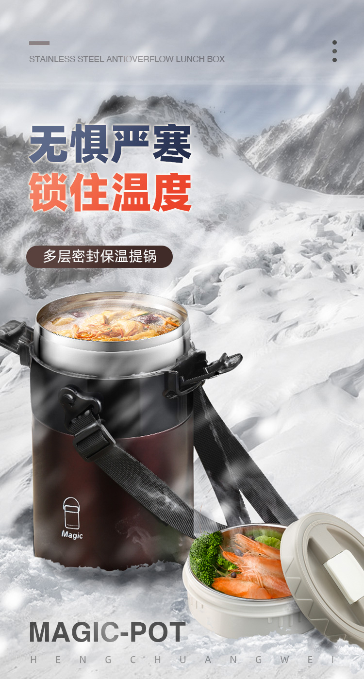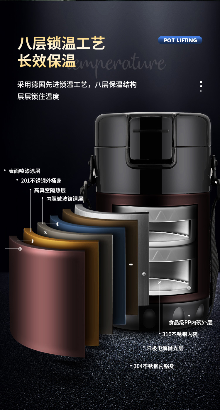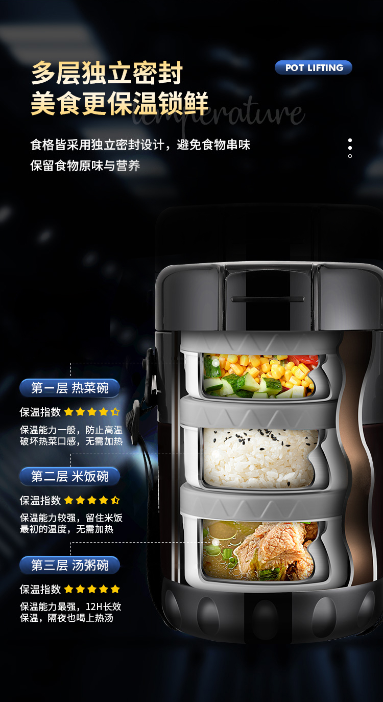 【316分格密封保温提桶】通勤日用保温饭盒上班专用便当餐盒