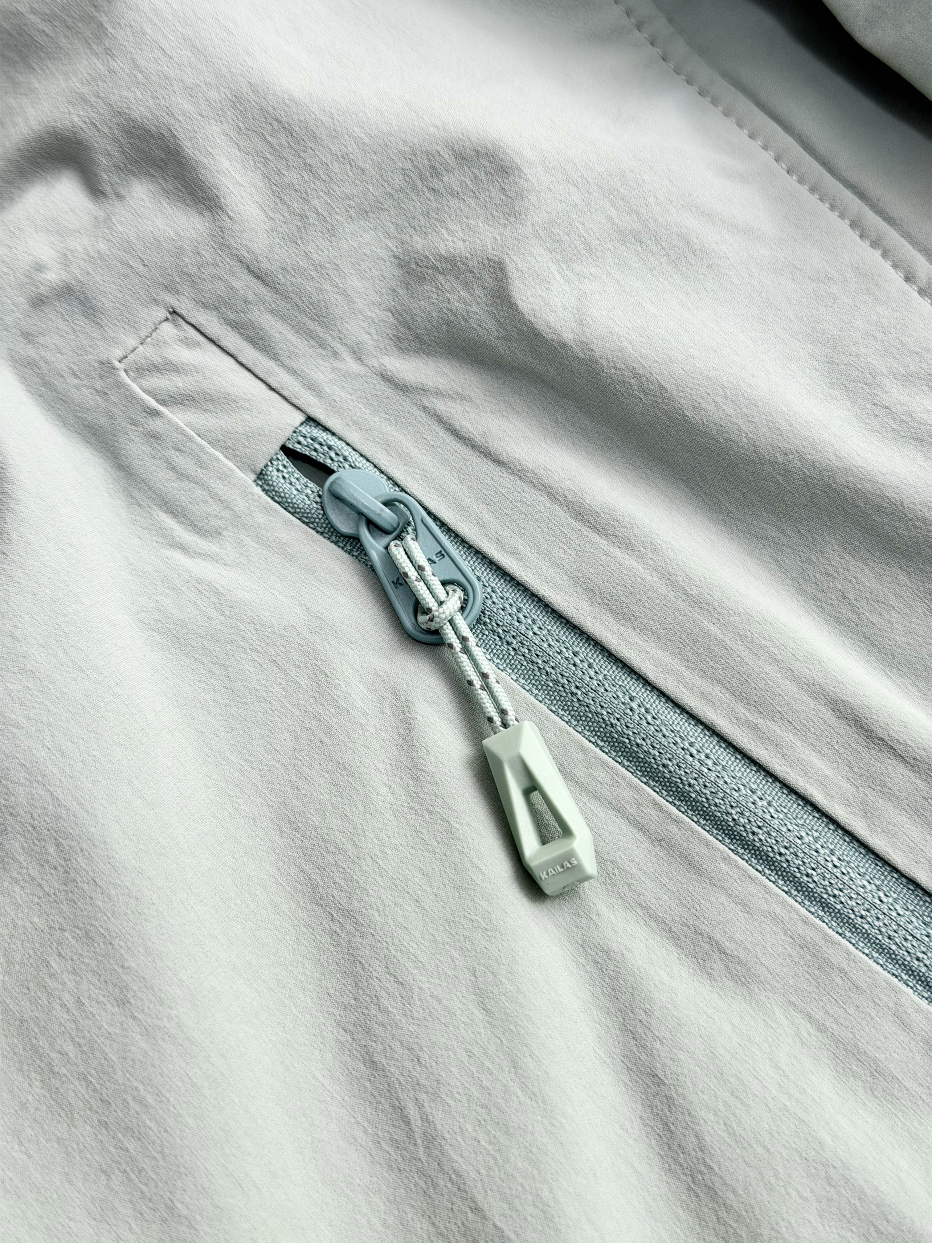 连帽设计护住后颈,拉链口袋藏好随身小物,