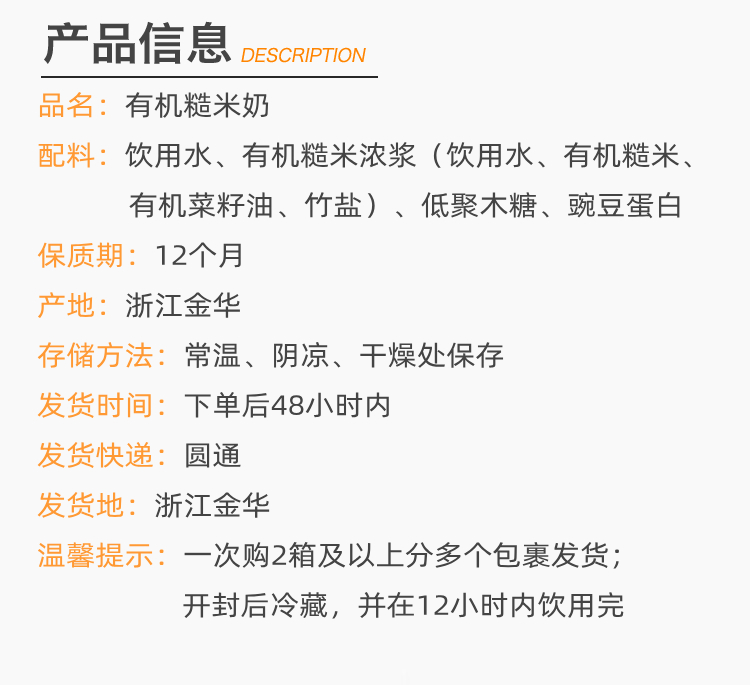 有机糙米奶 植物奶 10盒/箱【200ml*1盒】