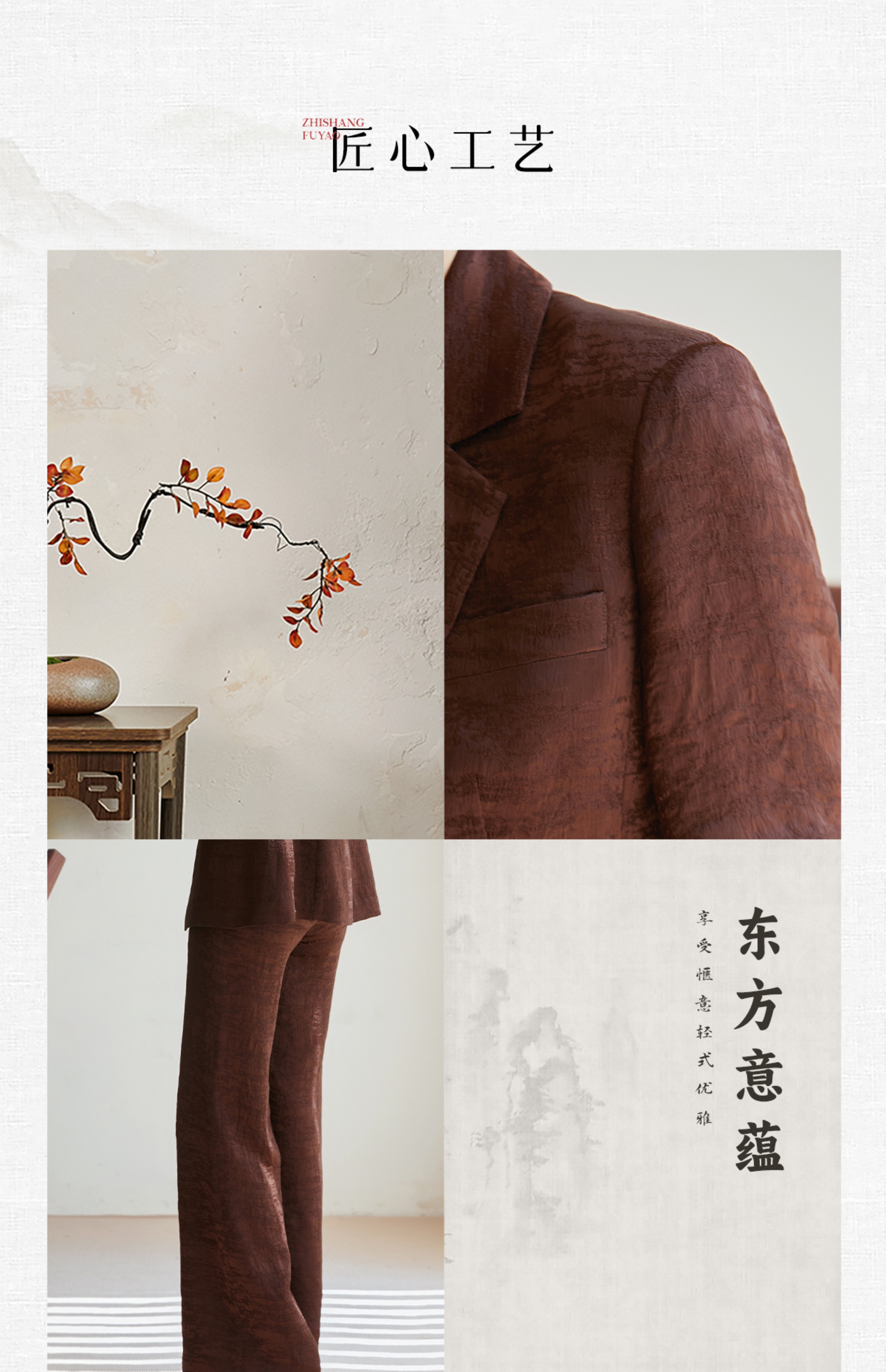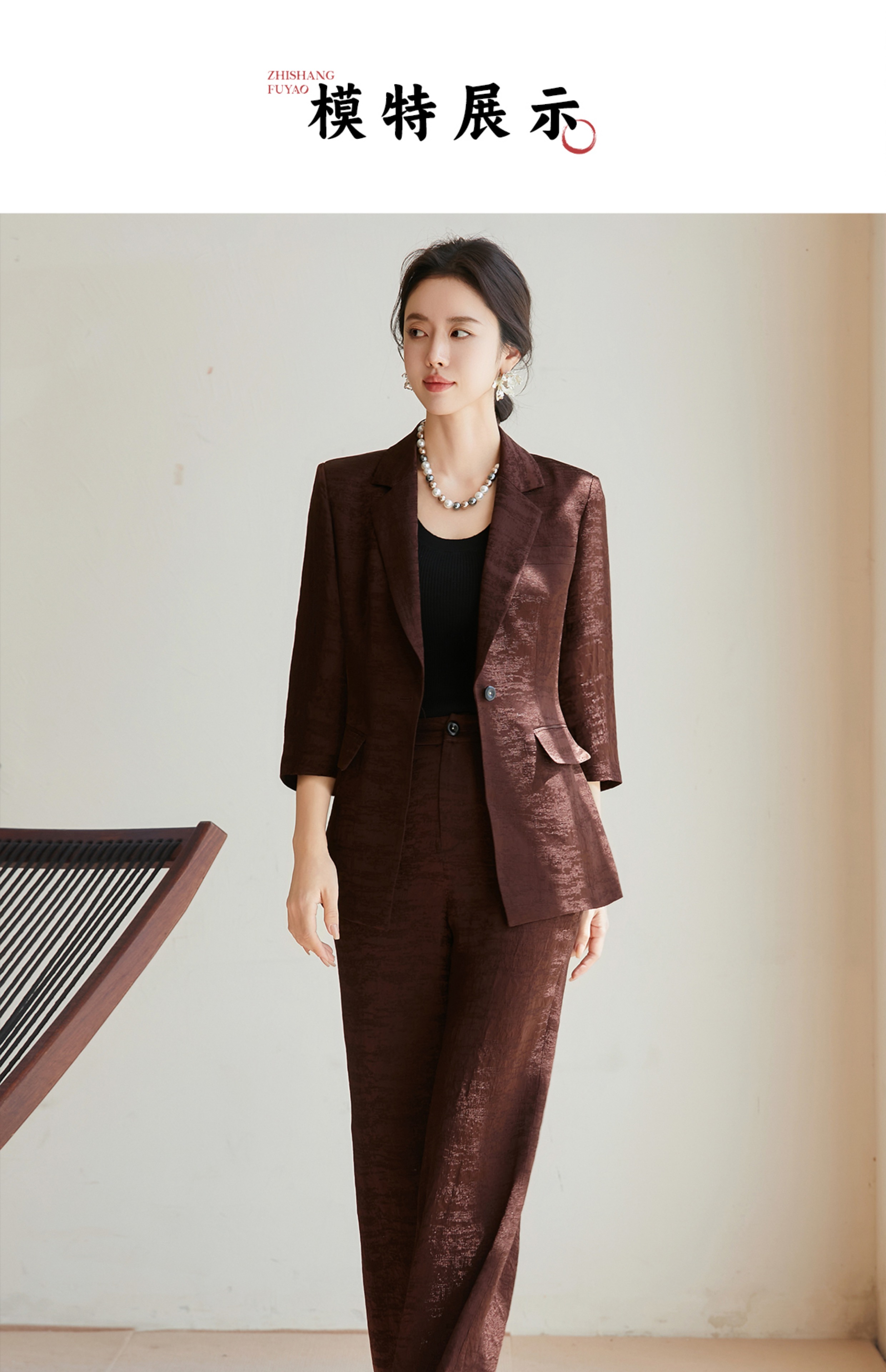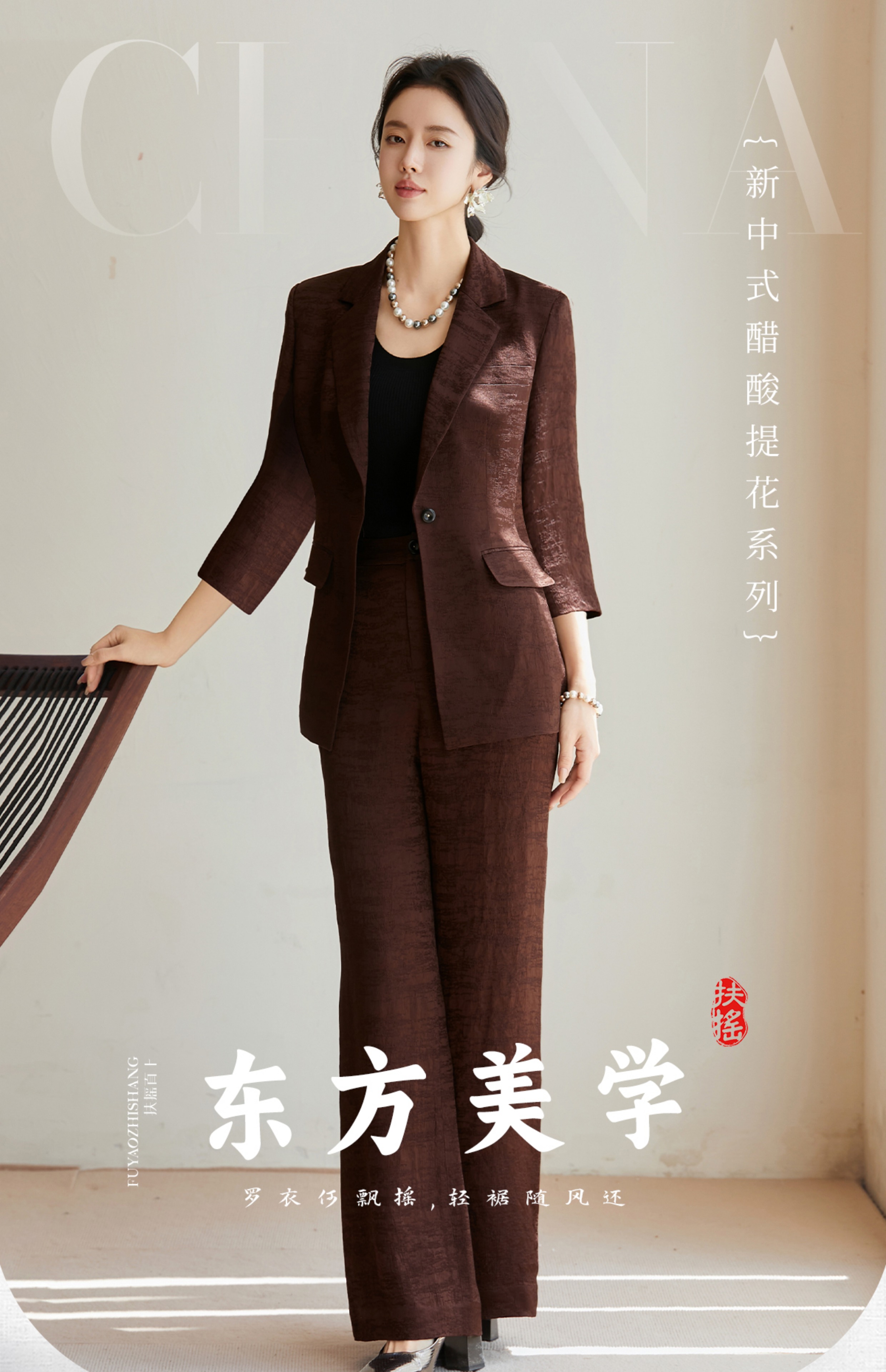 FUYAO扶摇 老钱风西装阔腿裤套装女2025夏季新款醋酸提花国风西服