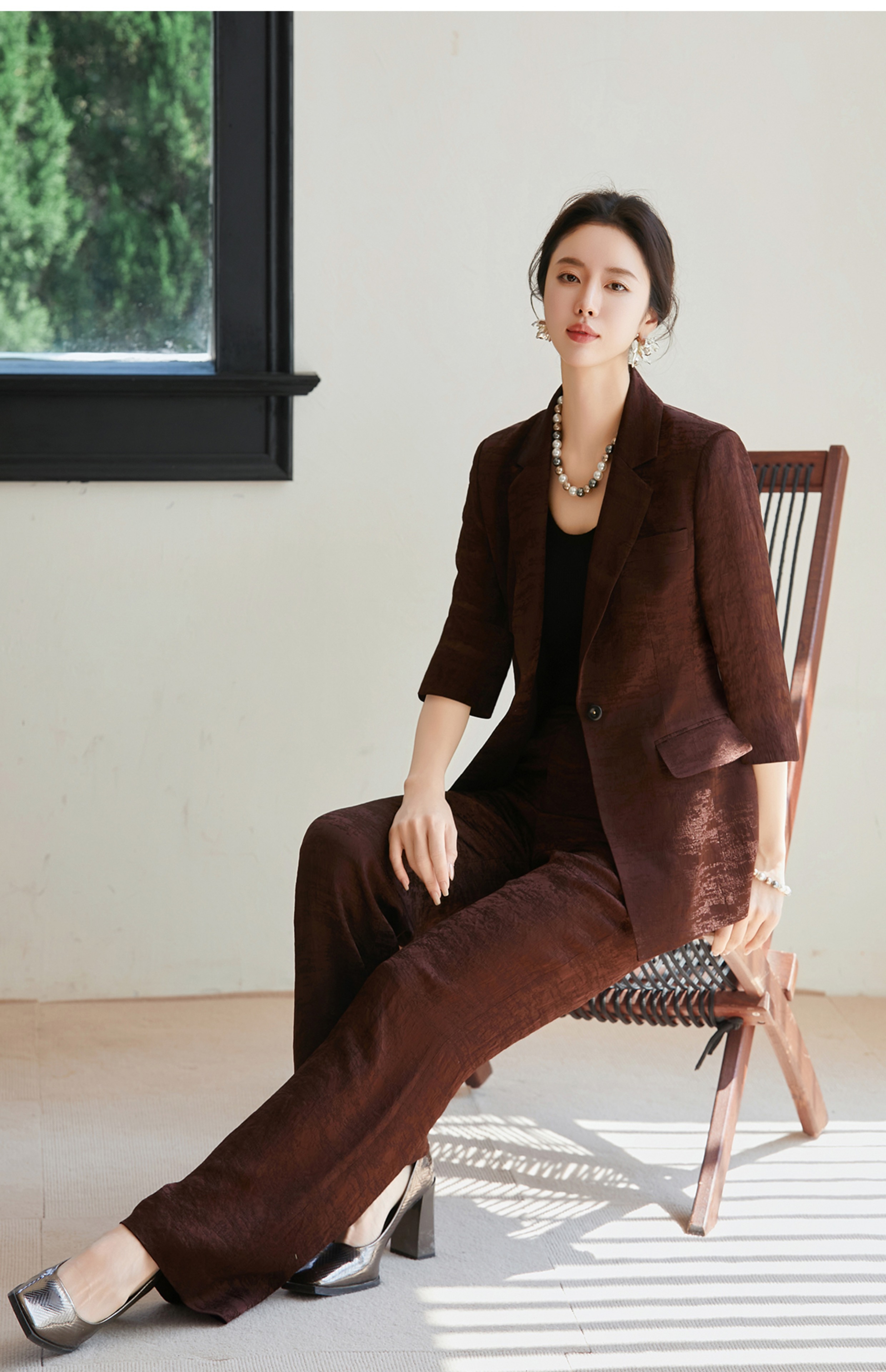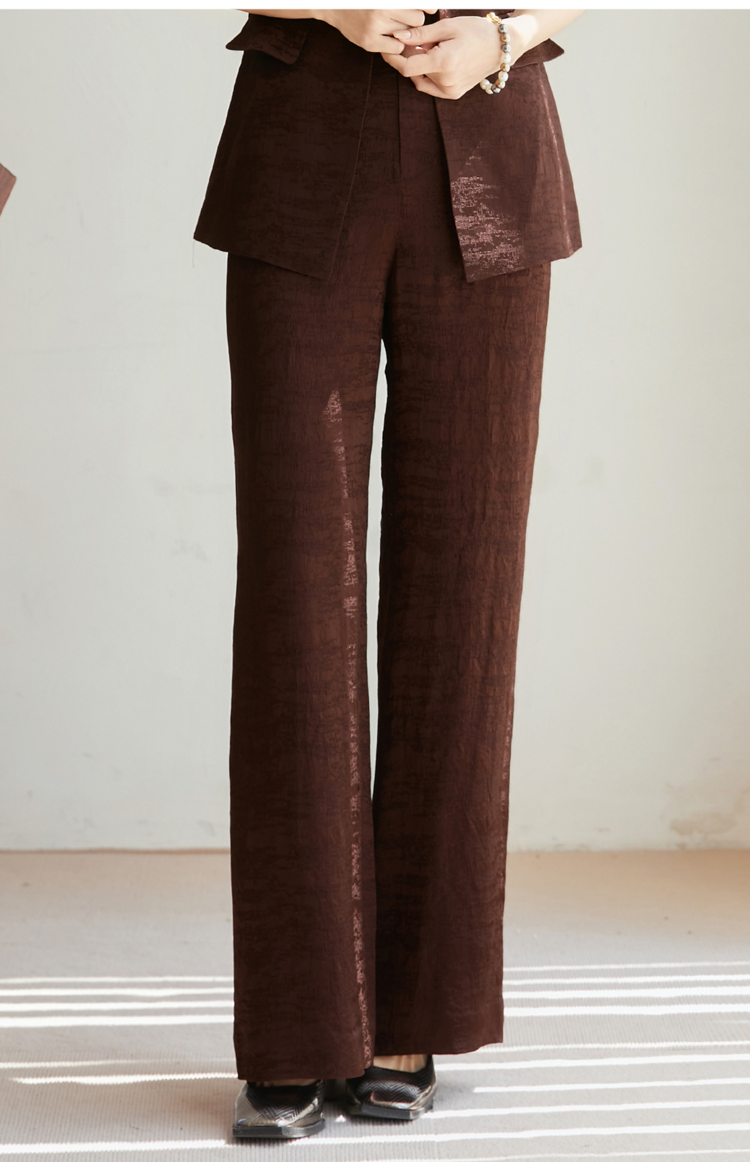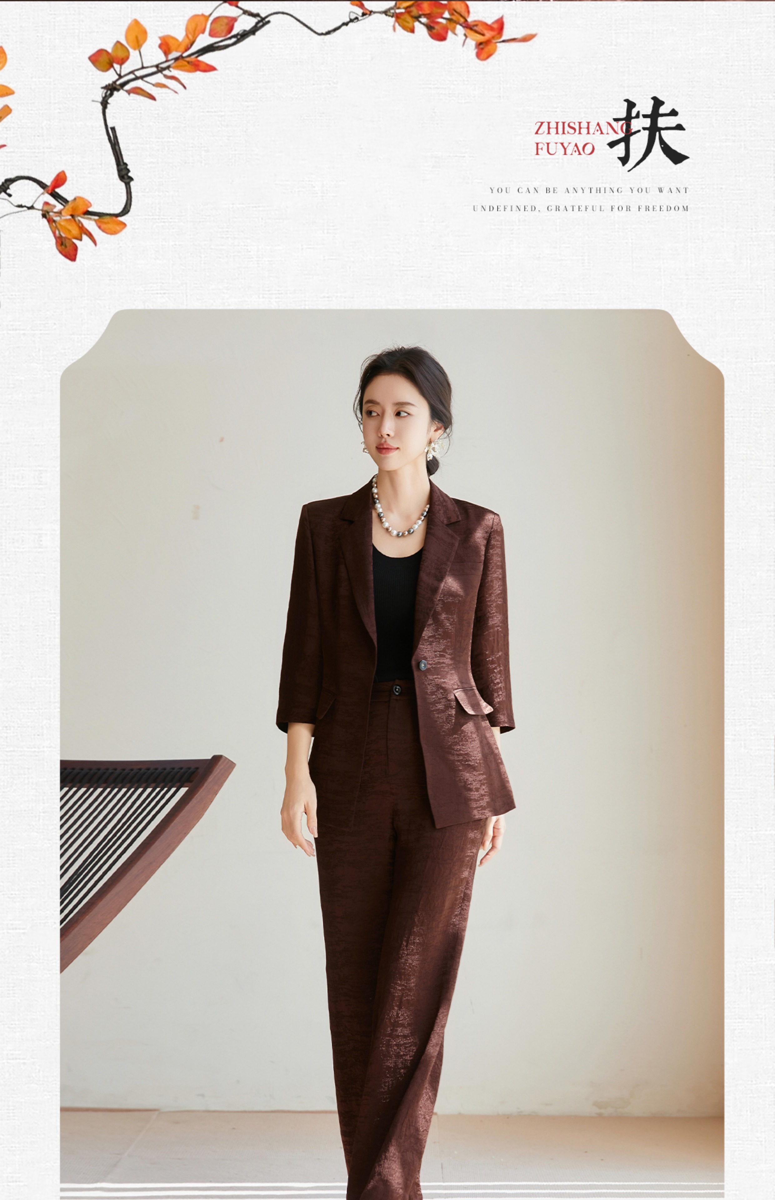 FUYAO扶摇 老钱风西装阔腿裤套装女2025夏季新款醋酸提花国风西服