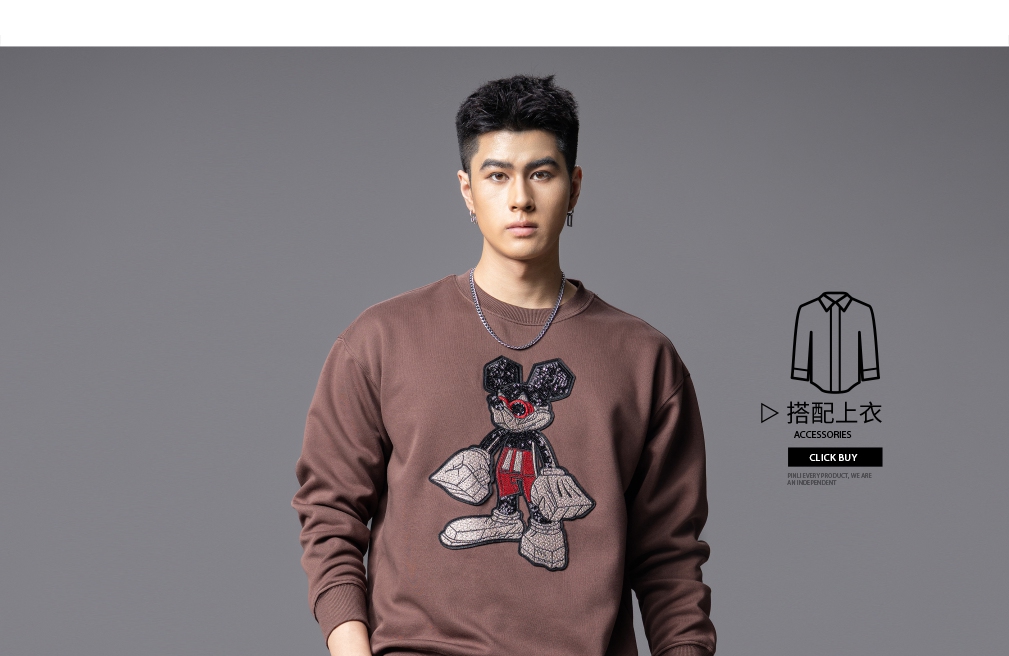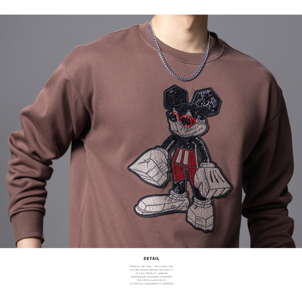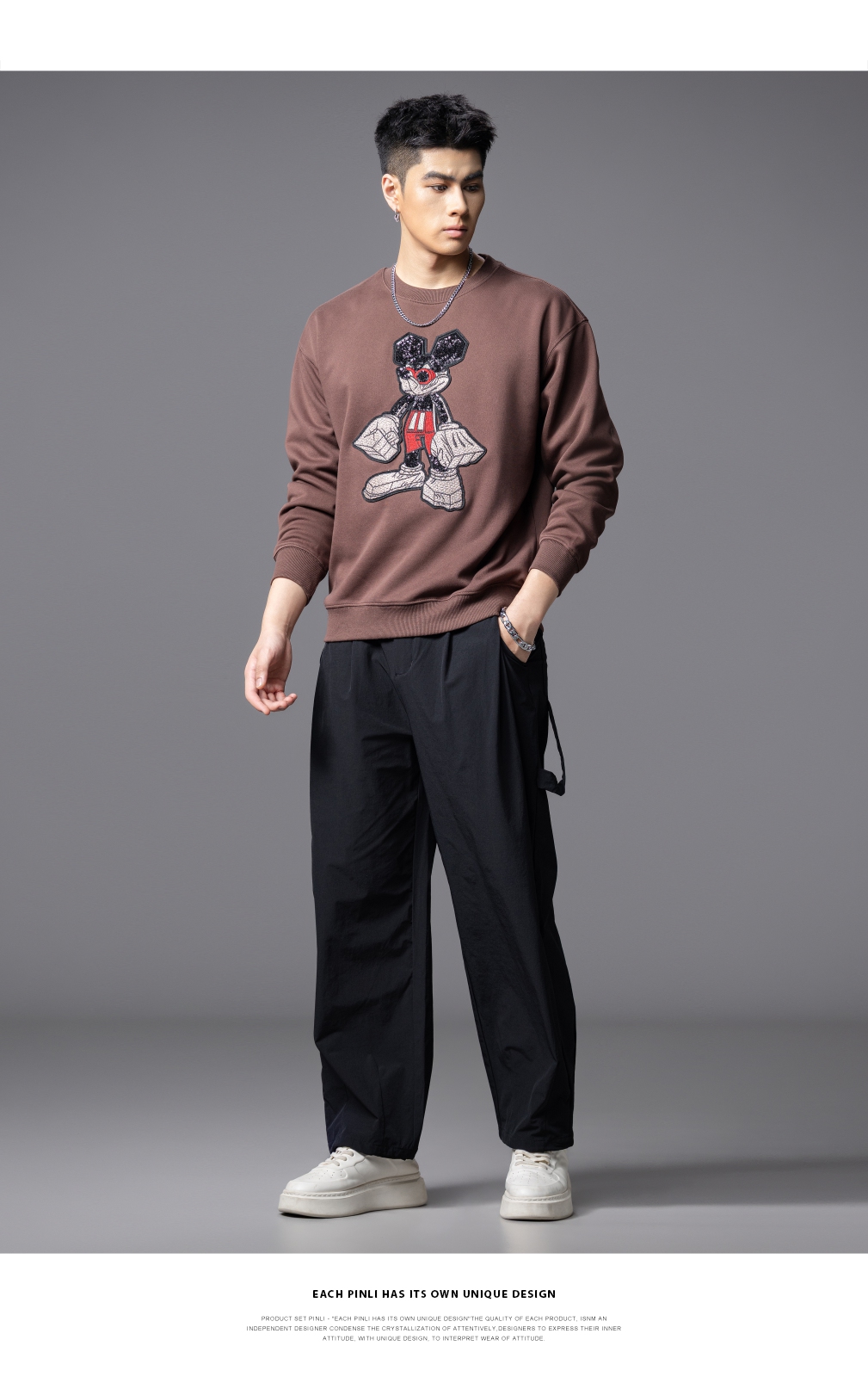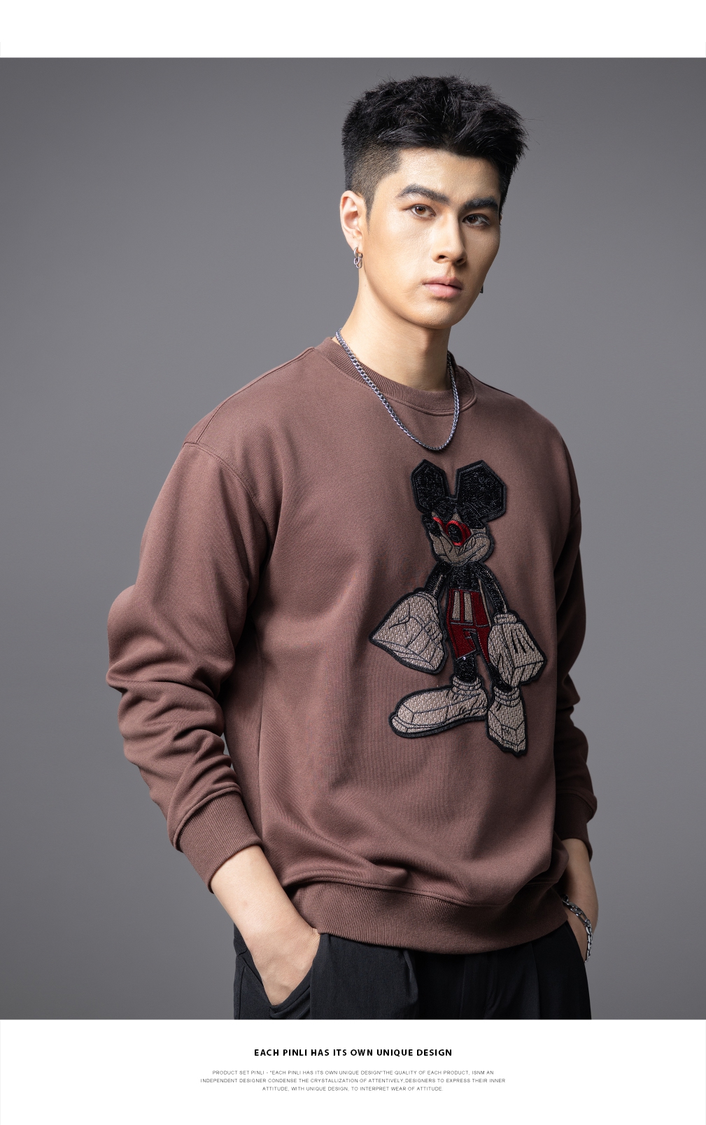 PINLI品立2025秋冬新品亮片卡通圆领卫衣潮牌宽松休闲套头男上衣BG253109001