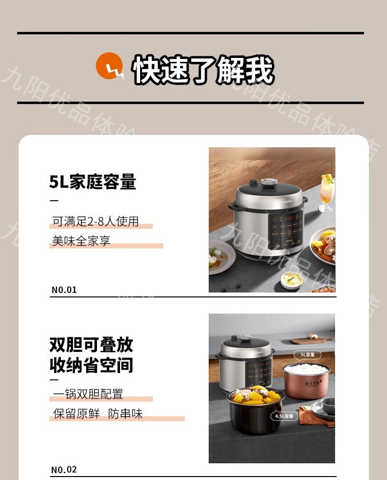 【大火系列】九阳50C32/60C32电压力煲双胆叠纳智能调压电压力锅