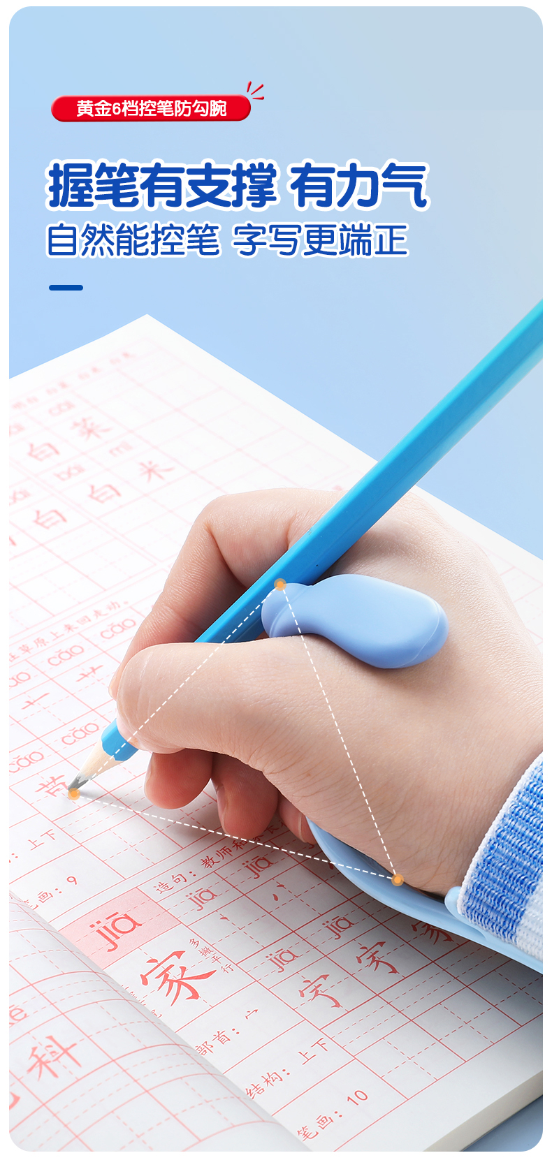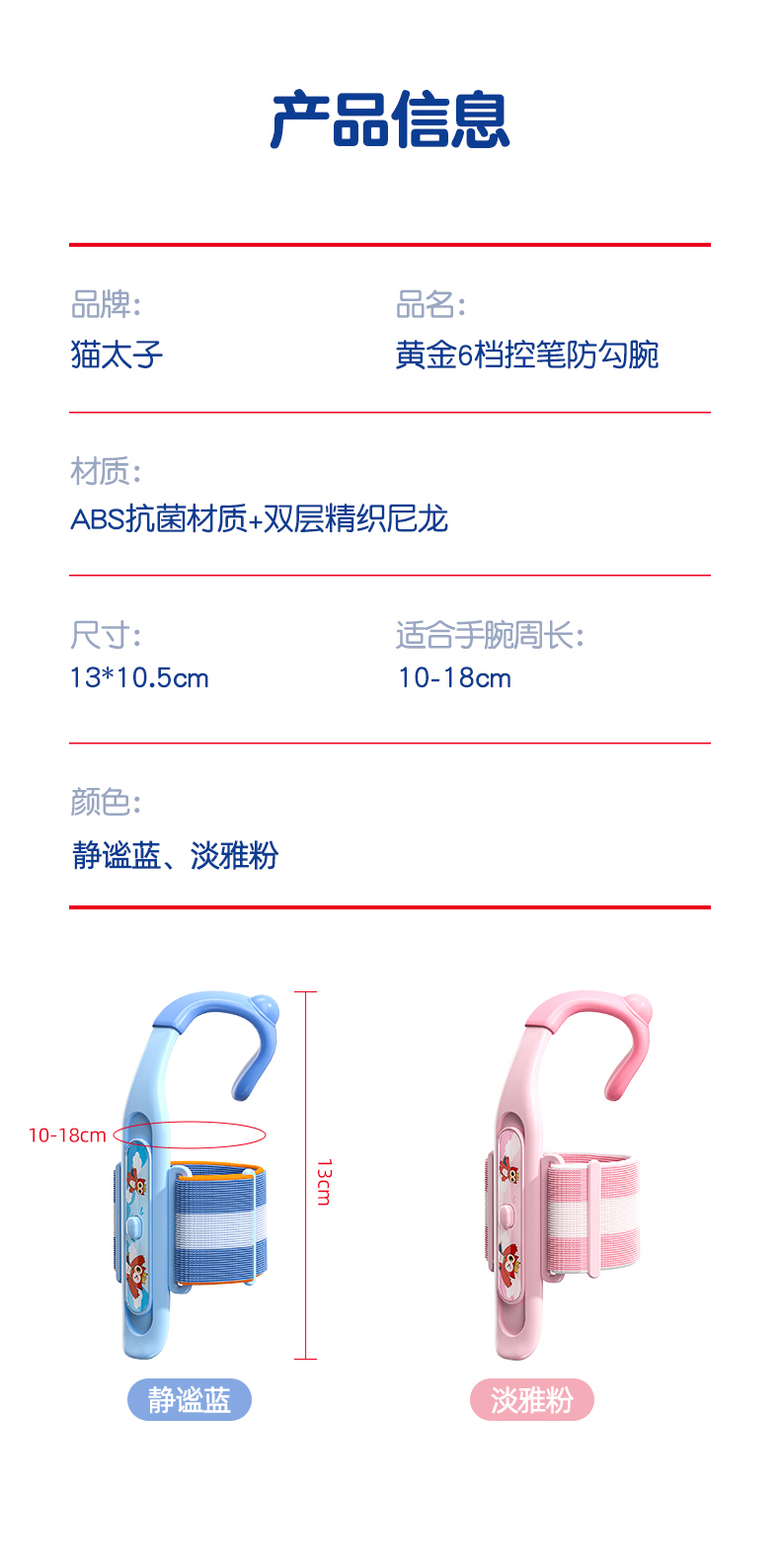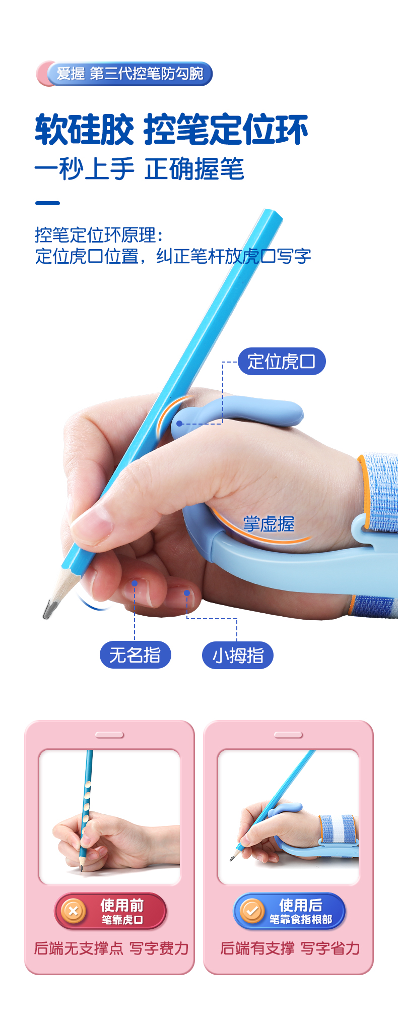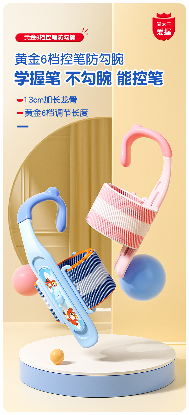 猫太子防勾腕矫正器小学生握笔姿势矫正初学者握笔器学写字勾手腕内钩固定器纠正控笔训练神器