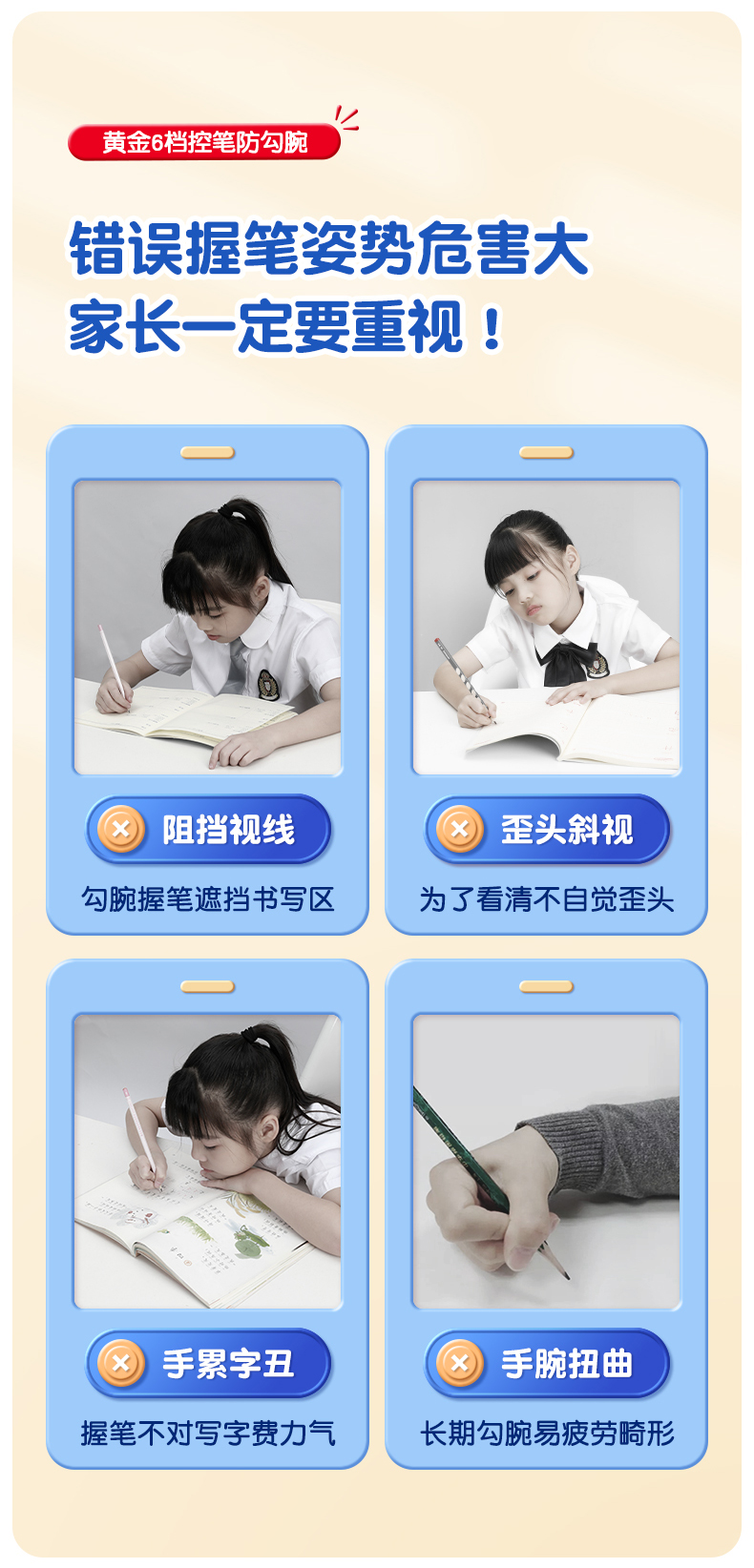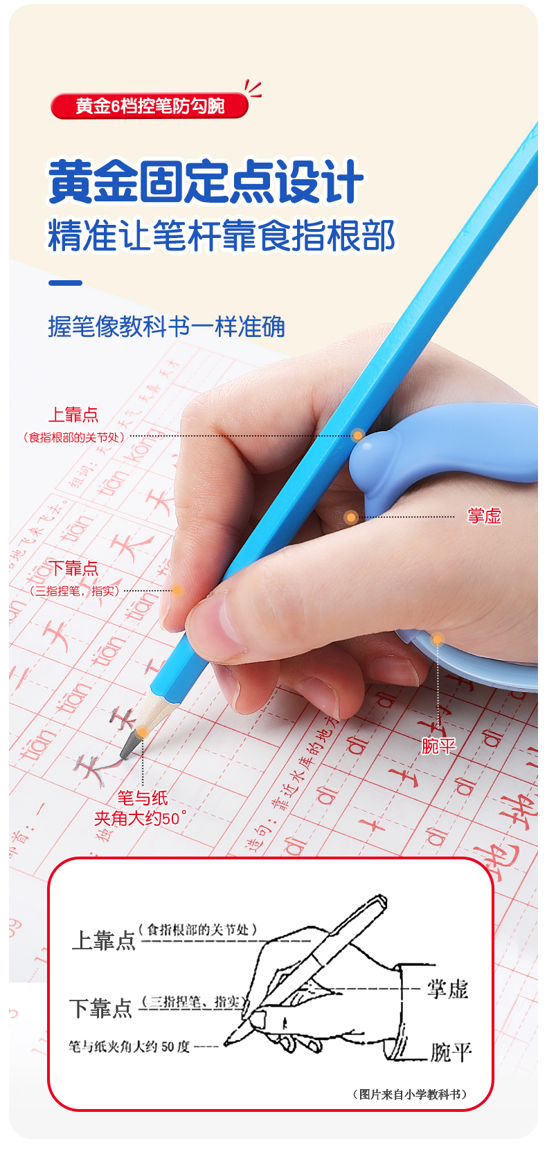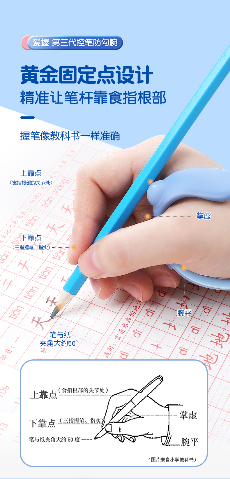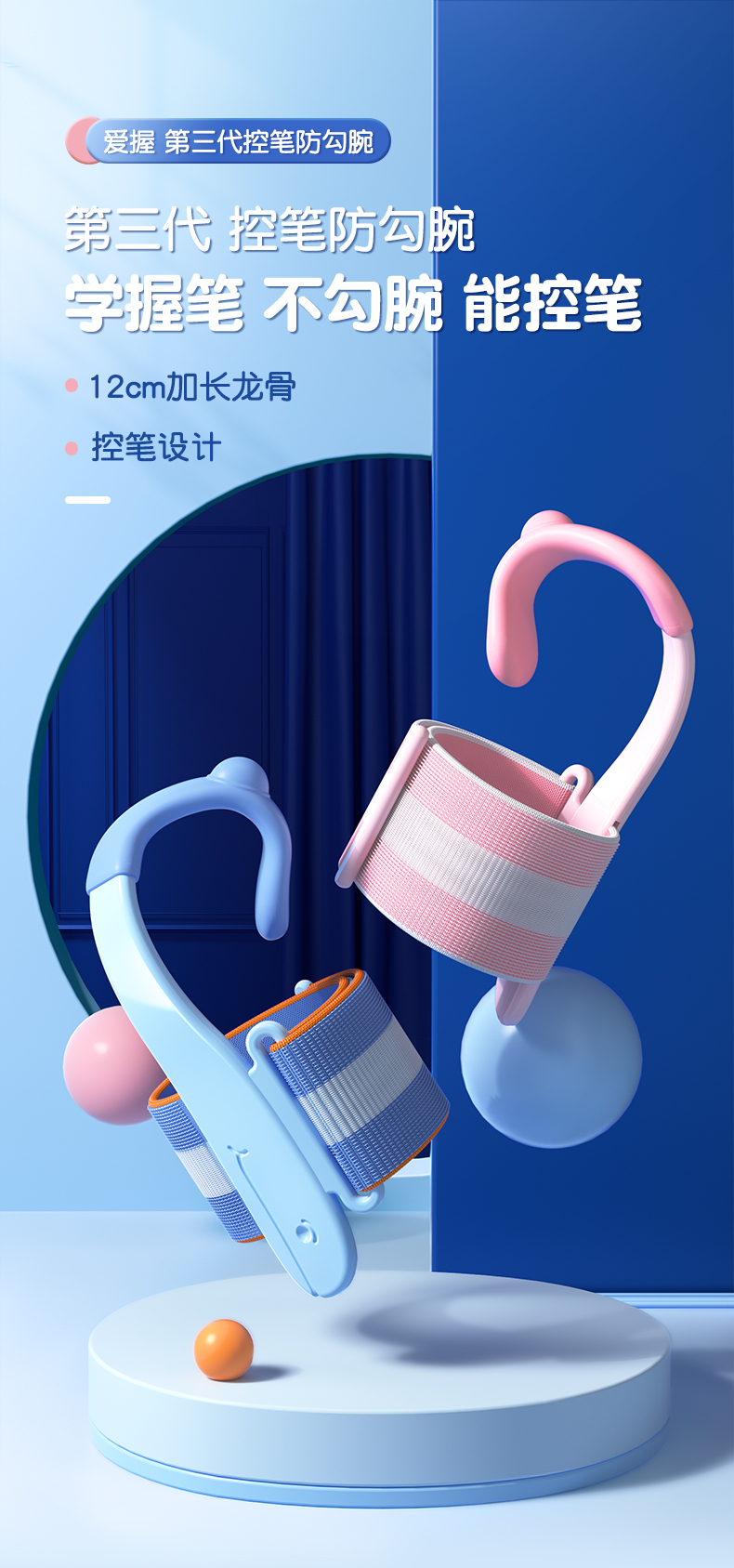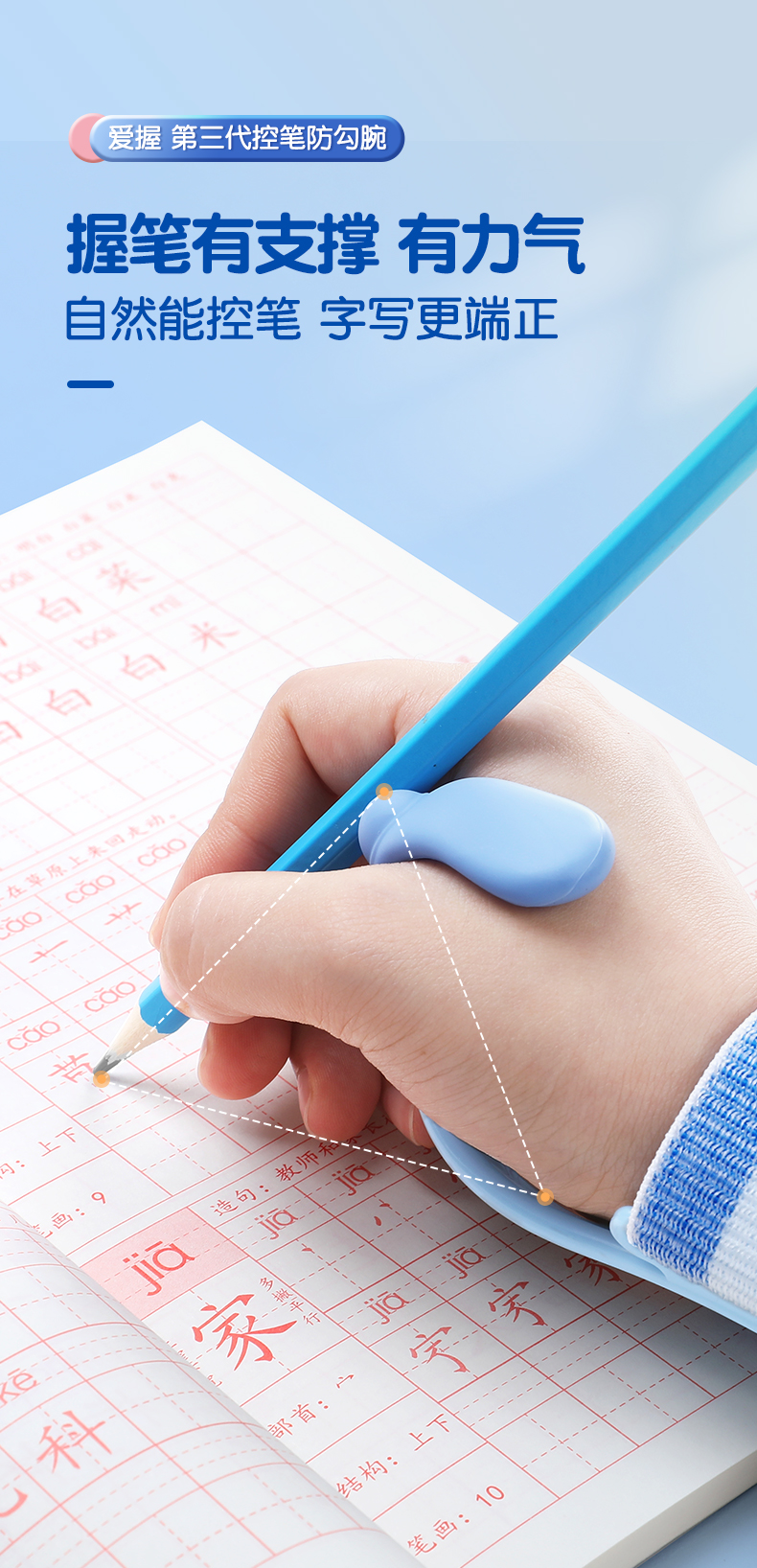猫太子防勾腕矫正器小学生握笔姿势矫正初学者握笔器学写字勾手腕内钩固定器纠正控笔训练神器