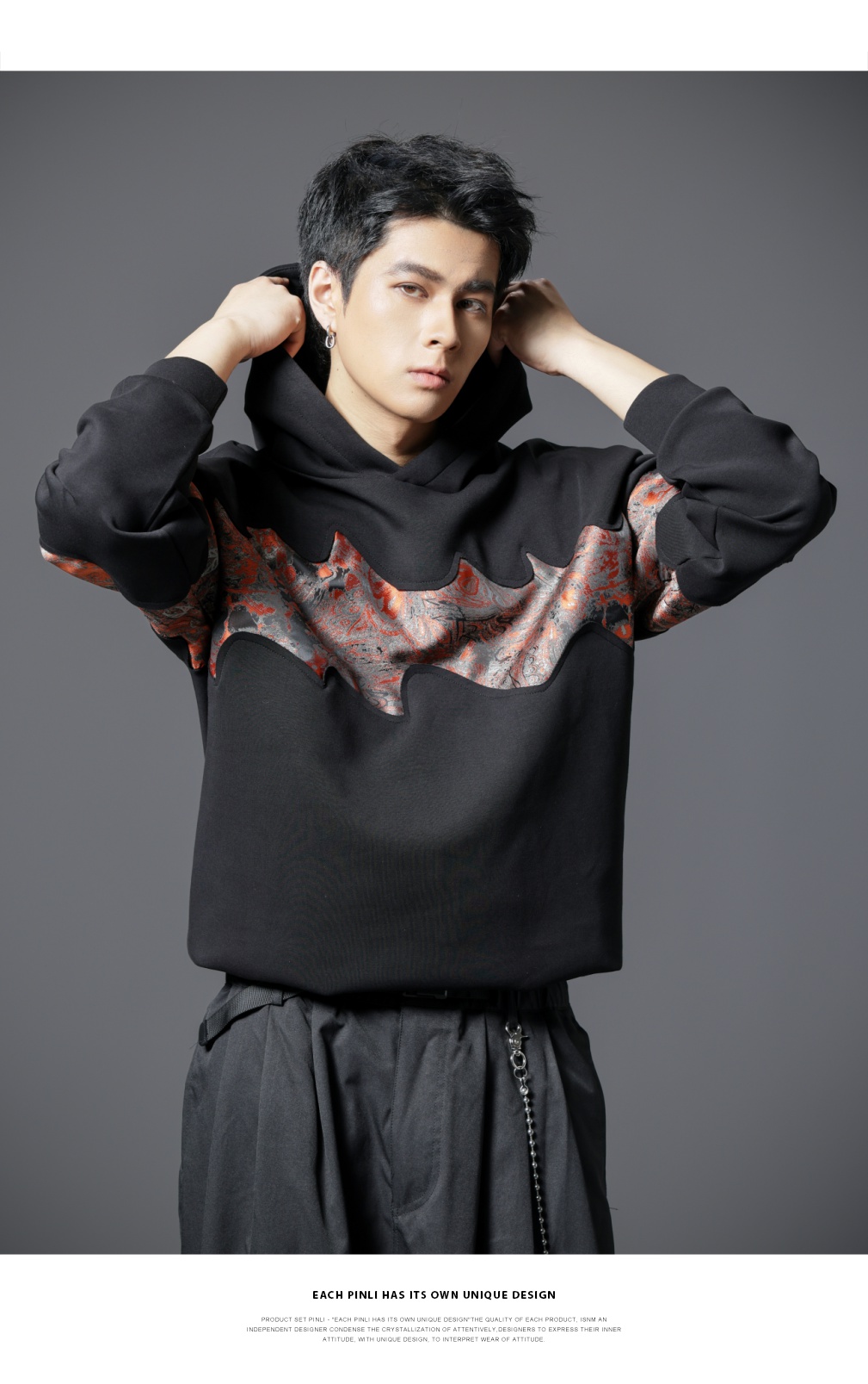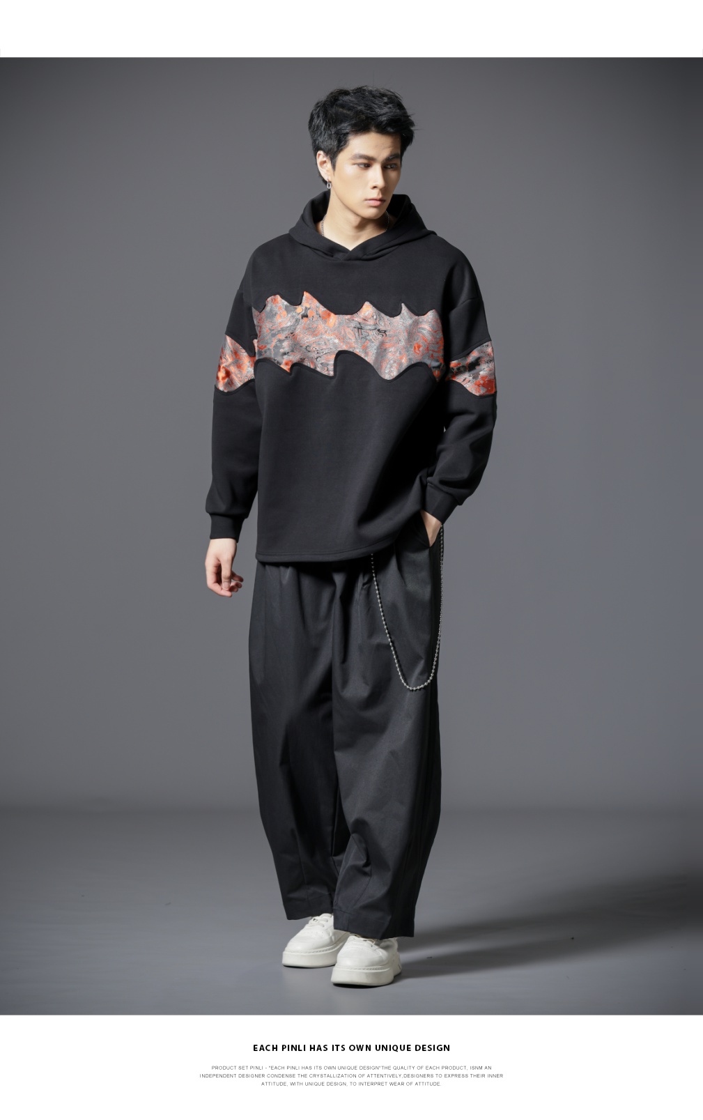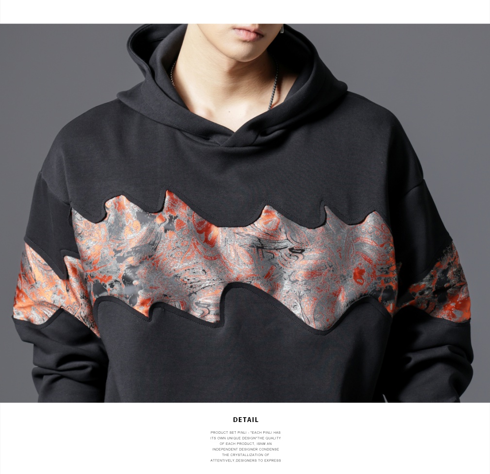 PINLI品立2025秋季新款男士连帽提花拼接落肩宽松套头卫衣上衣潮B253109099