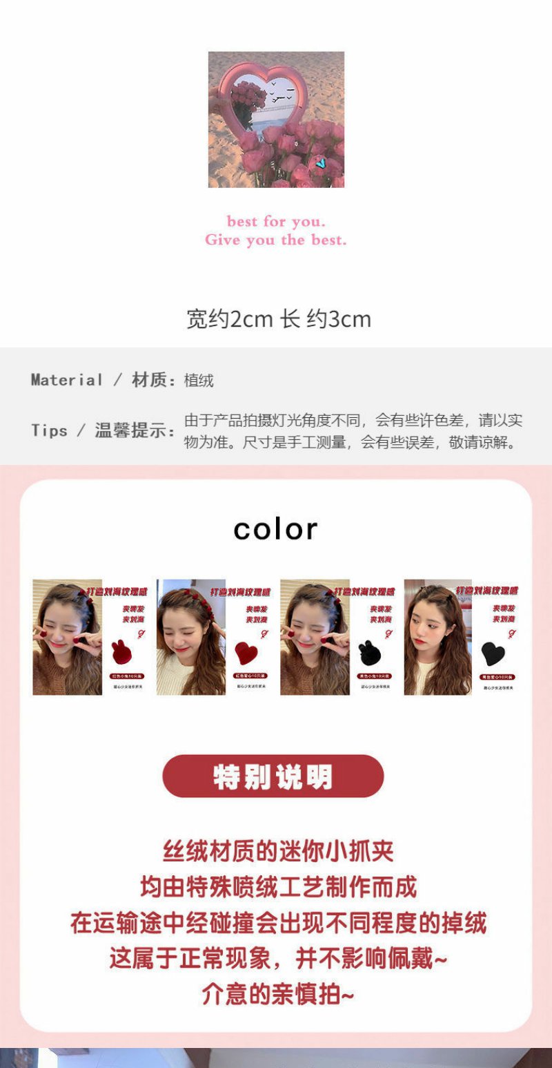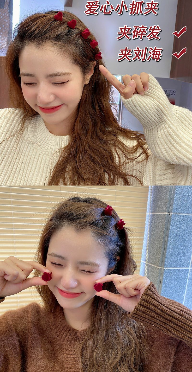 【10个装】爱心丝绒发夹可爱小号迷你抓夹ins网红侧边小抓夹编头发发卡头饰