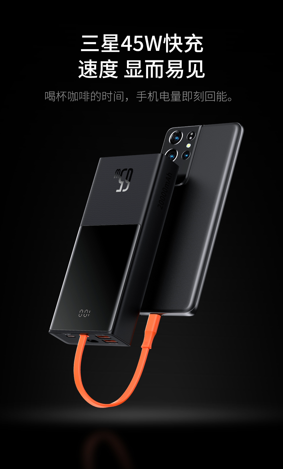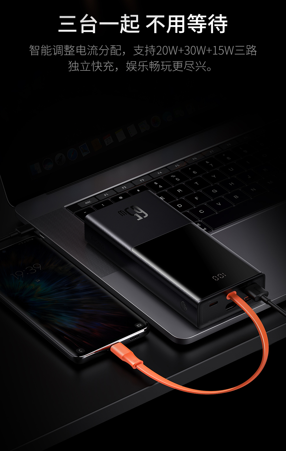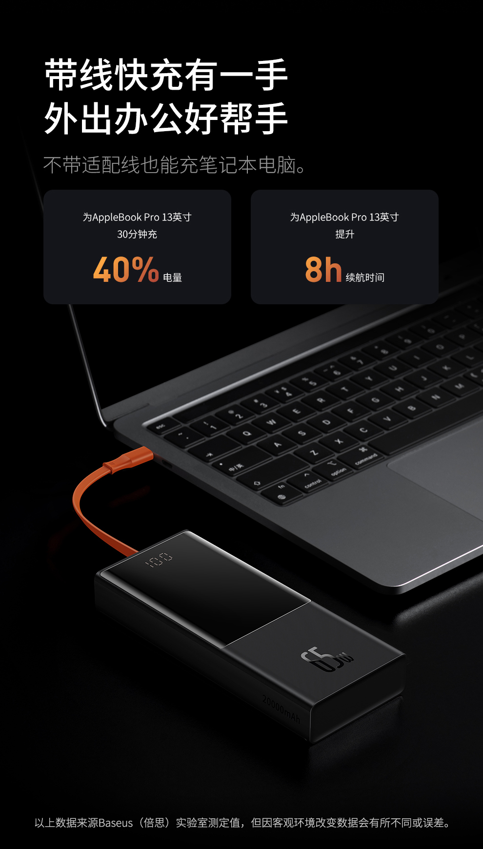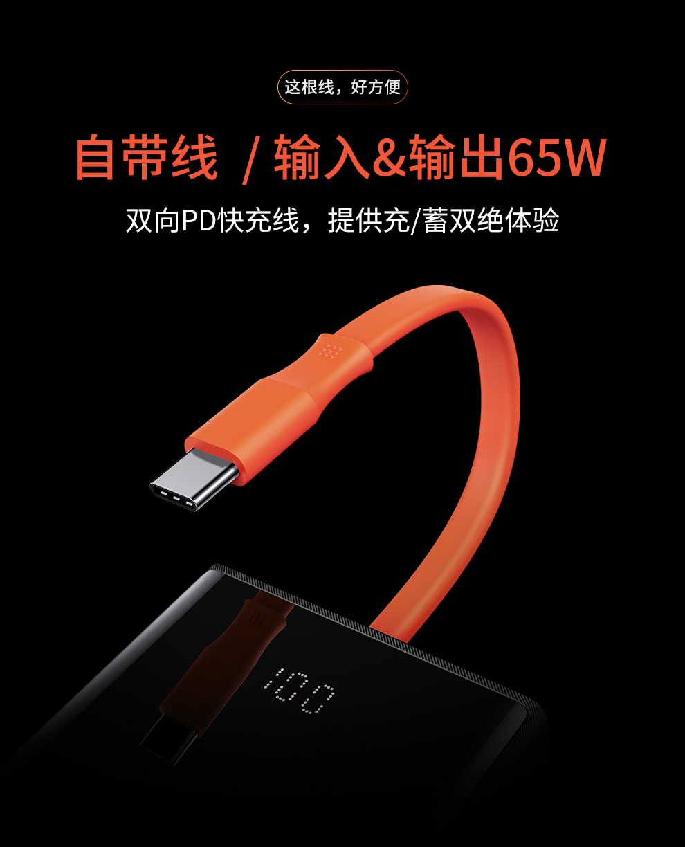 倍思 精灵带线数显快充移动电源 20000mAh 65W
