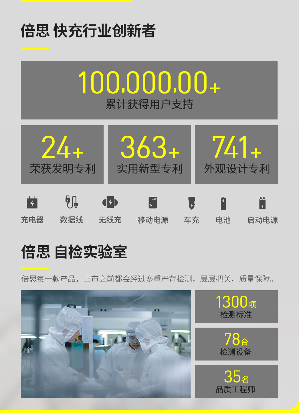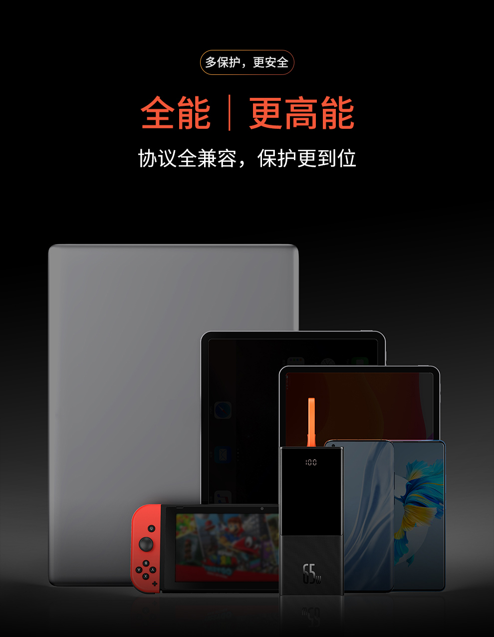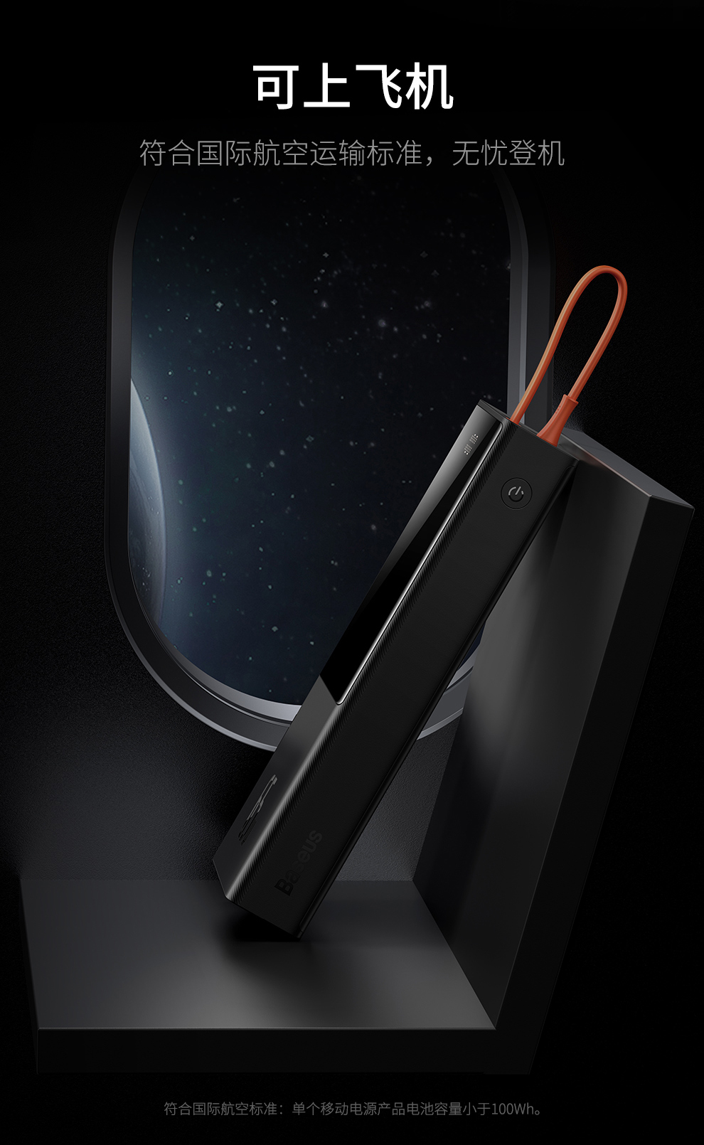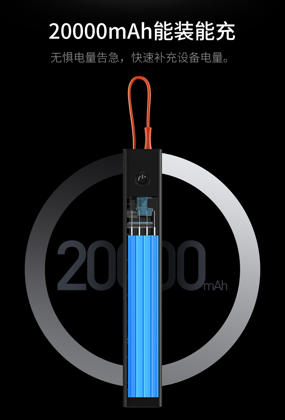 倍思 精灵带线数显快充移动电源 20000mAh 65W