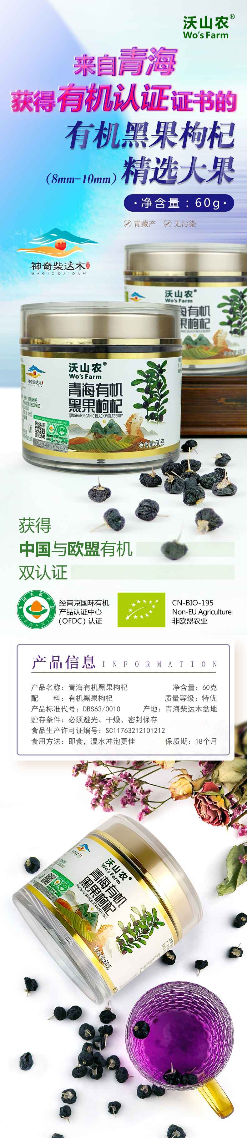 【厂商直发】青海有机黑枸杞免洗精选大果无硫拒绝添加有机认证包邮