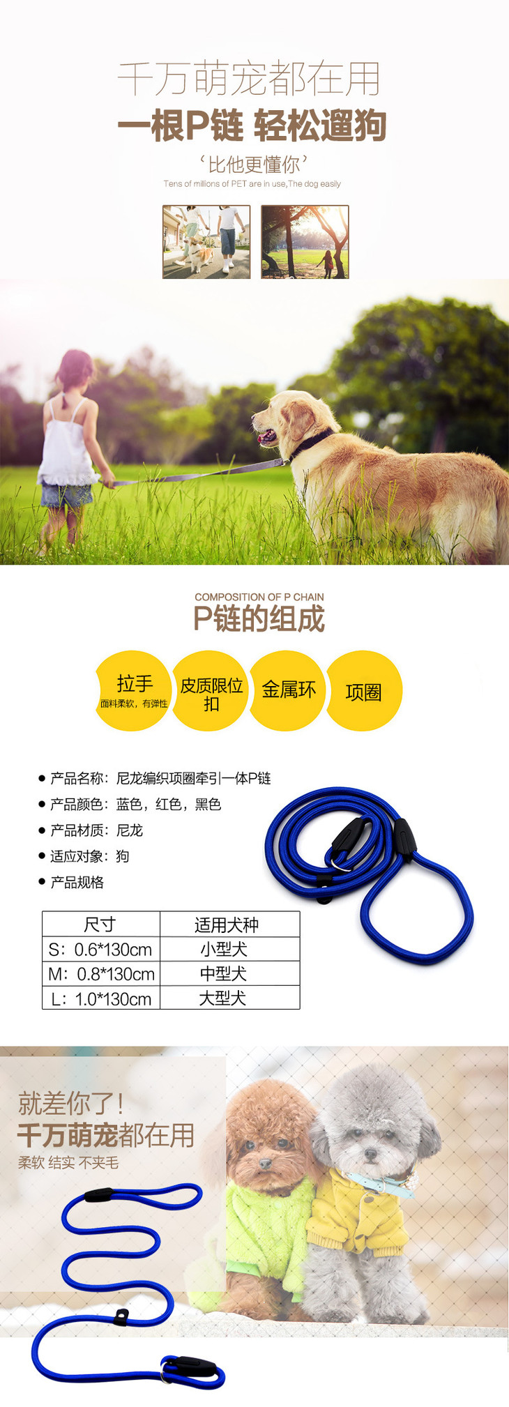 哈士奇金毛狗链子大型小型犬 宠物P链中型犬项圈 1.0