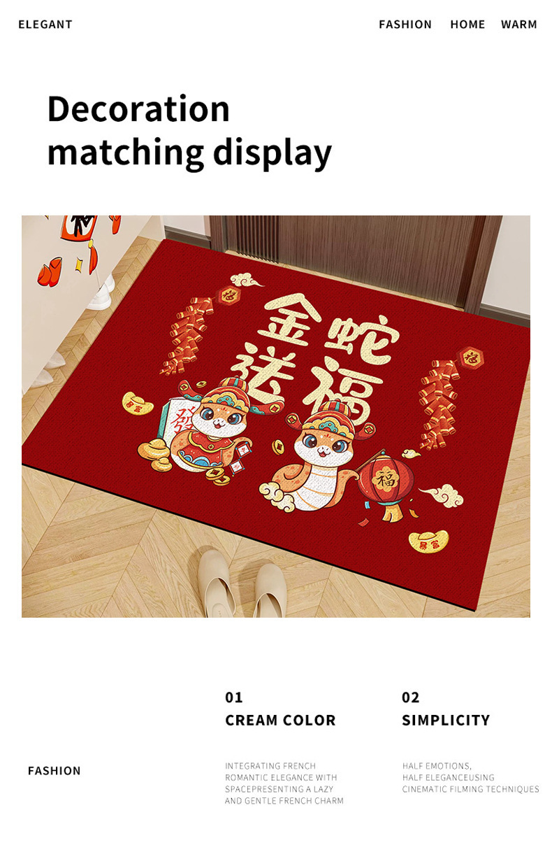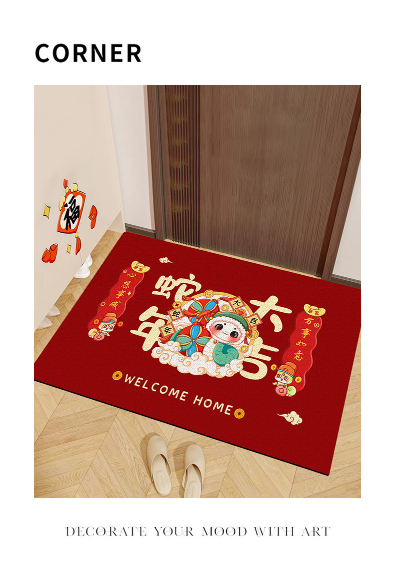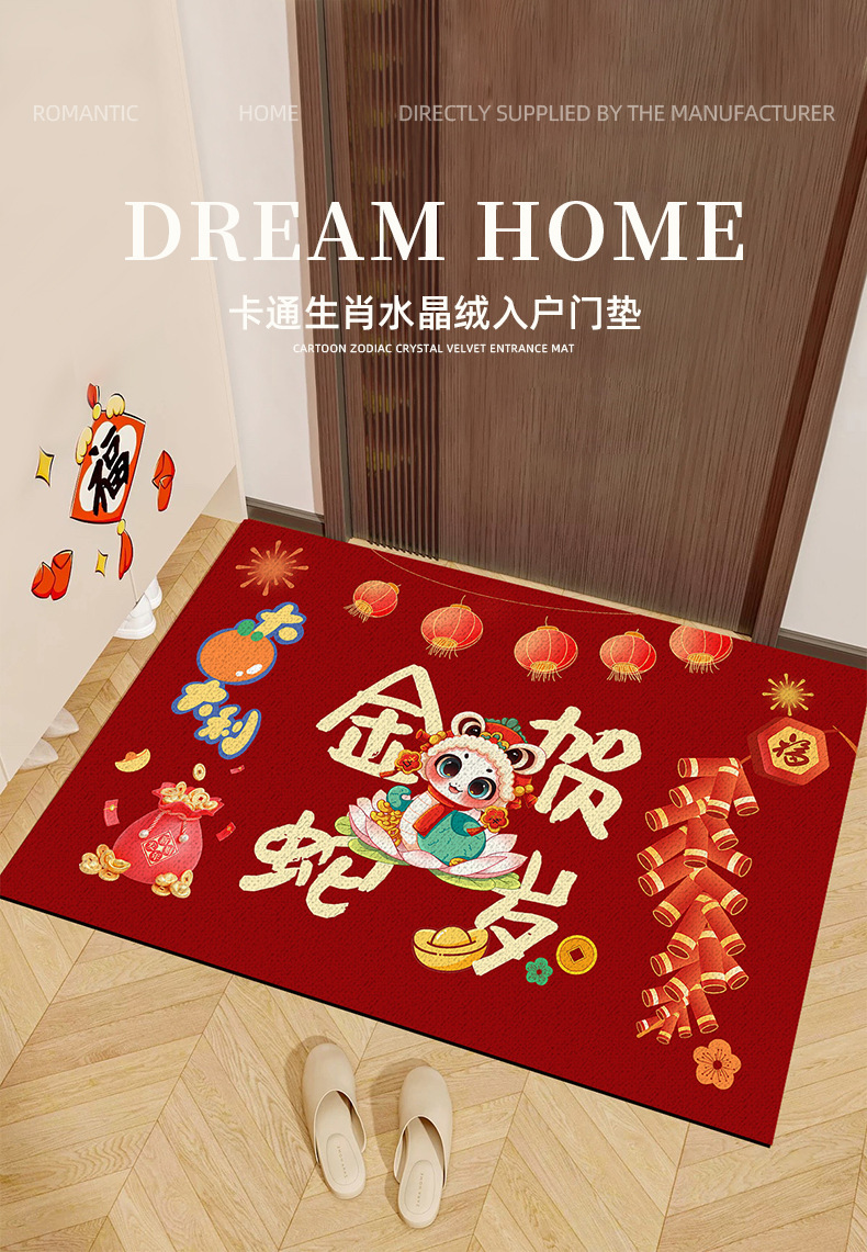 【马年限定❗️纳福喜庆红地毯】柔软舒适,毯面厚实,新年春节卡通生肖水晶绒入户门垫家用玄关地垫耐磨易打理门口脚垫年货