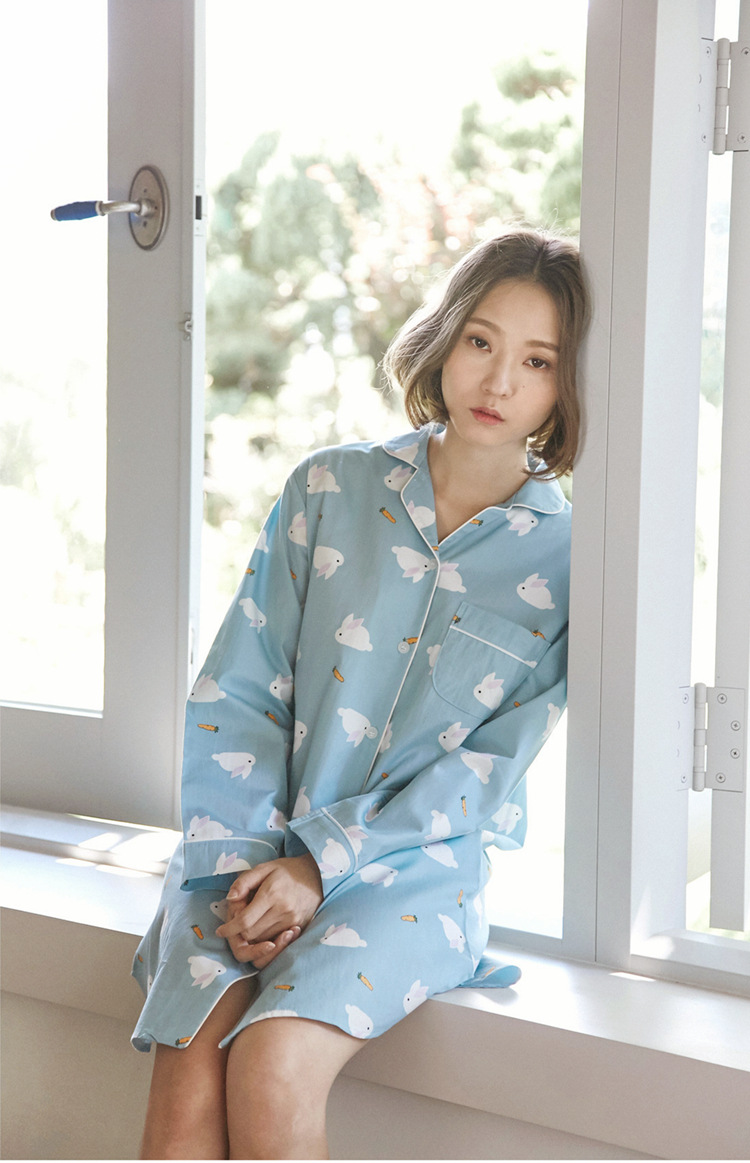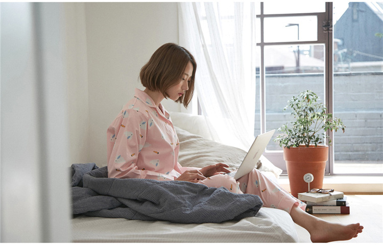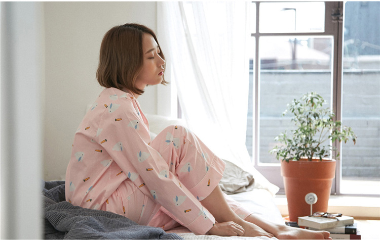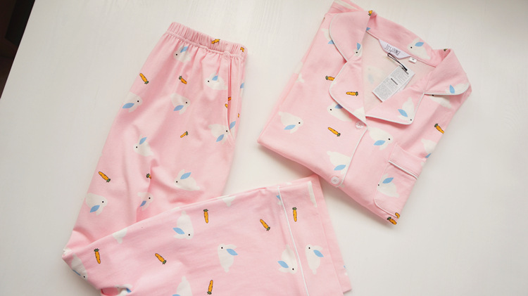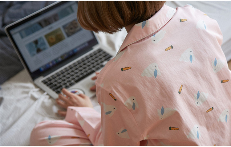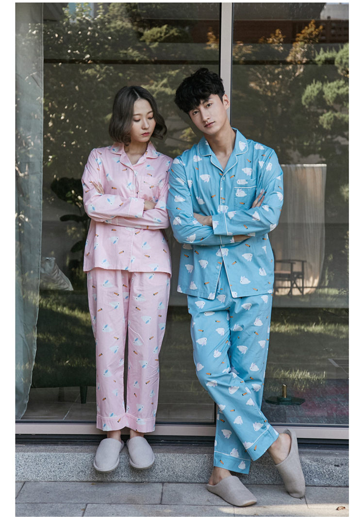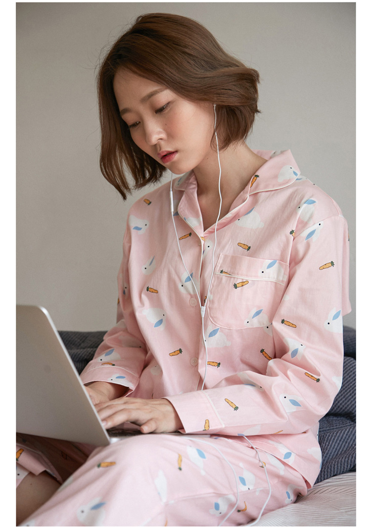 【睡衣女】JO'S LOUNGE卡通萌兔子日系情侣睡衣女秋季纯棉长袖开衫款家居服