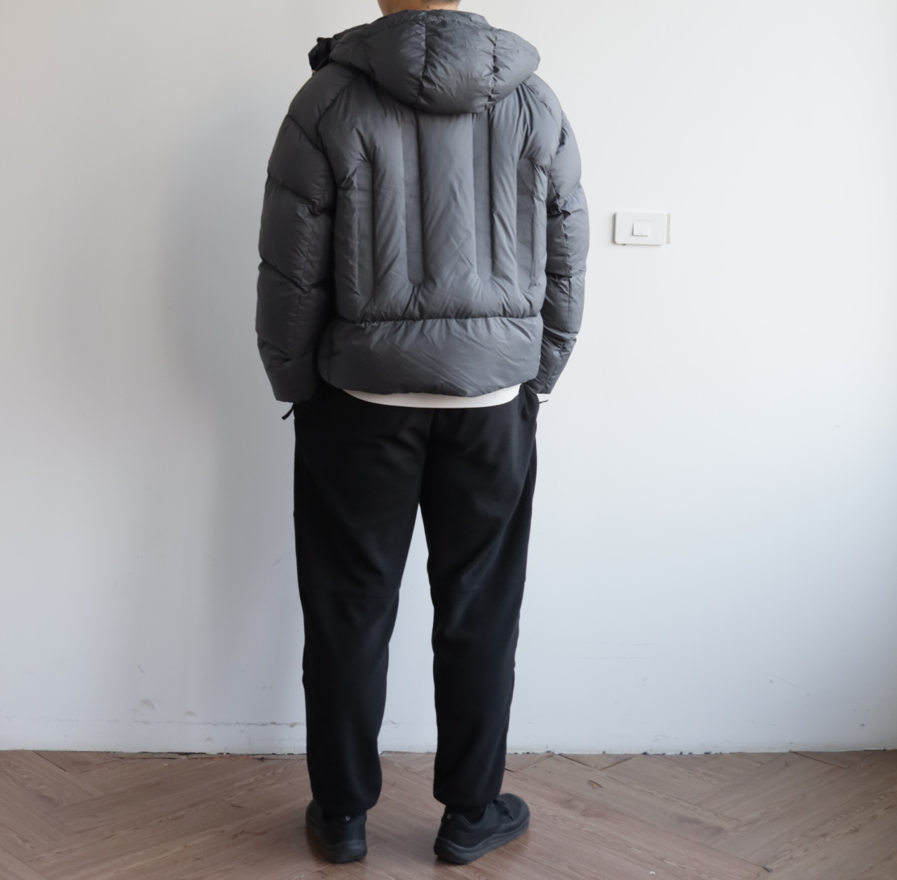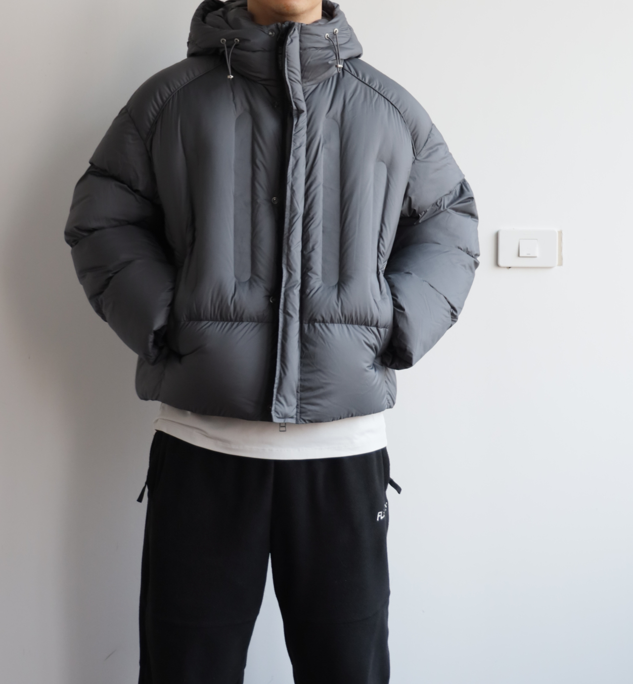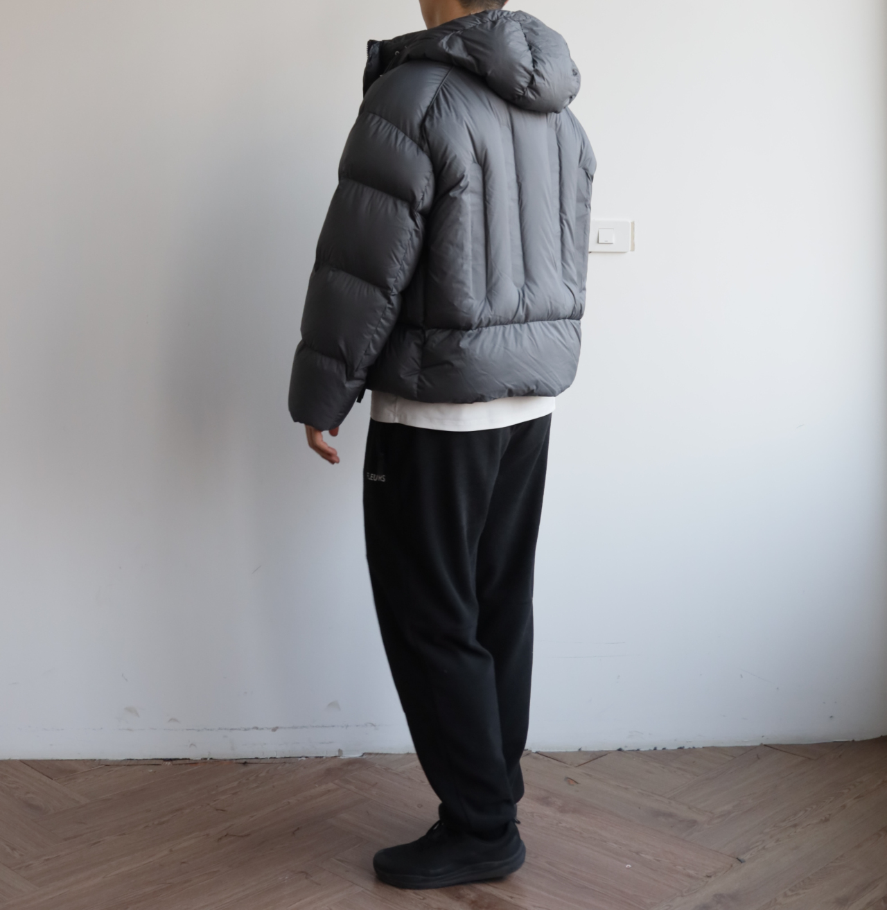 版型就是短宽短宽的,女生也可以穿,连帽不可拆卸