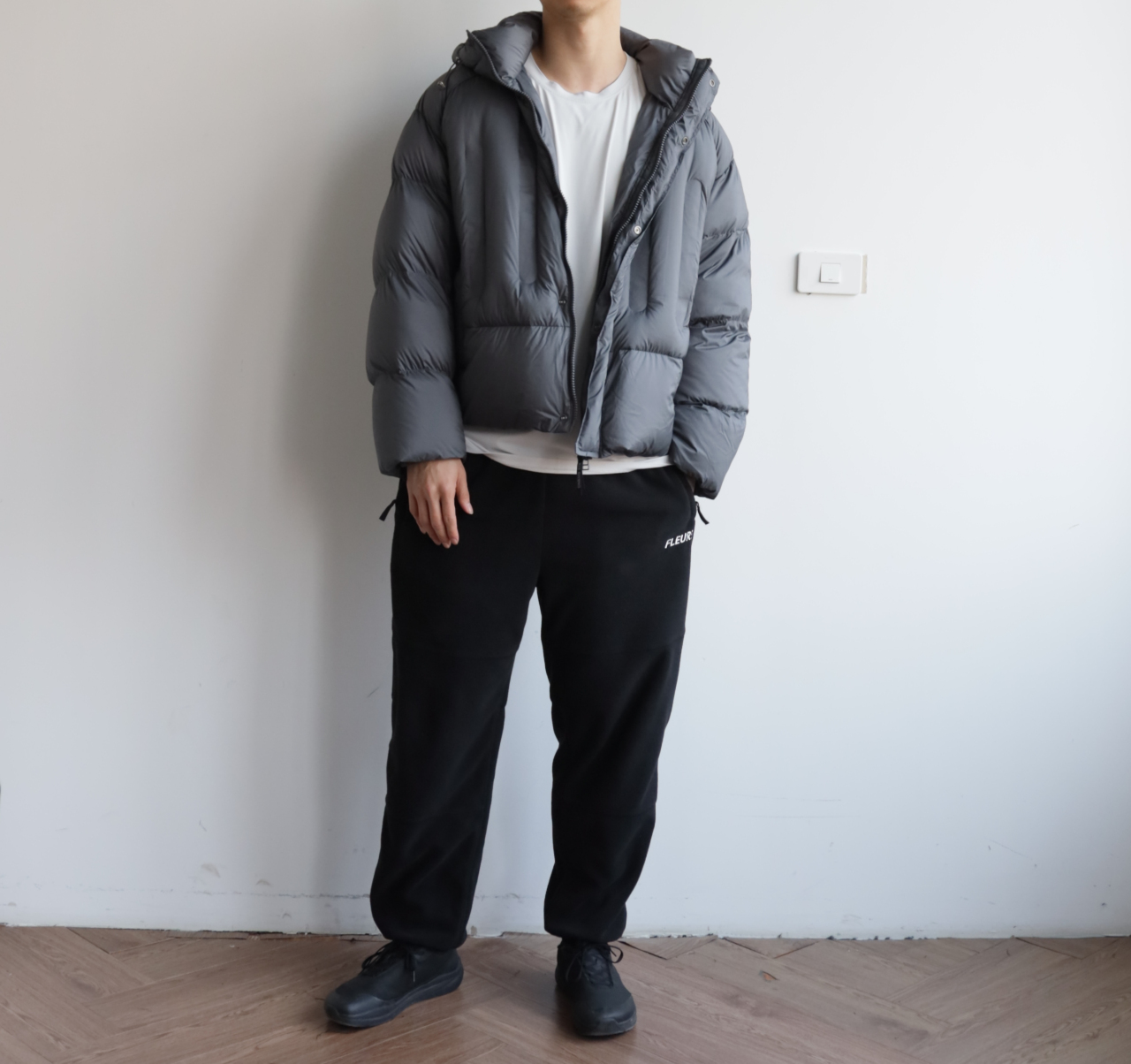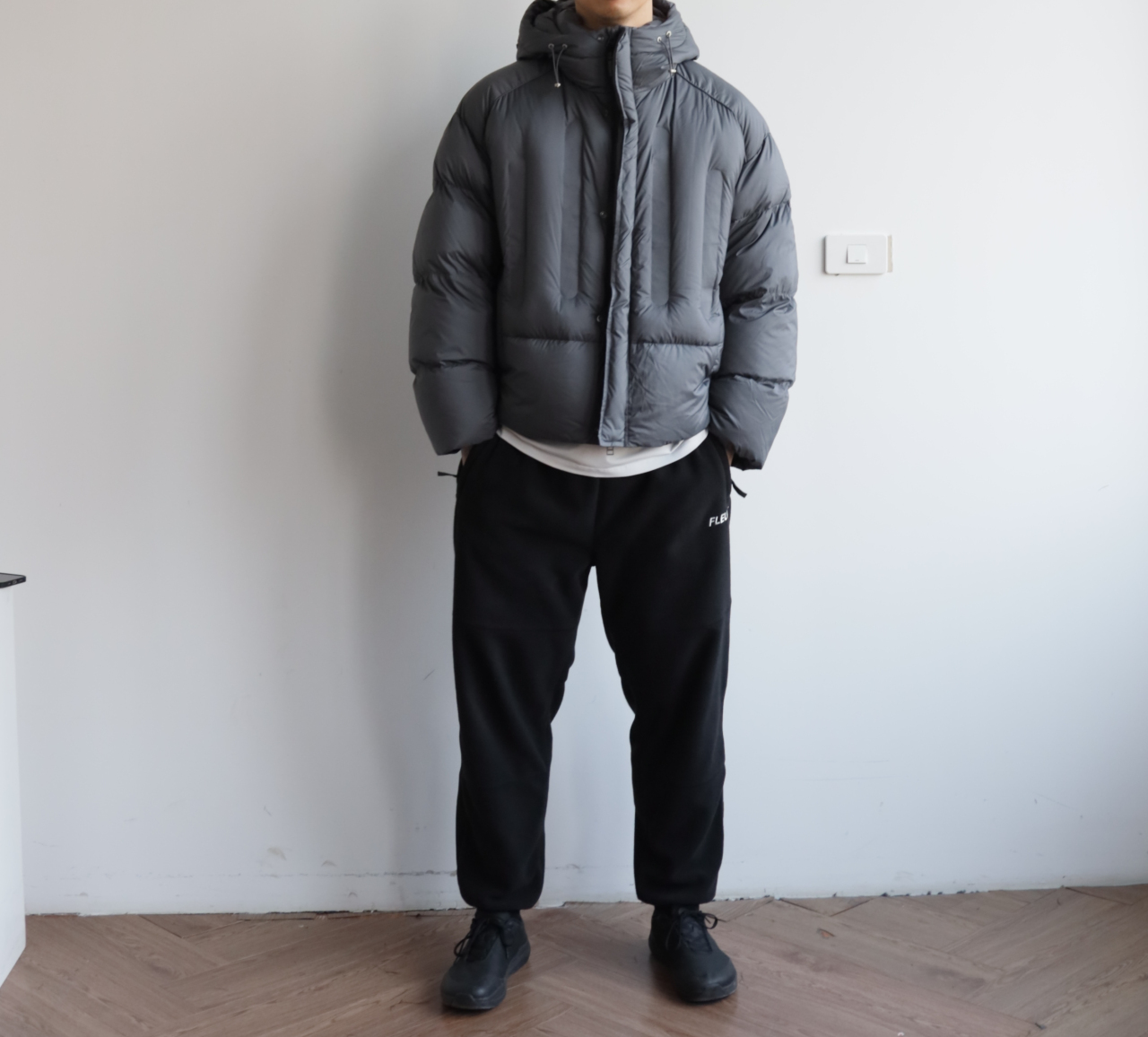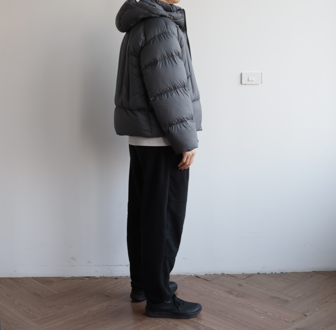 版型就是短宽短宽的,女生也可以穿,连帽不可拆卸