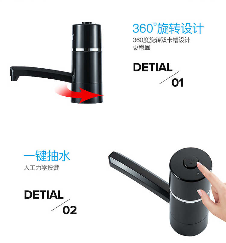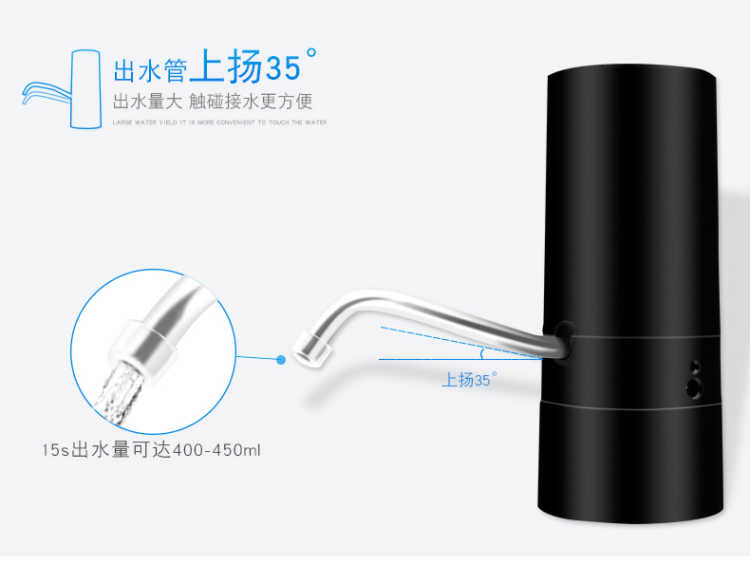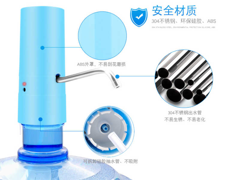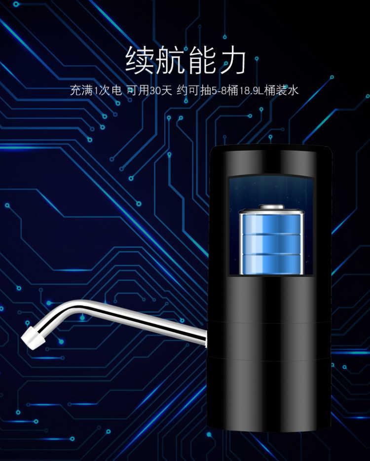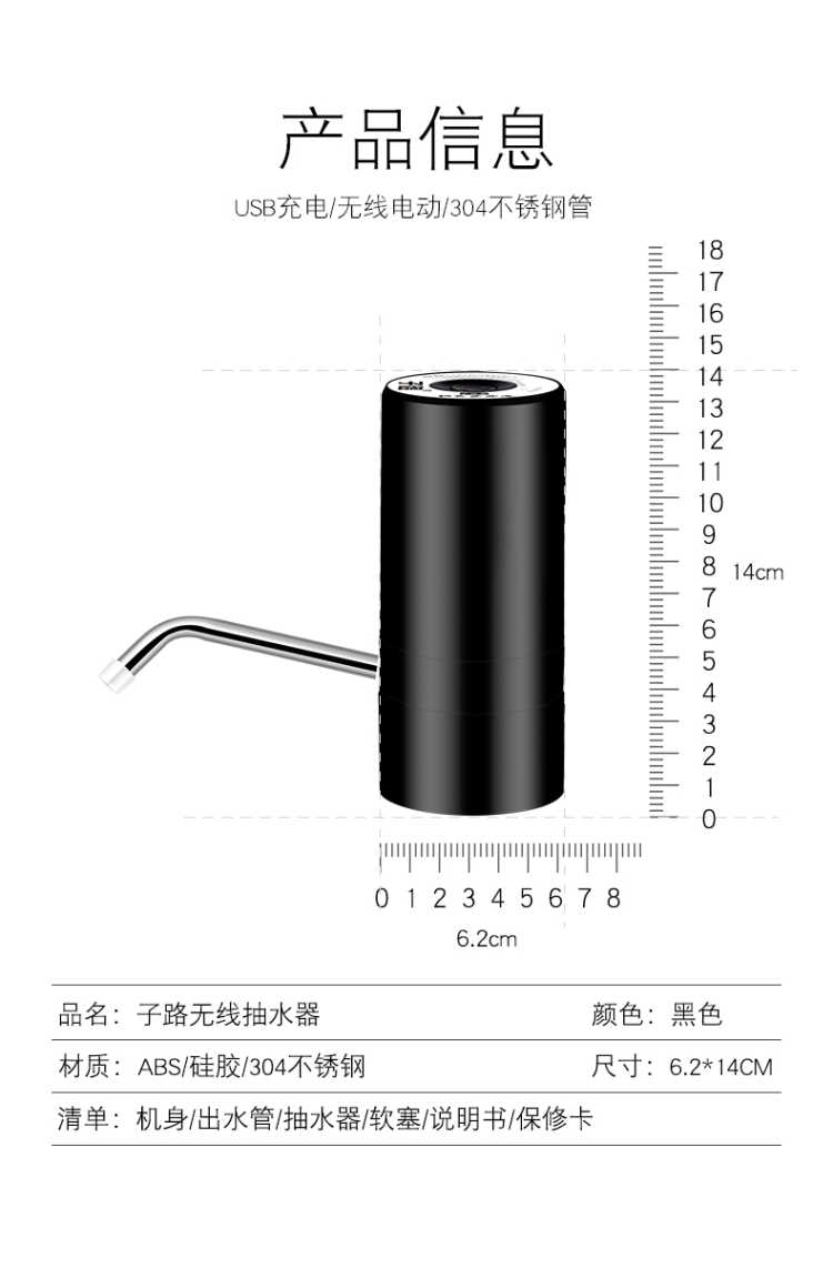 桶装水抽水器---一一键出水 省时省力,材质安全健康 硅胶水管 快充耐用,充一次电可抽4-6桶水,充电提示灯 送USB线充电线。