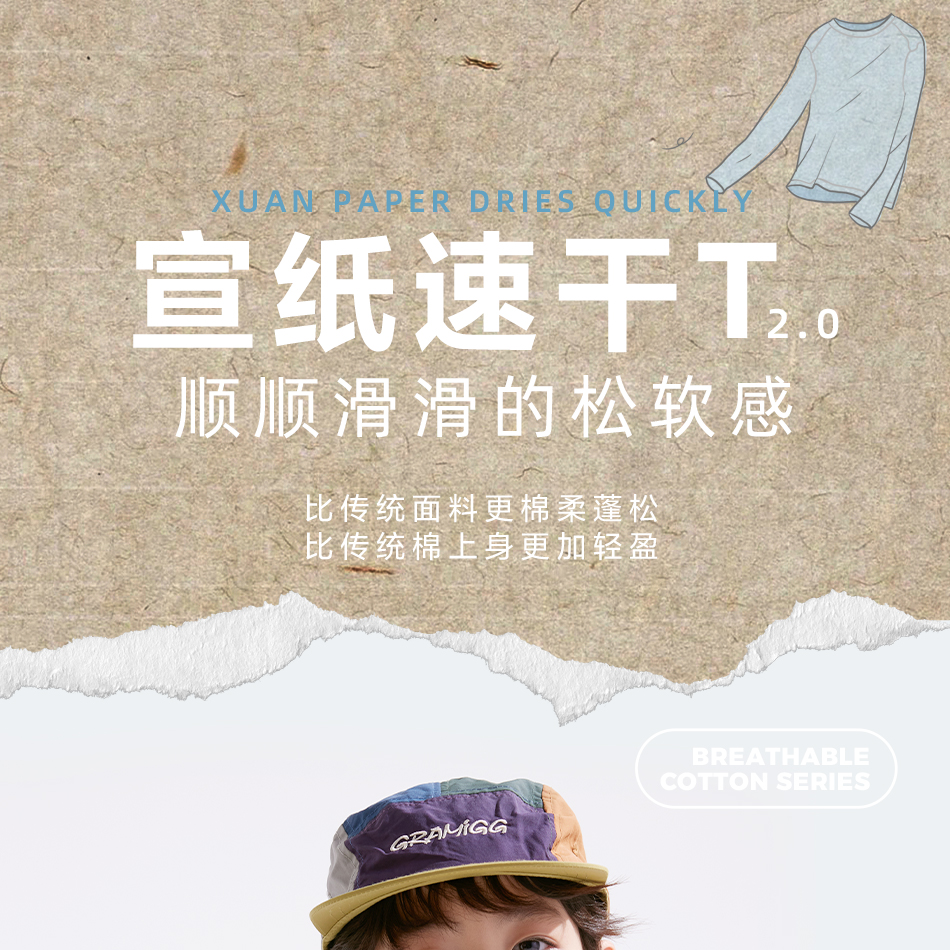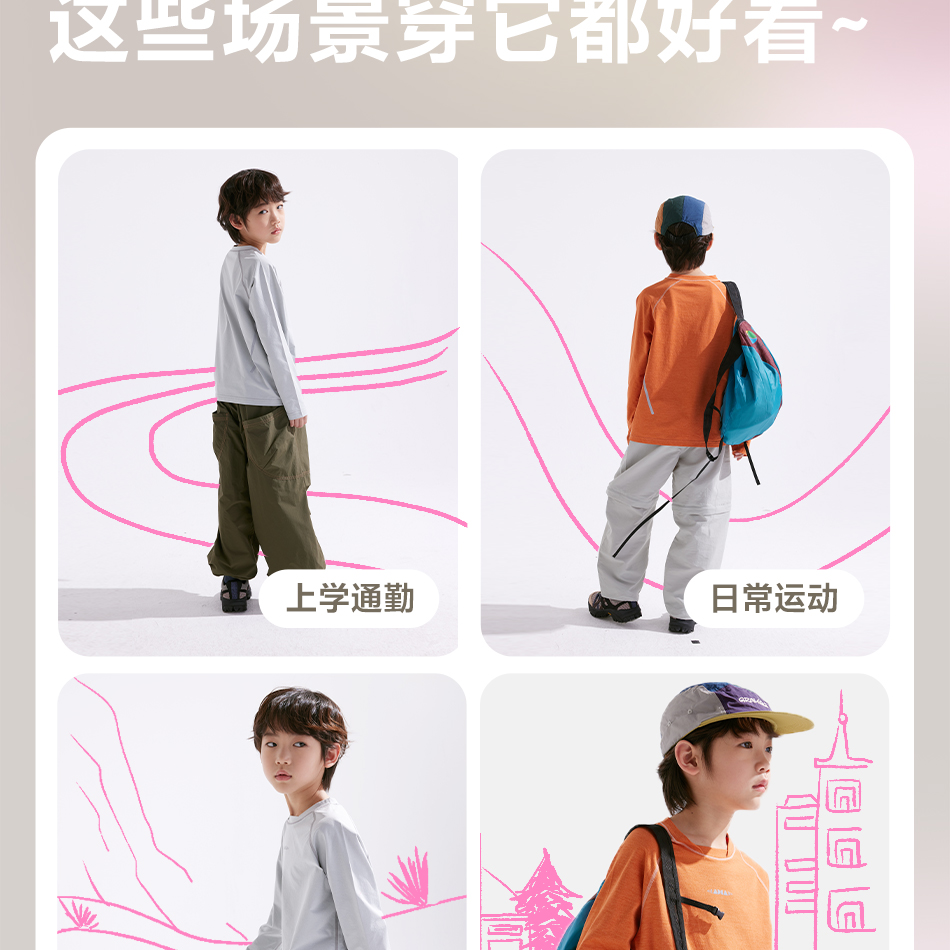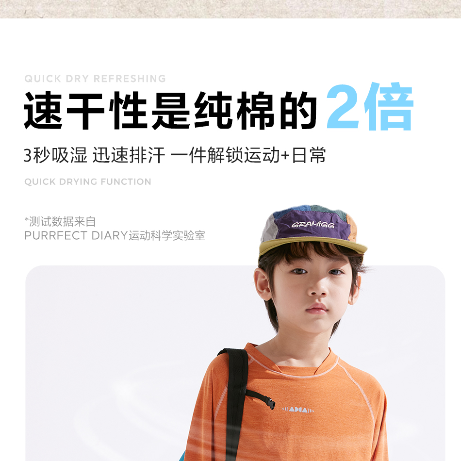 【110-160cm】咕噜日记【3秒速干】儿童轻运动T恤2025春新款男女童透气长袖PCTX2503