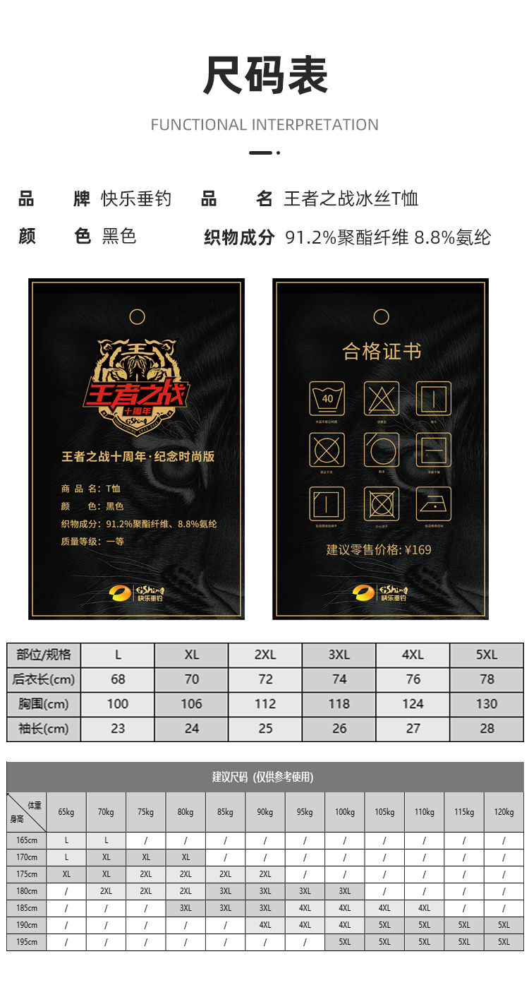 快乐垂钓王者之战十周年.珍藏版冰丝T恤黑色(L-4XL)